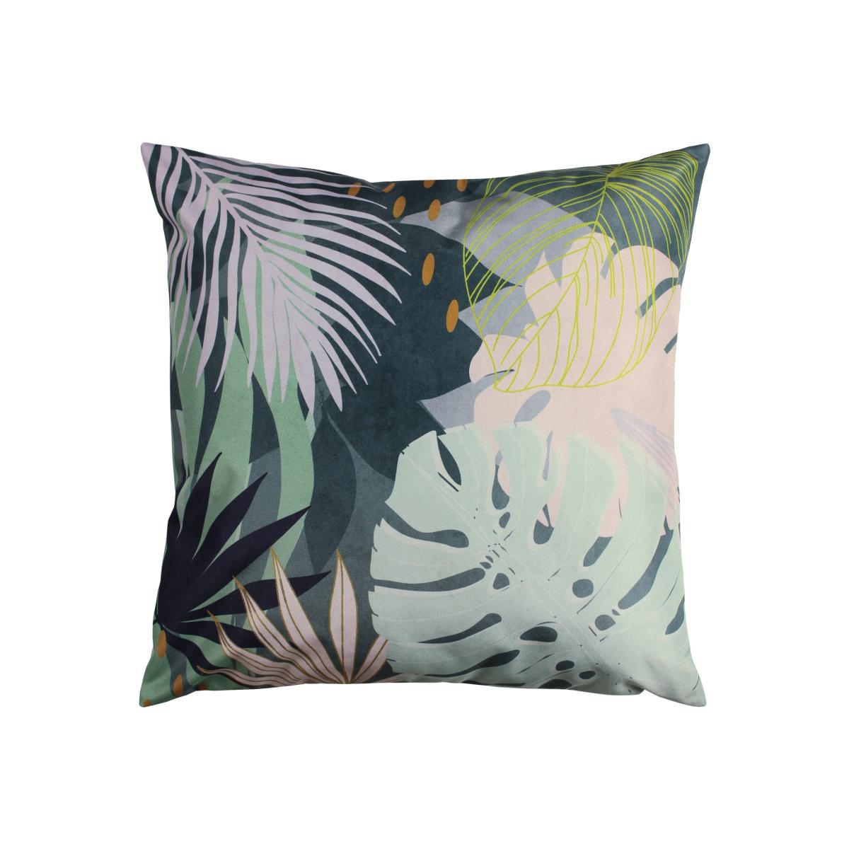 Featuring an abstract design of tropical palm leaves. Featuring a bold and abstract design of palm leaves. There is a fully reversible design in pastel pinks and bright green's will instantly freshen up your outdoor space.