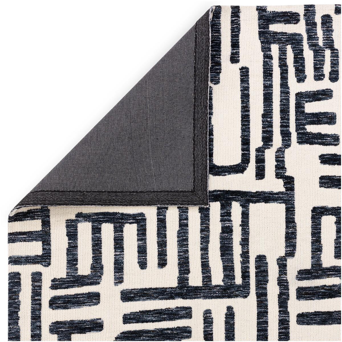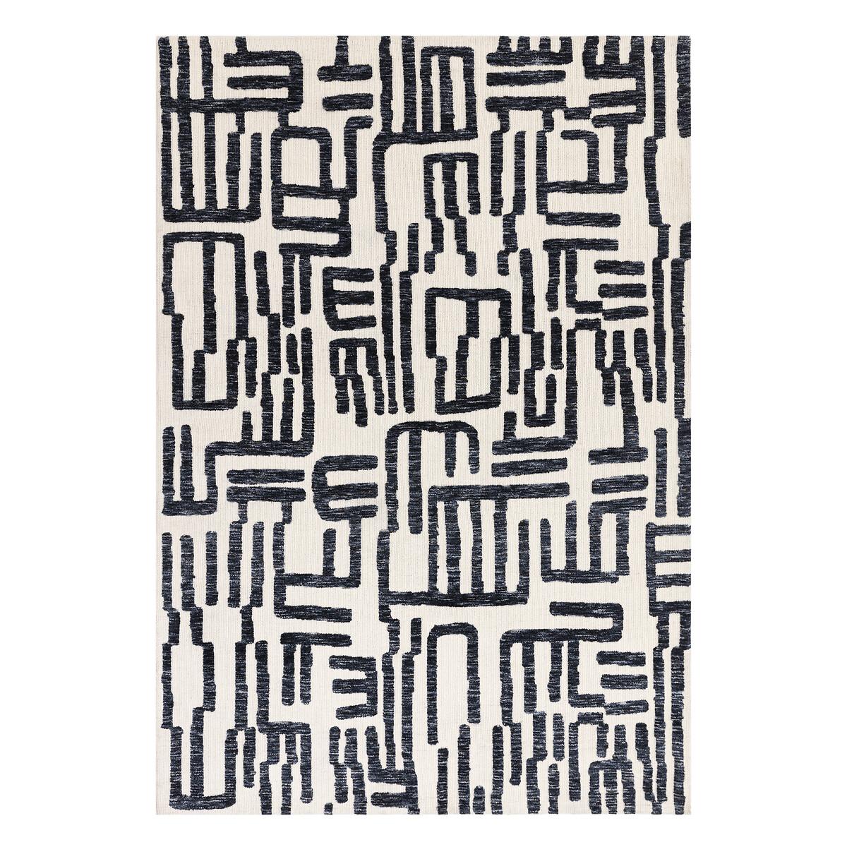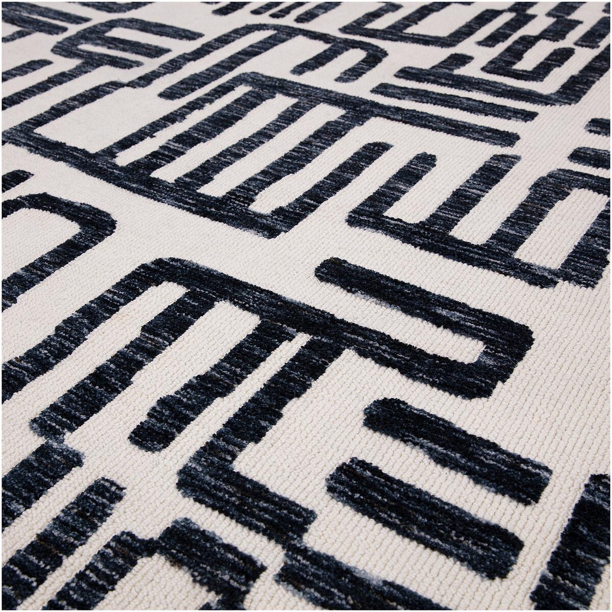 This bold abstract script rug is a great choice for adding visual interest to modern or contemporary interiors. I love how its monochrome palette makes it versatile enough to work with a wide range of colour schemes, from neutral to more vibrant schemes. It works well in open-plan living areas, bedrooms, or even office spaces where you want to create a focal point without overwhelming the room. Practical styling tips include pairing it with minimalist furniture to let the pattern shine, and layering with plain textiles, such as cushions or throws, to soften the look. Its graphic design can also help anchor a space, making it feel more cohesive, especially when styled with complementary accessories or artwork.