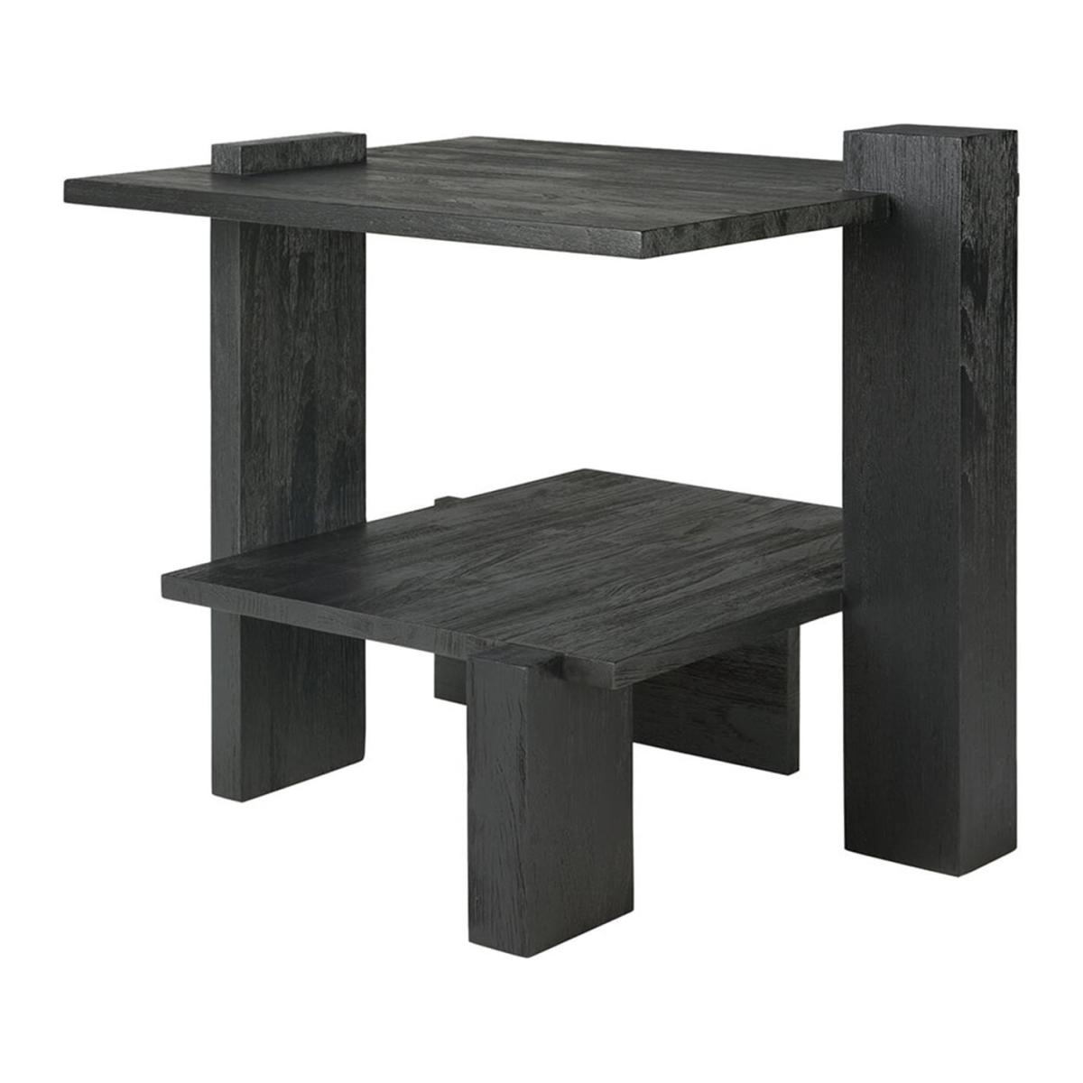 I love this side table for its bold, sculptural design which makes it a real statement piece. Its clean lines and dark, textured finish work well in modern, minimalist interiors, but it can also add an interesting contrast to softer, more eclectic spaces. It’s versatile enough to serve as a small drinks table or a nightstand, and styling it with a simple lamp, a vase, or some coffee table books will enhance its architectural appeal. When using in a room, consider pairing it with neutral furnishings to let its form stand out or with vibrant accessories to make a colourful focal point. Its sturdy yet artistic build makes it both a practical and design-driven addition to any living or bedroom setup.
