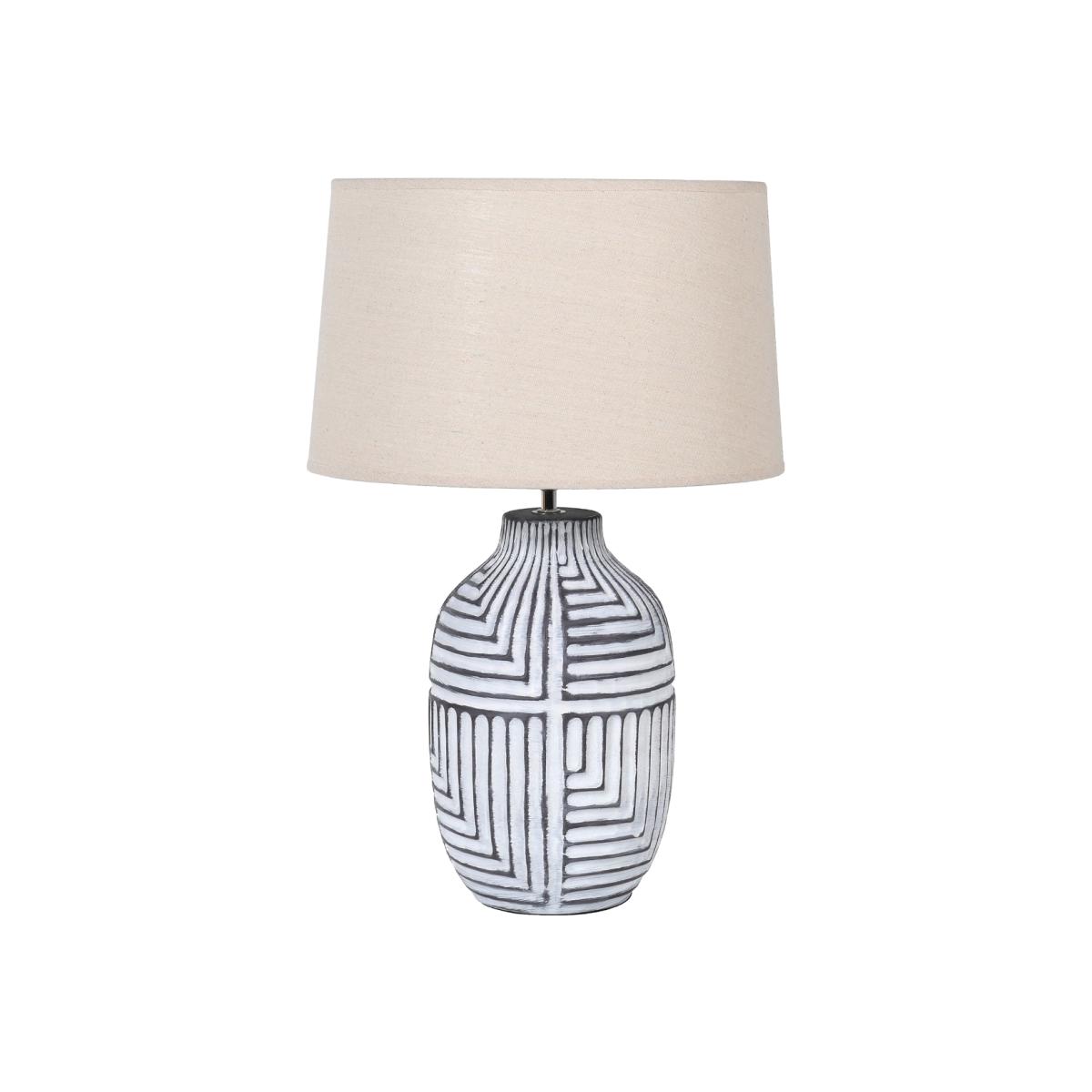 Design. A lovely accessory with a hand painted look. The Abstract Table Lamp has a geometric aesthetic which will transform your space, creating a warm glow throughout your living room, dining room, or bedroom. Created from ceramic and finished with a lovely neutral coloured lamp shade, this chic lighting solution has a slight rustic feel which will add an extra dimension to your home.