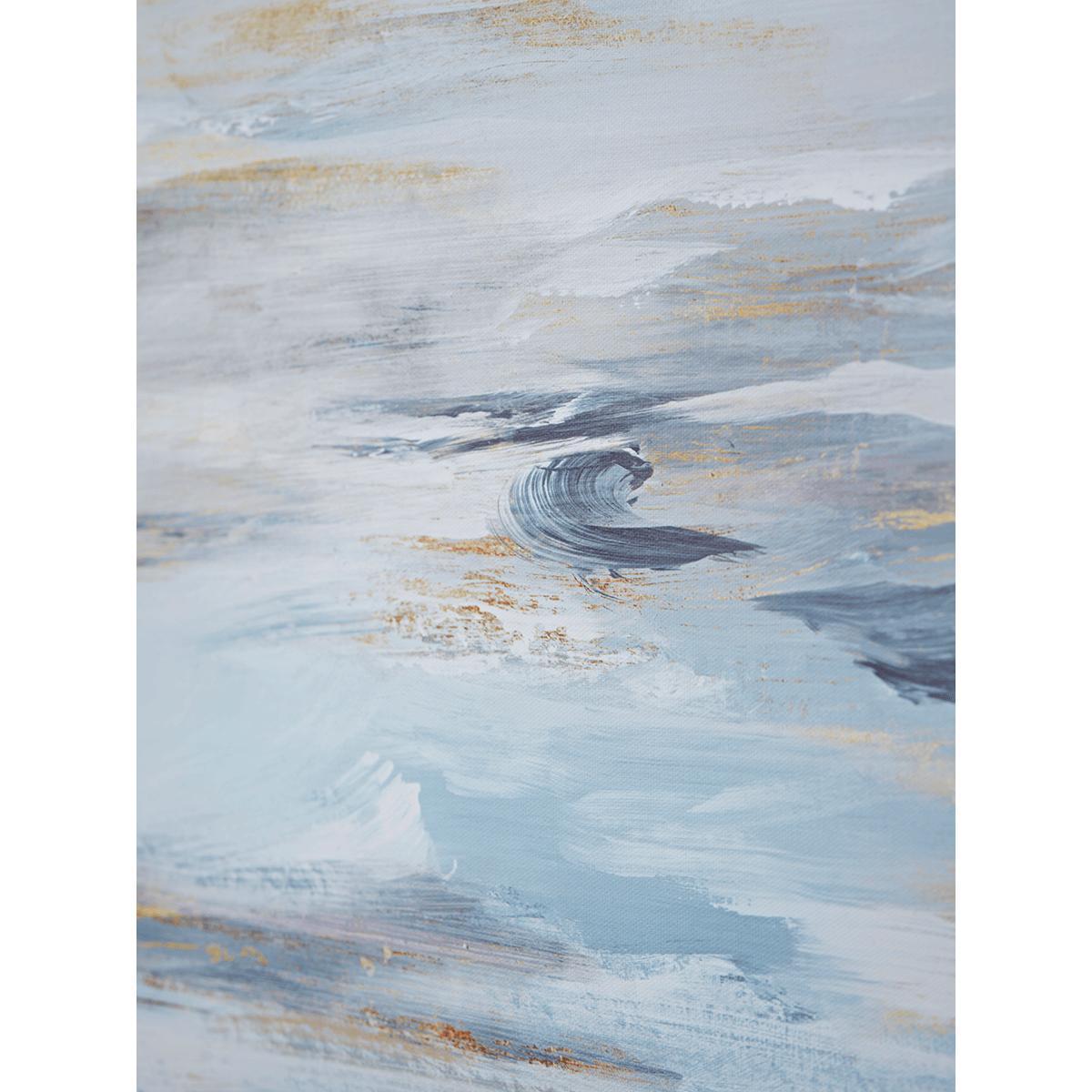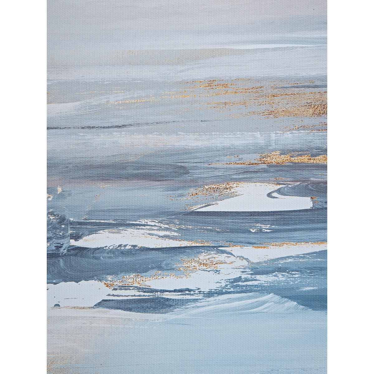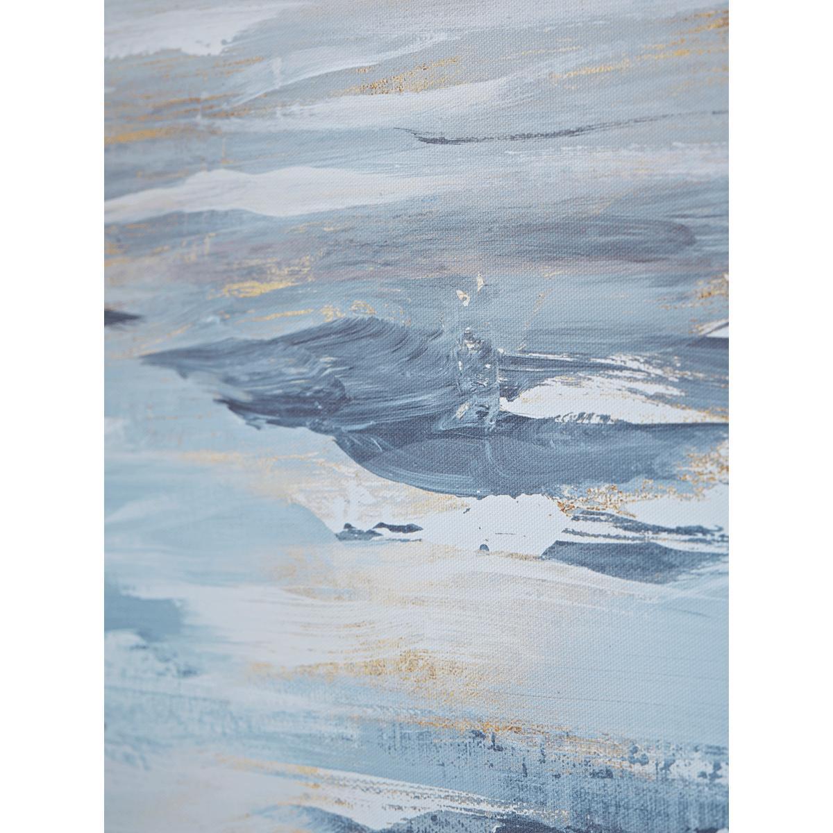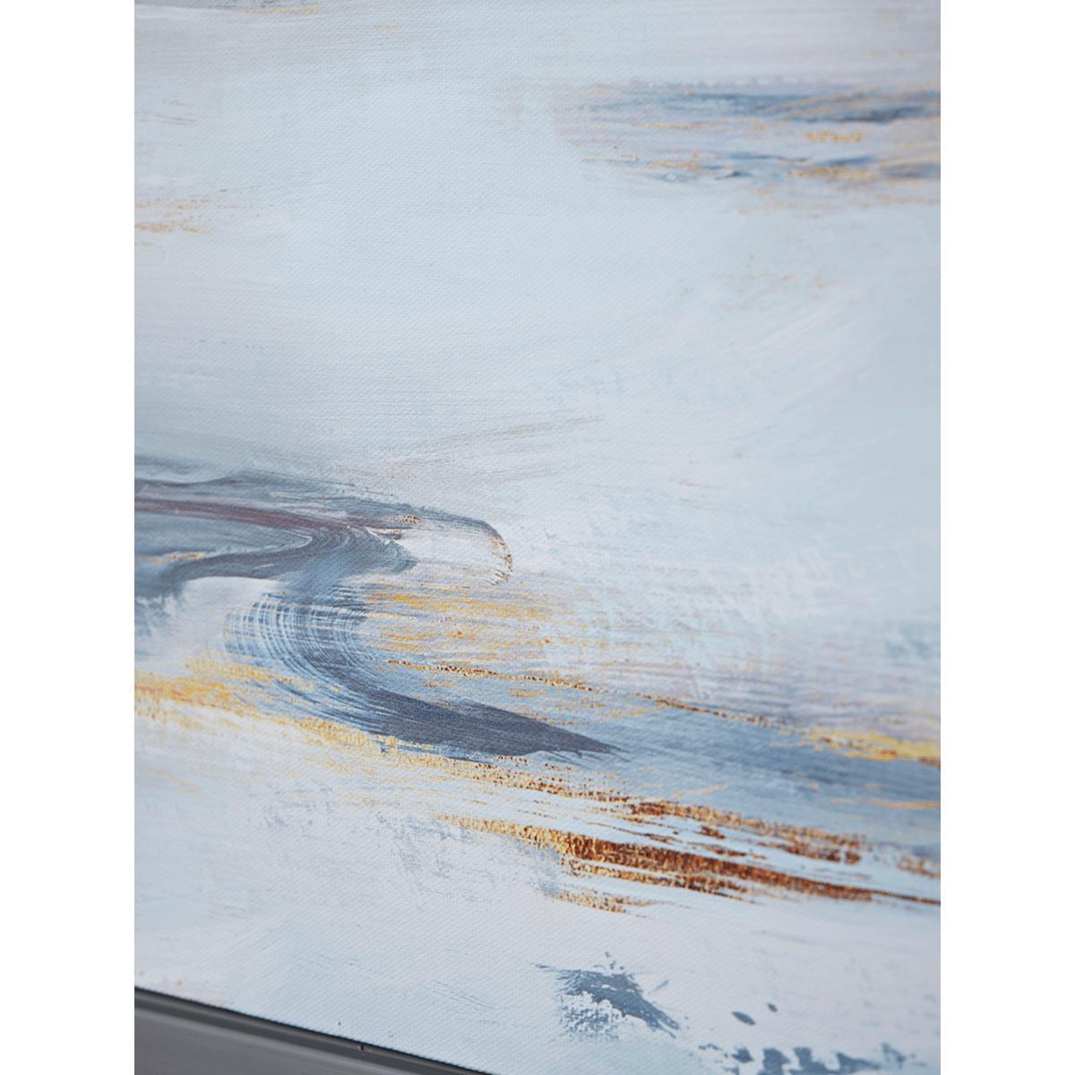 Our canvas, Abstract Tides, has a wide composition, presenting an abstract view of the coast at eveningtide perfectly. The gentle movement of the tide along the wet undulating sand is beautifully captured in this mixed media piece with lively matt and metallic brushstrokes. Full of evocative hues, our hand finished canvas truly transports the viewer to this coastal scene, a unique piece, set in a contemporary tray frame mount.