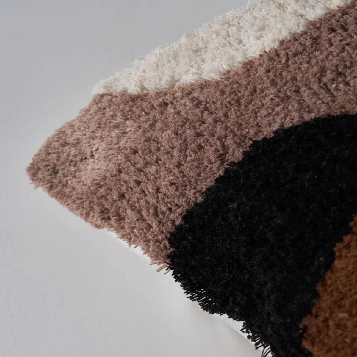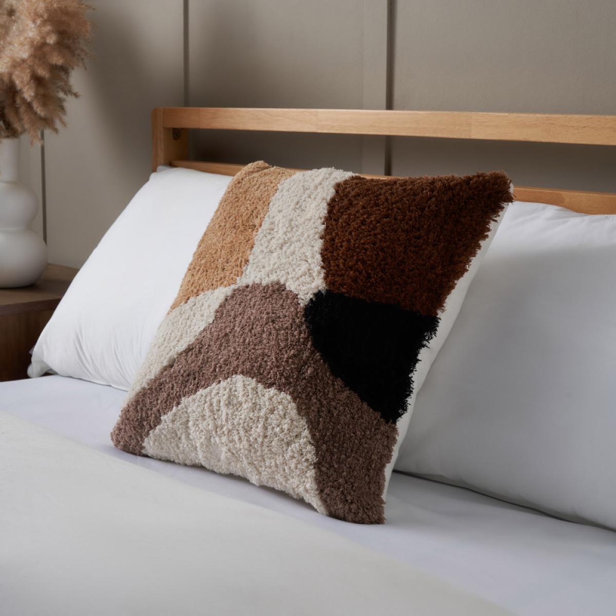I love this cushion for its earthy tones and textural interest, making it versatile for both modern and cosy interiors. Its natural palette works particularly well in neutral, Scandinavian, or boho settings, adding warmth without overwhelming the space. For styling tips, consider pairing it with other textured textiles or layer it on a mix of plain and patterned cushions to create an inviting lounge look. Including it in a bed ensemble can also add a touch of tactile luxury; just ensure it’s kept in a space where the texture won’t clash with other furnishings. Its neutral shades make it easy to incorporate into existing colour schemes, making it a practical and stylish addition.