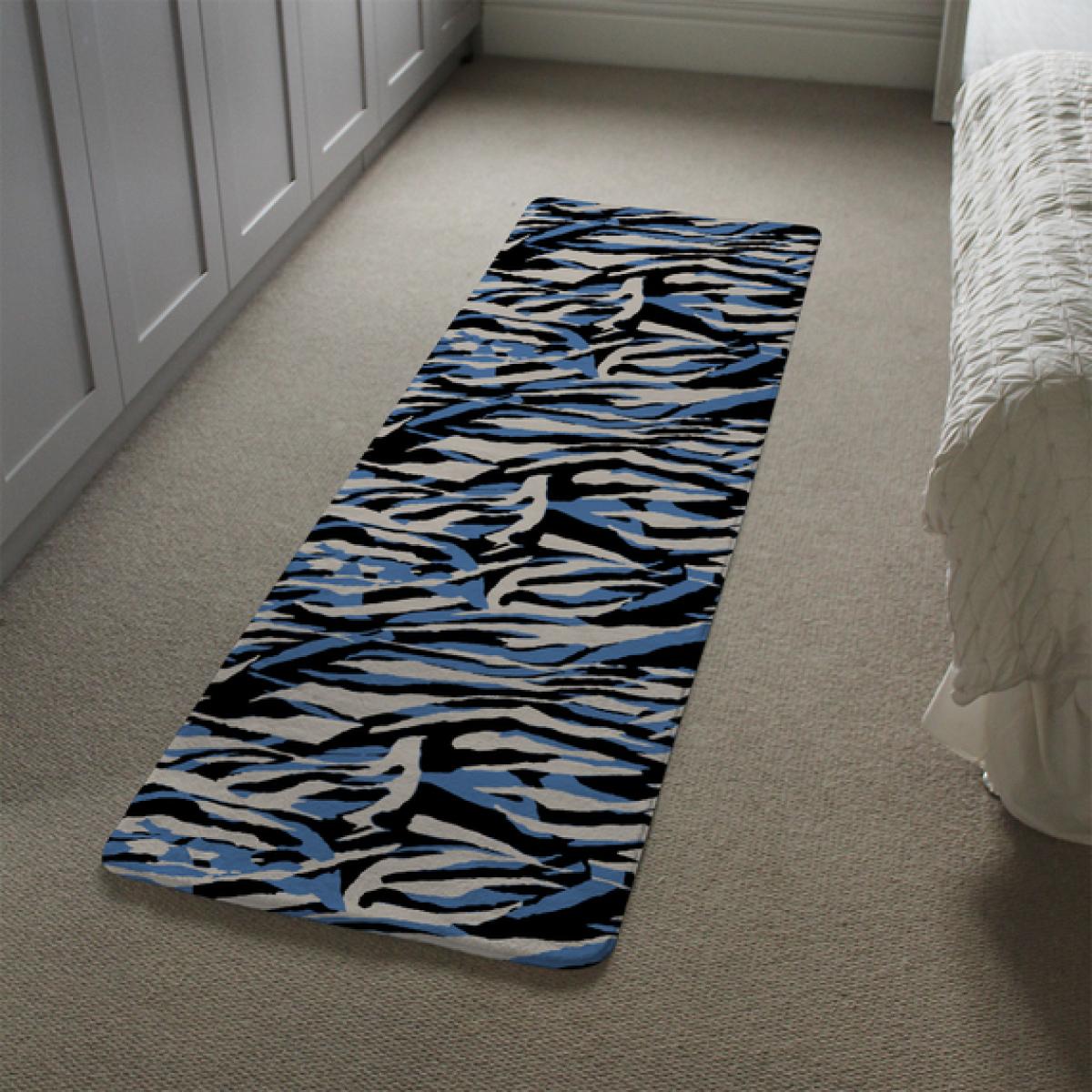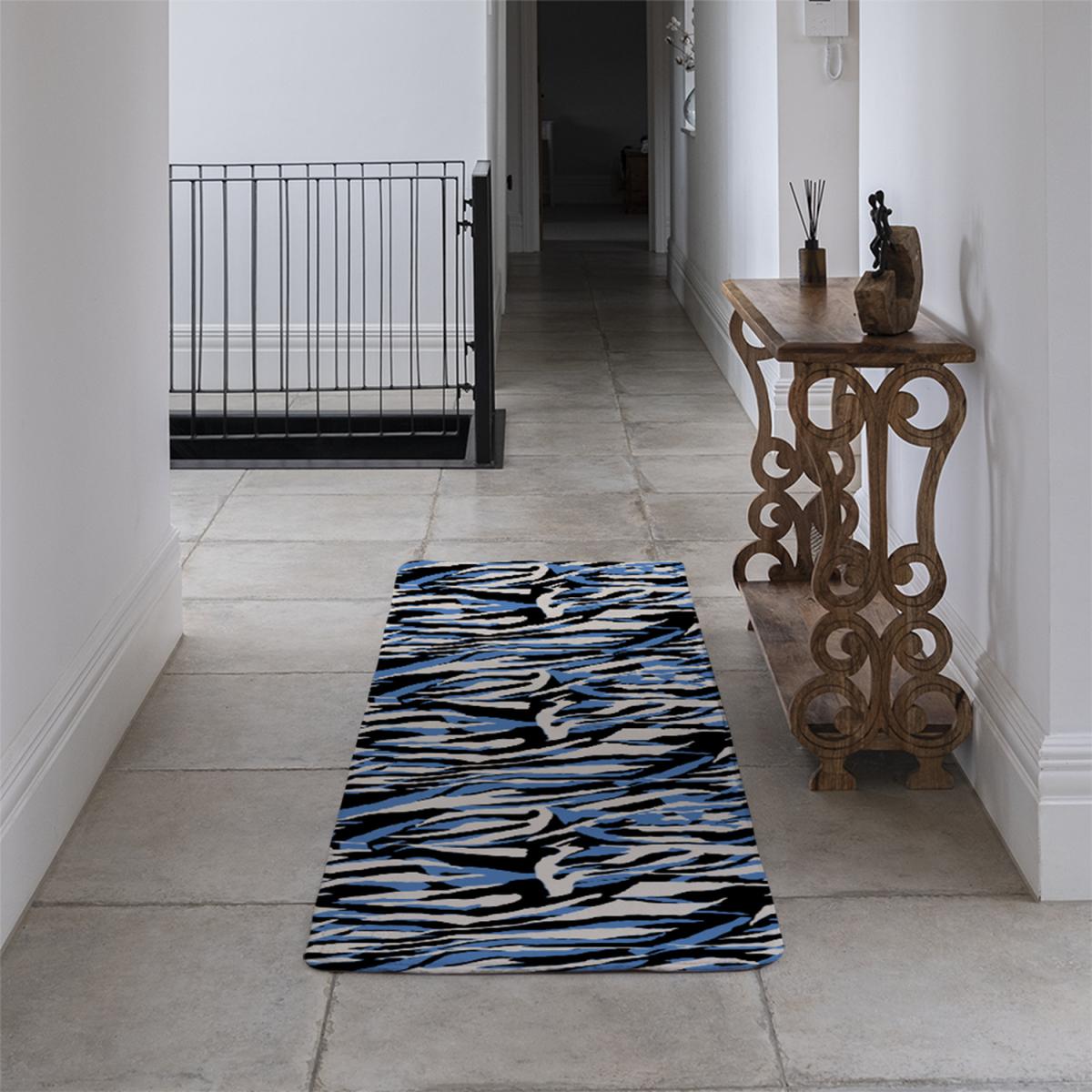 I love this zebra skin runner rug for adding a bold, contemporary touch to a variety of interiors. Its striking blue tones make it a versatile piece that works well in modern, eclectic, or even more traditional spaces when paired thoughtfully. It’s perfect for hallways or narrow spaces where you want to create visual interest without overwhelming the room. Practical styling tips include layering it over neutral carpets to make it pop or anchoring a seating area in a lounge with it for a focal point. Keep accessories and furniture in complementary colours or textures to balance the vibrant pattern and ensure the rug remains a statement piece.