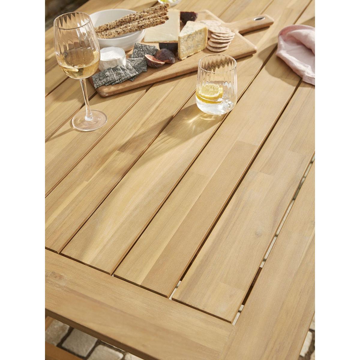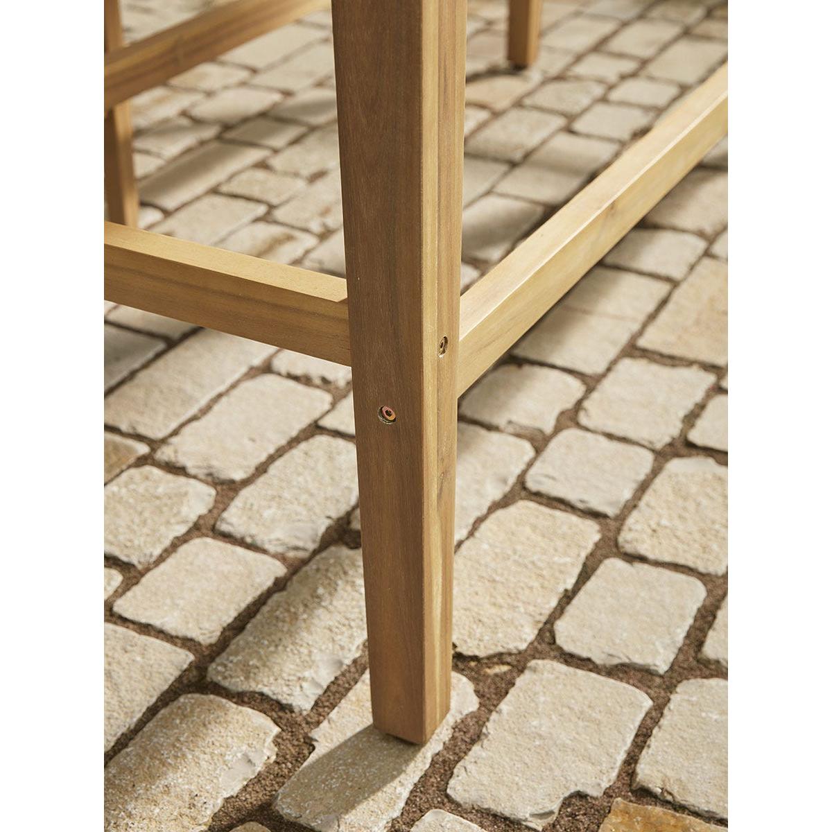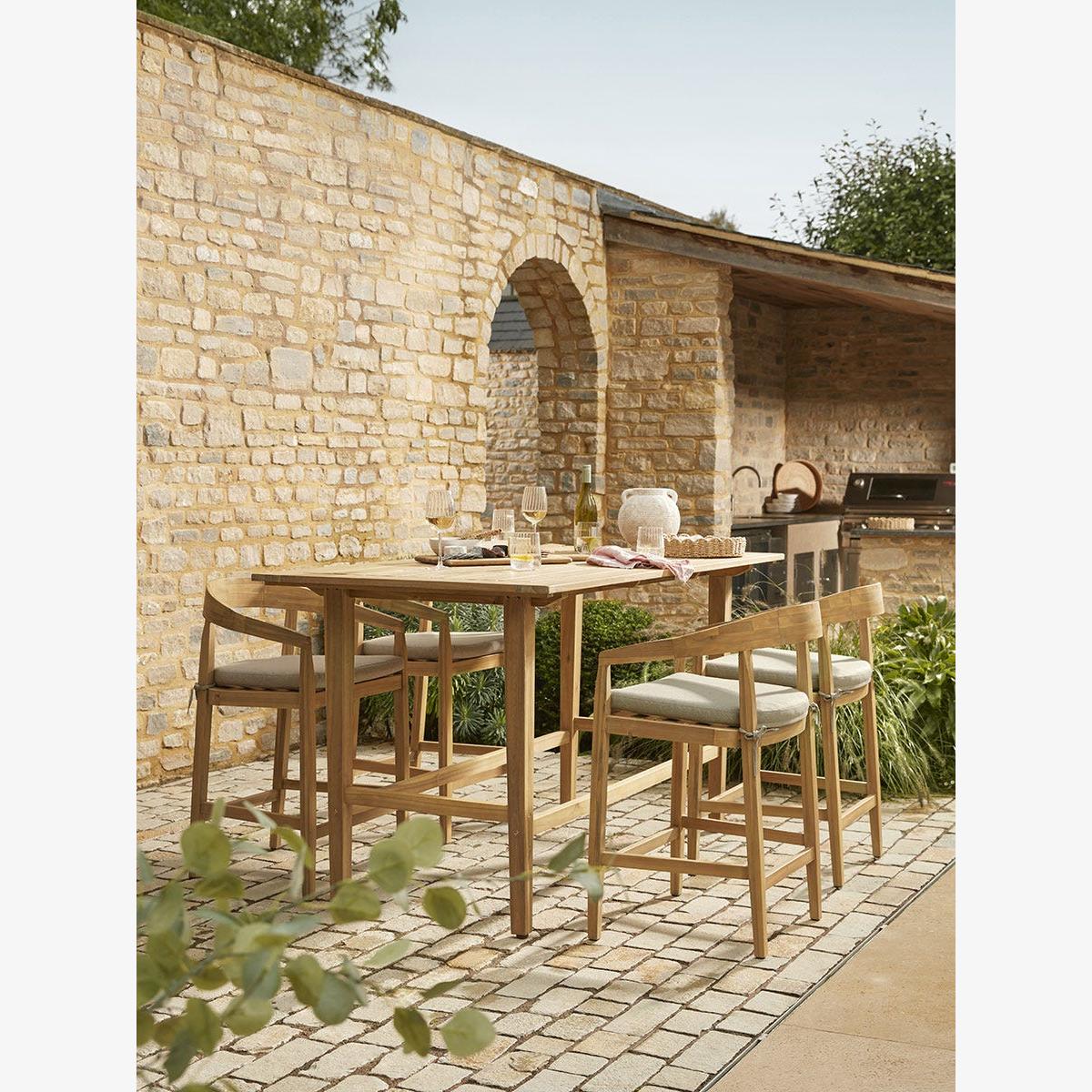 A welcome addition to our range of acacia wood outdoor furniture, this table is perfect when paired with stools for creating an outdoor bar area for entertaining throughout the summer.  An update on a classic design, this bar height table features rich toned acacia wood for a sympathetic addition to both contemporary and traditional garden styling. The slatted top is set on angular splayed legs in the same natural wood.