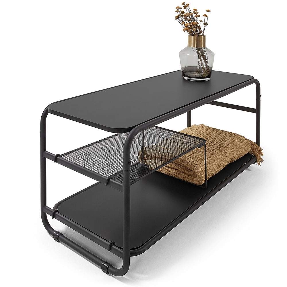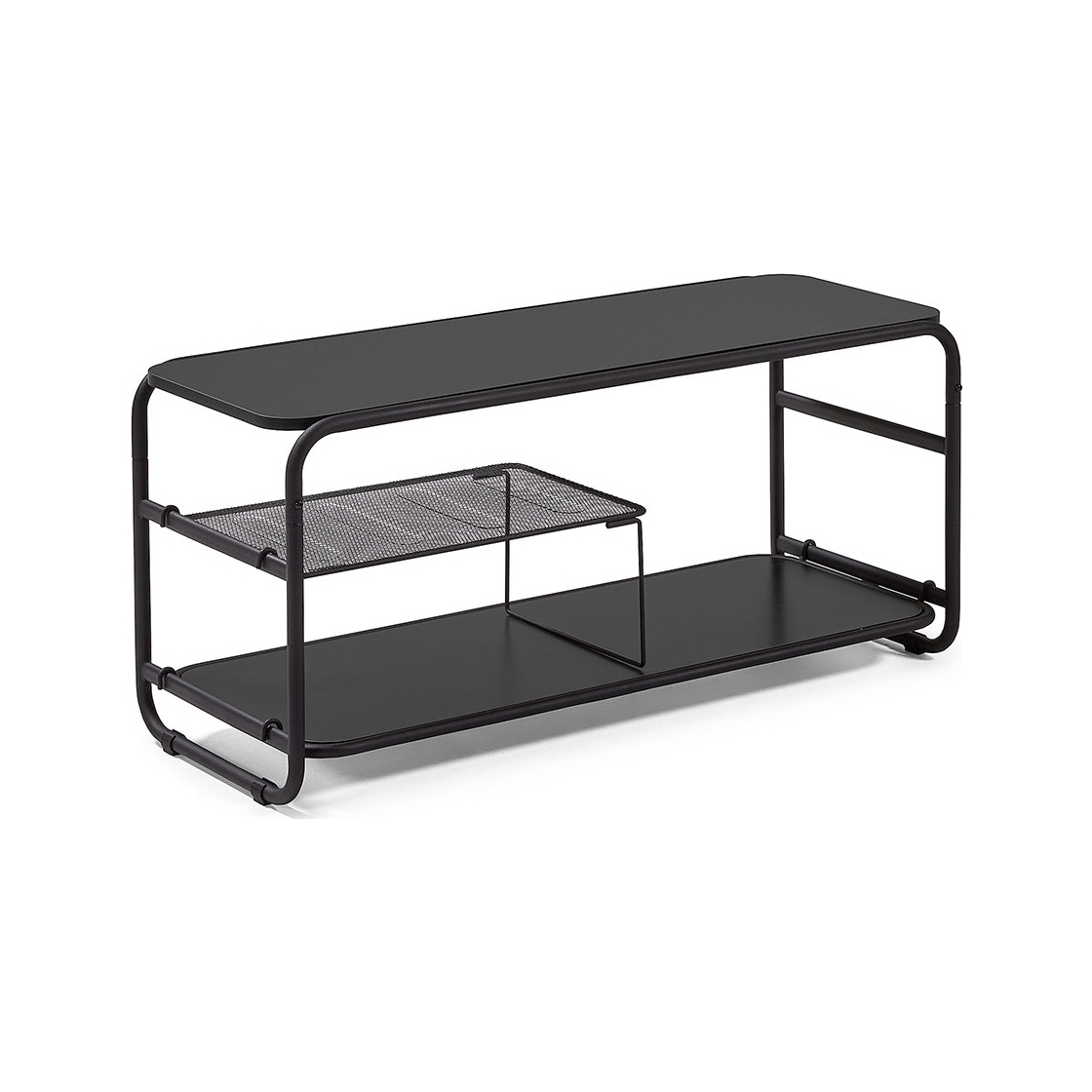 Designed with 2 large shelves, the Academy TV Stand would be a practical and stylish addition to your living room! Made from steel, the strong structure perfectly supports your TV and equipment without bowing. Not just for the TV, you could always use it as a coffee table instead and store magazines and books on the mesh shelf? Finished in black, add an industrial element to your chosen space. With matching designs available from La Forma, give your home a little refresh!.