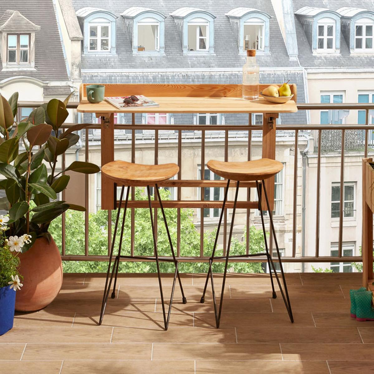 Maximise your outdoor space with the Acanta Balcony Table Bar by Cerland, a stylish and practical addition to any balcony. Crafted from durable larch wood, certified for sustainability, this compact balcony bar measures 118 x 50 x 69 cm and easily attaches to most railings. Its natural strength and weather resistance make it ideal for year-round use. Perfect for breakfast, remote working, or relaxing with a book, it comfortably seats two, creating a cosy corner to enjoy your view. The smart folding top saves space when not in use, making it ideal for smaller balconies. Quick and easy to install without complicated tools, the Acanta Table Bar blends functionality with elegant design. Add a touch of charm and practicality to your outdoor living space while supporting eco-friendly materials and craftsmanship with Cerlands trusted quality.