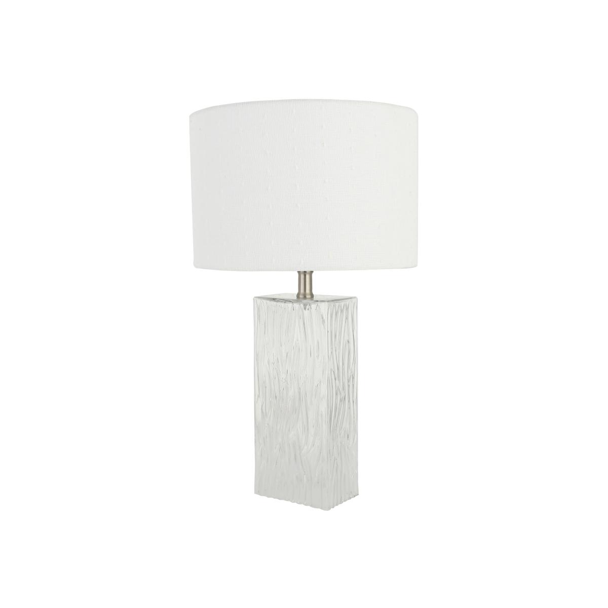 Enhance your work or study table with the Acantha Table Lamp. This table lamp adds a contemporary touch to your room, elevating your interiors. The detailed glass finish illuminates the room with a trendy glimmer. Moreover, the white shade adds a beautiful glow to uplift your space.