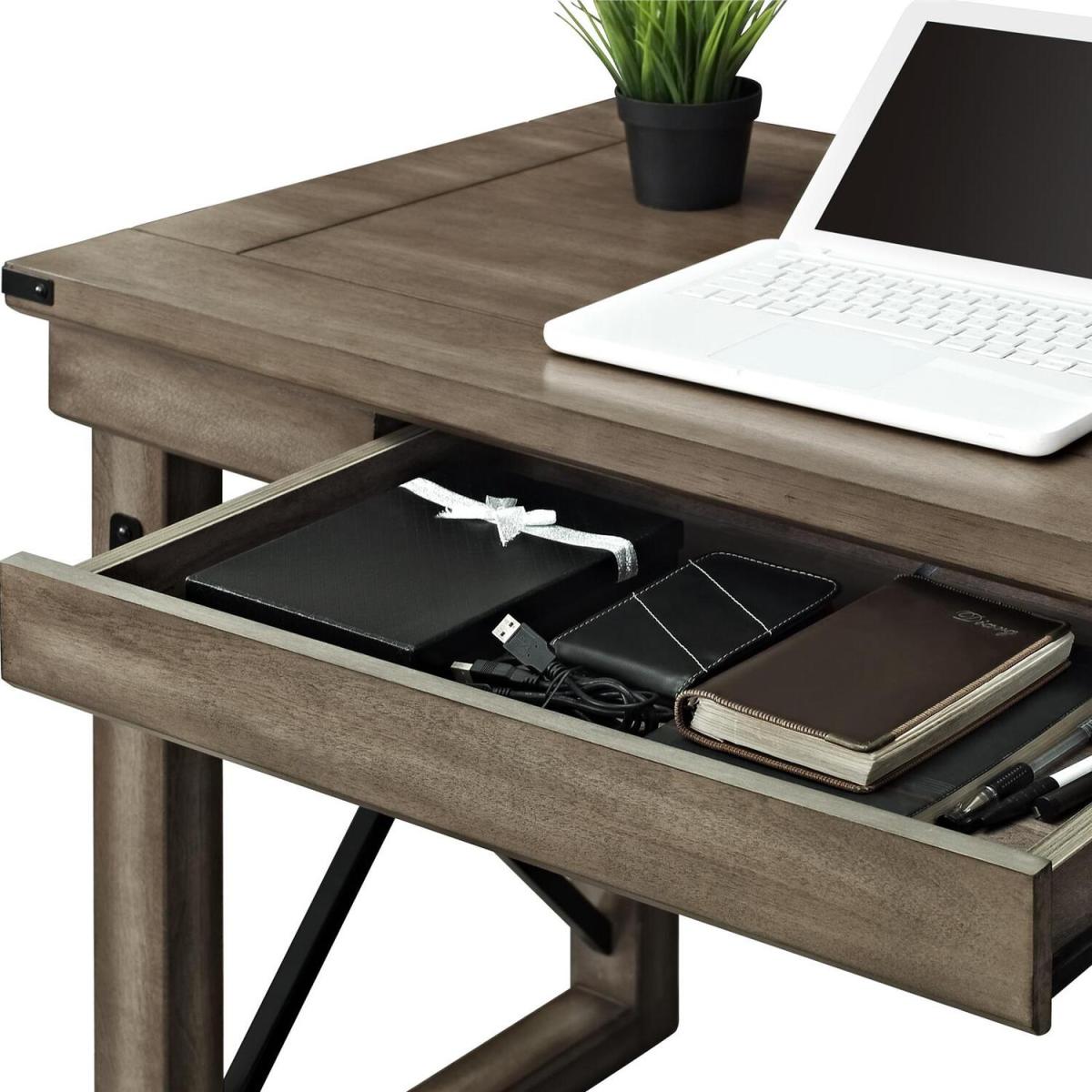 Mix functionality and style with the accent computer desk. The smooth finish on the laminated particleboard pairs with the metal frame for a fun mid-century modern feel.