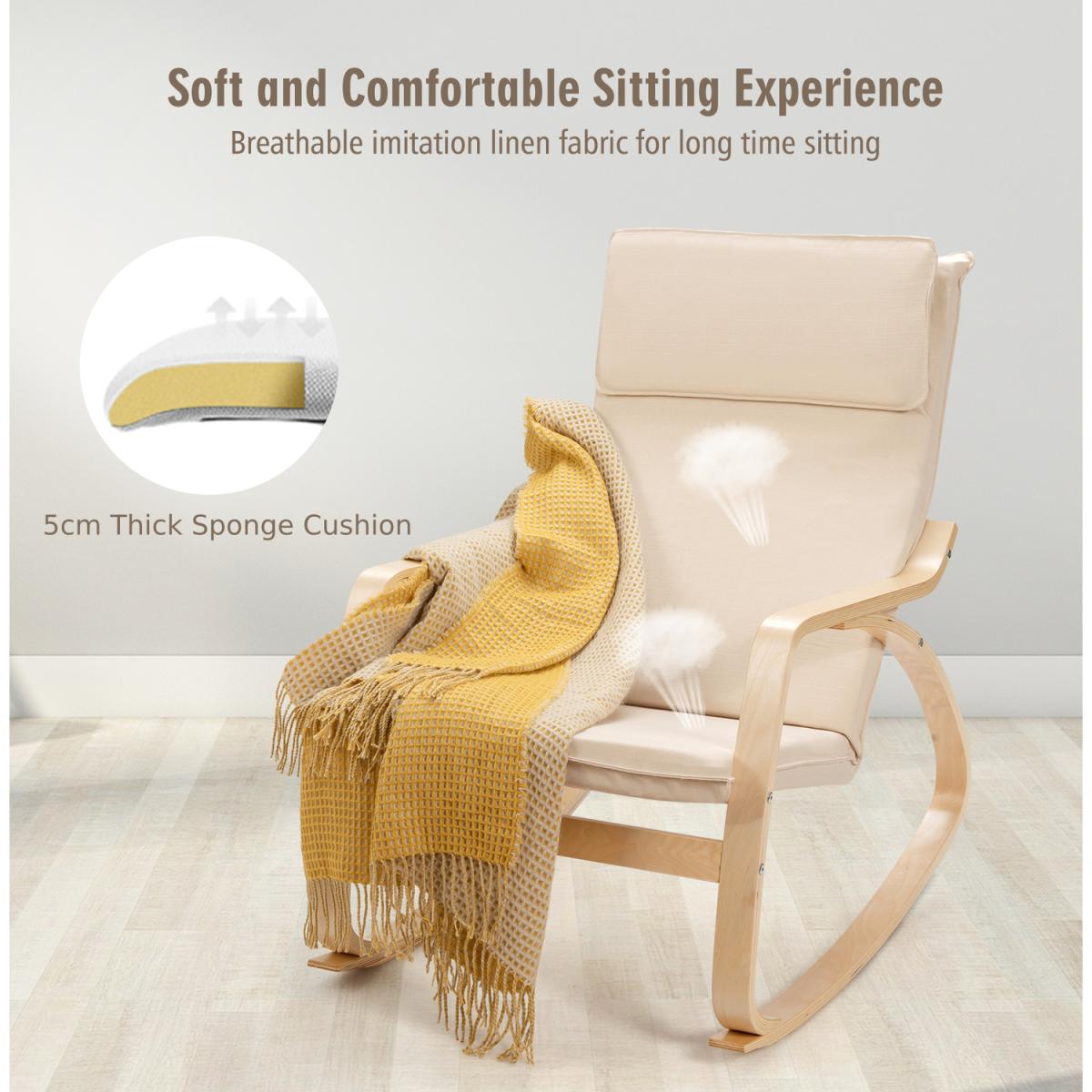 I love the modern vibe of this beige rocking chair-its neutral tone makes it versatile and easy to incorporate into a range of interiors, from Scandinavian minimalism to cozy boho spaces. The sleek wooden frame adds a touch of Scandinavian chic, while the padded seat and back provide comfort for long lounging sessions. It's perfect as a statement piece in a living room, nursery, or reading corner. For styling tips, consider pairing it with soft throws or patterned cushions to add texture, or placing it in a corner with a small side table and a stylish lamp for a functional yet aesthetic nook. Its timeless design easily blends into both contemporary and rustic setups, making it a practical, stylish addition to many homes.