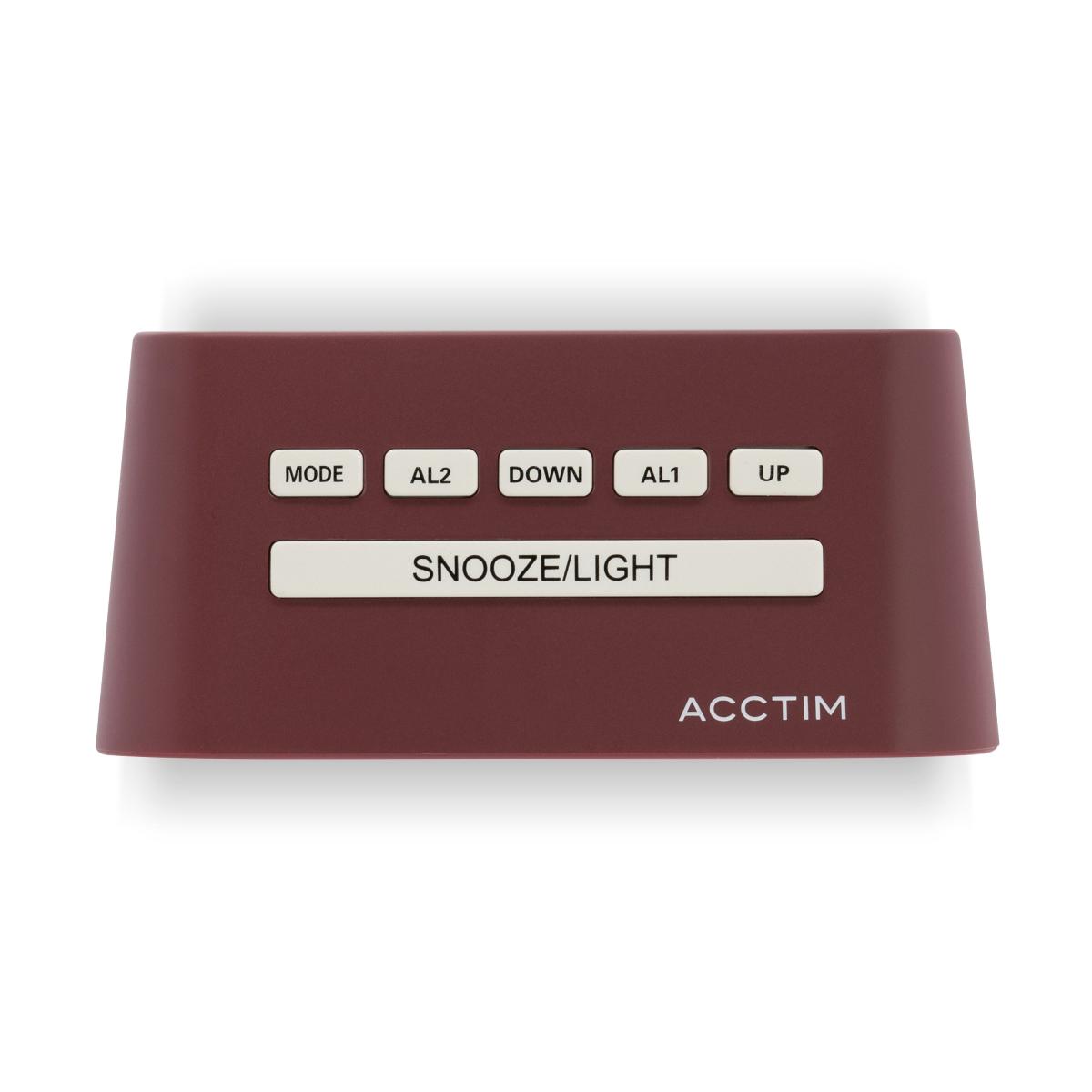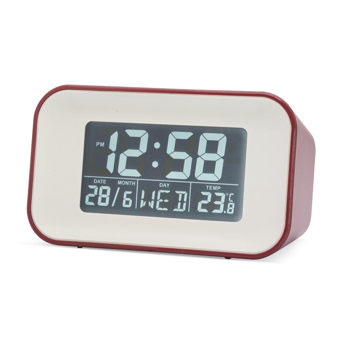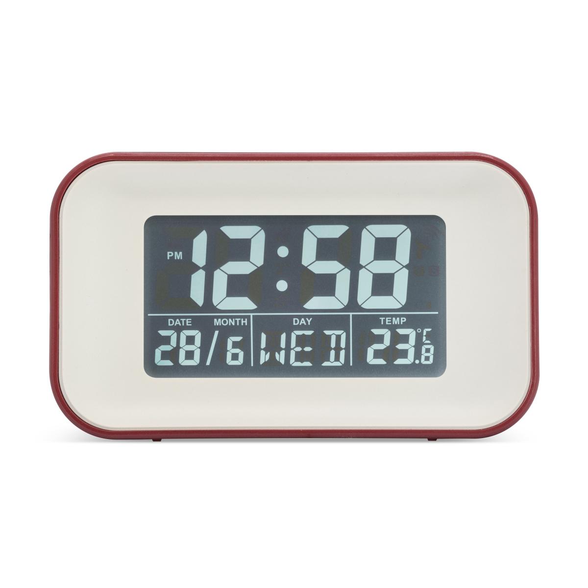 * Digital display* Requires 2 x AA Batteries (not included)* Features couples alarm, calendar, indoor temperature, crescendo alarm and snooze options* Indoor temperature display Fashion and technology combine with this digital alarm. The smooth, matt finish and retro styling is home to Acctim's reflection luminous display technology for easier nighttime viewing without the harsh glare of typical alarms. With added couples alarm, calendar, indoor temperature, crescendo alarm and snooze, Alta really does have it all.