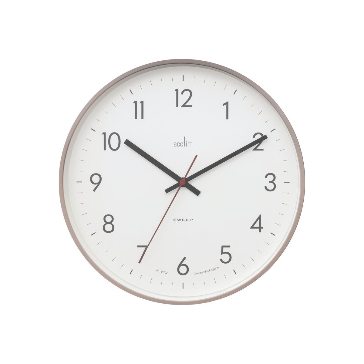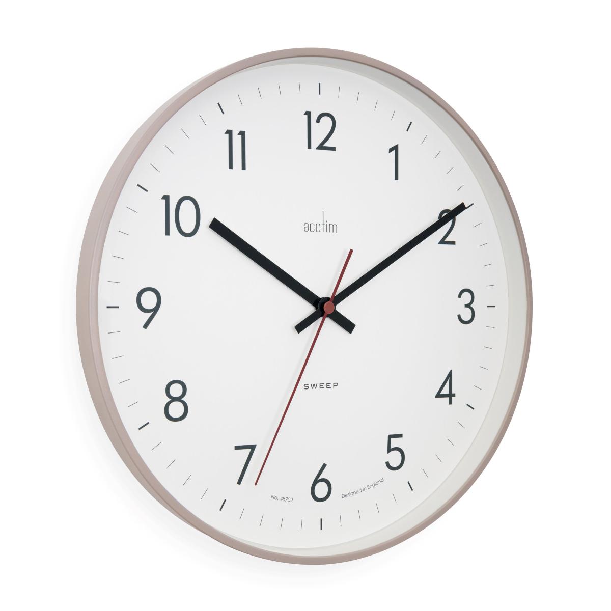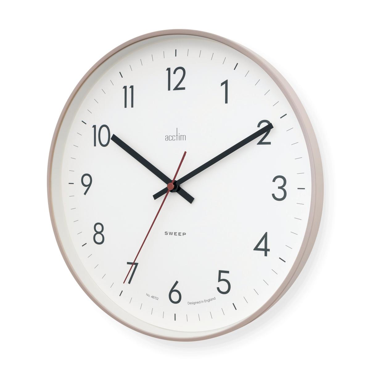 * Numbered analog display* Requires 1 x AA Battery (not included)* Available in a choice of stylish colours Sleek and stylish wall clock with non-ticking sweep seconds hand, soft colour casing and glass lens. This classic clock would make a bold addition to any wall.