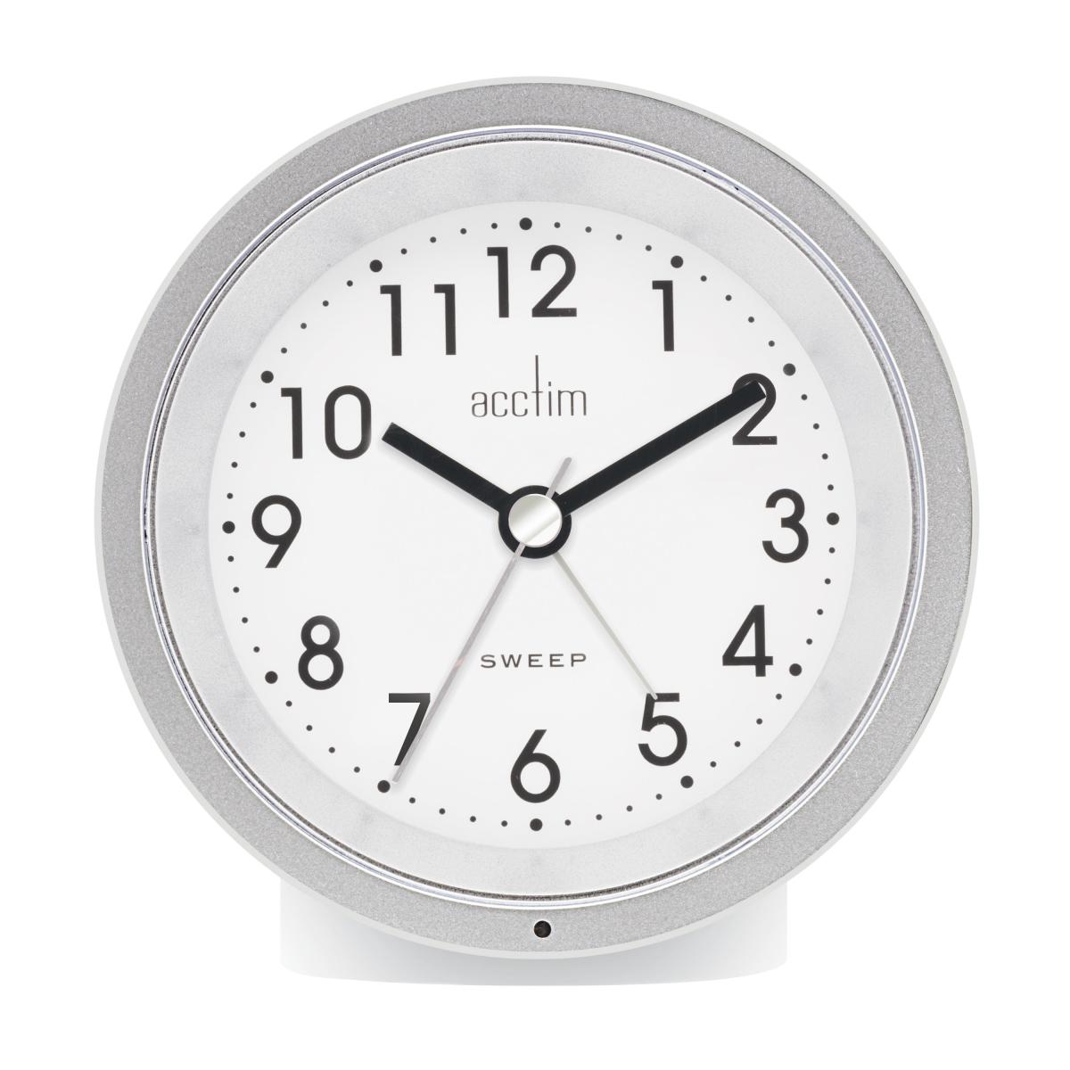 * AA Battery operated* Modern style* Free standing* 2 year guarantee For form and function in perfect harmony look no further than the Caleb Analogue Alarm Clock. The clear, Arabic dial with sweep technology for a quiet night's sleep, is lit by Acctim's Smartlite technology - automatically illuminating the dial as your room gets darker. Perfect for those early morning rises.