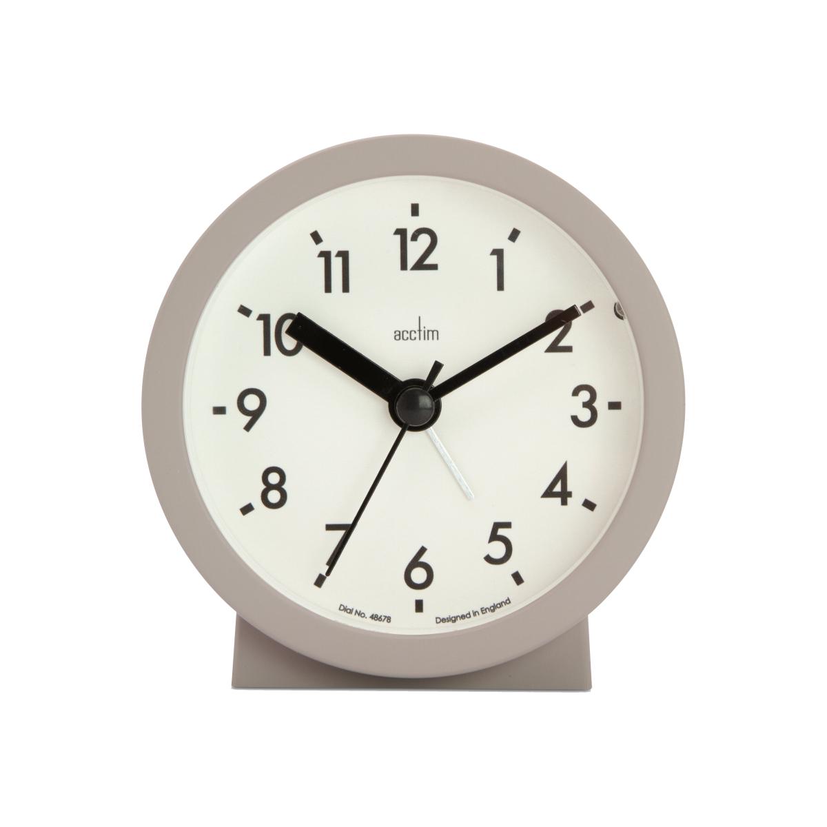 * Numbered analog display* Requires 1 x AA Battery (not included)* Features simple snooze and light functions* Available in a range of colours This simple, sleek and perfectly proportioned alarm clock comes with snooze and a light. Available in a choice of colours, this clock is great for adding a pop oif style to your bedroom.