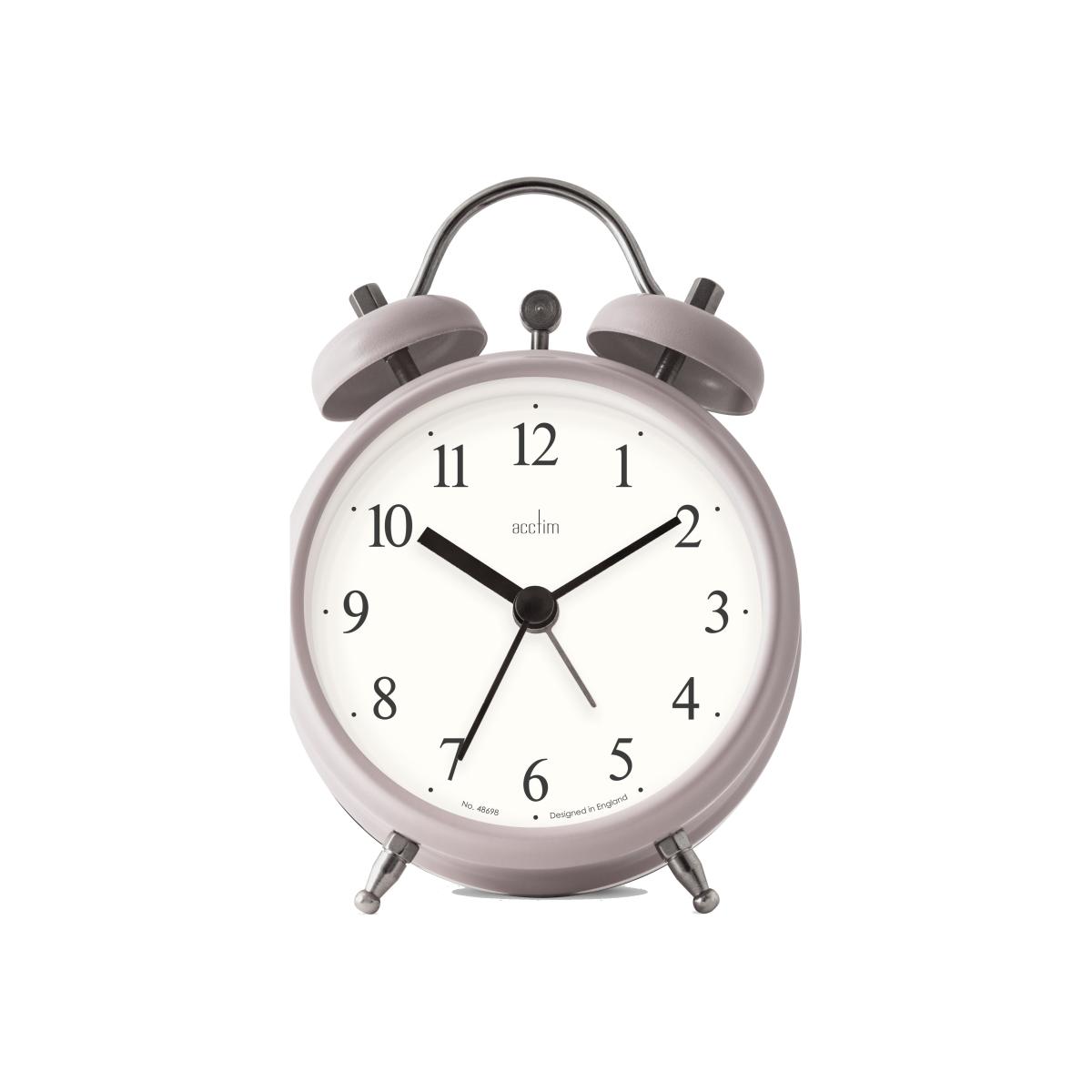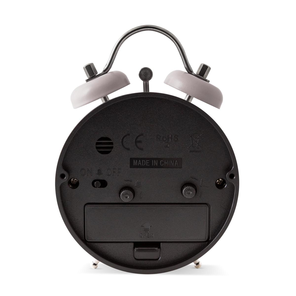 * Numbered analog display* Requires 1 x AA Battery (not included)* Available in a choice of colours* Alarm function Enjoy the vastness of time with this compact faux bell alarm clock which features a beep alarm and metal case.