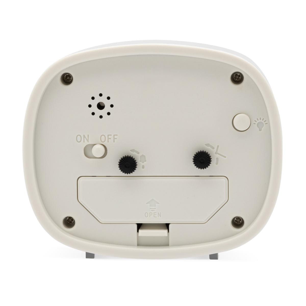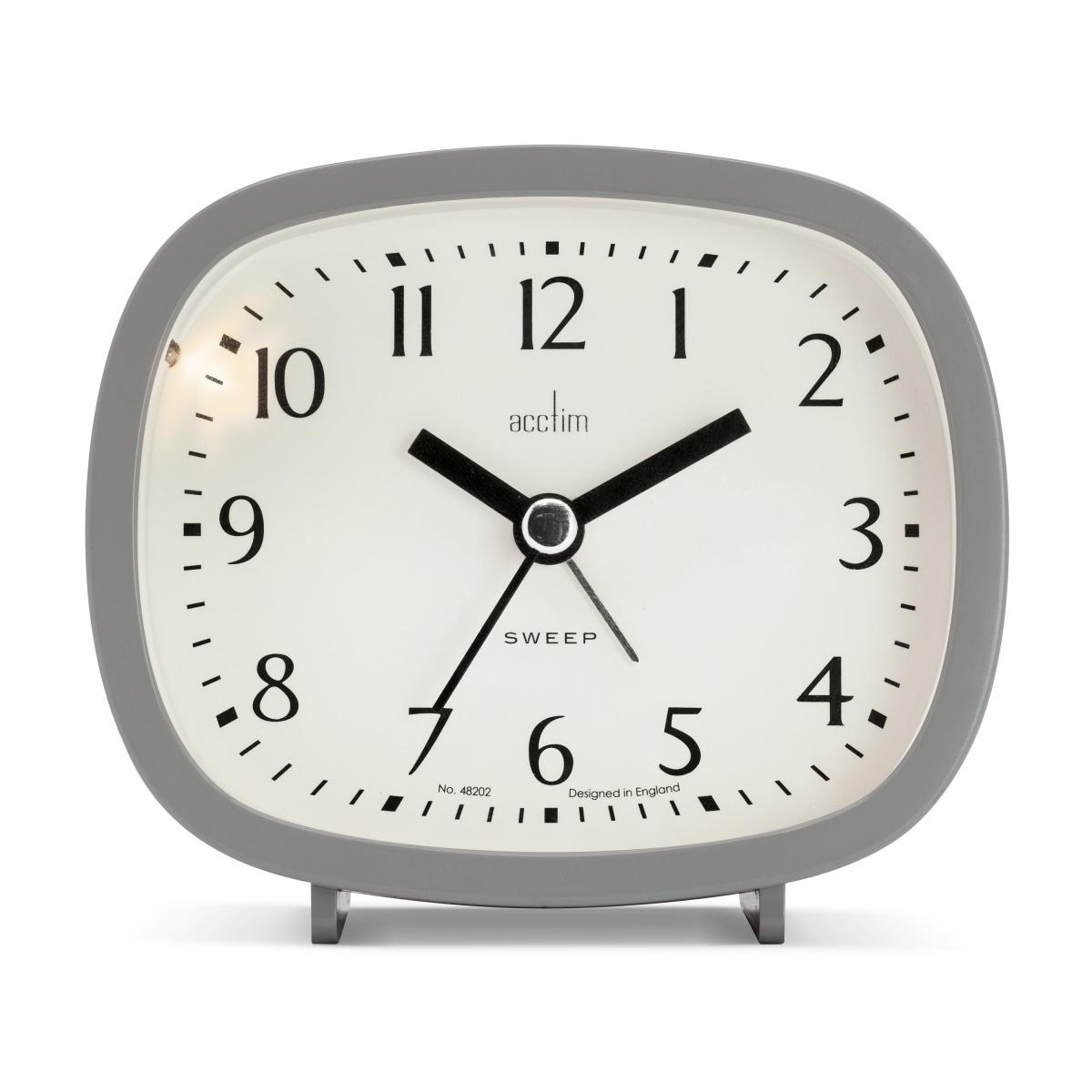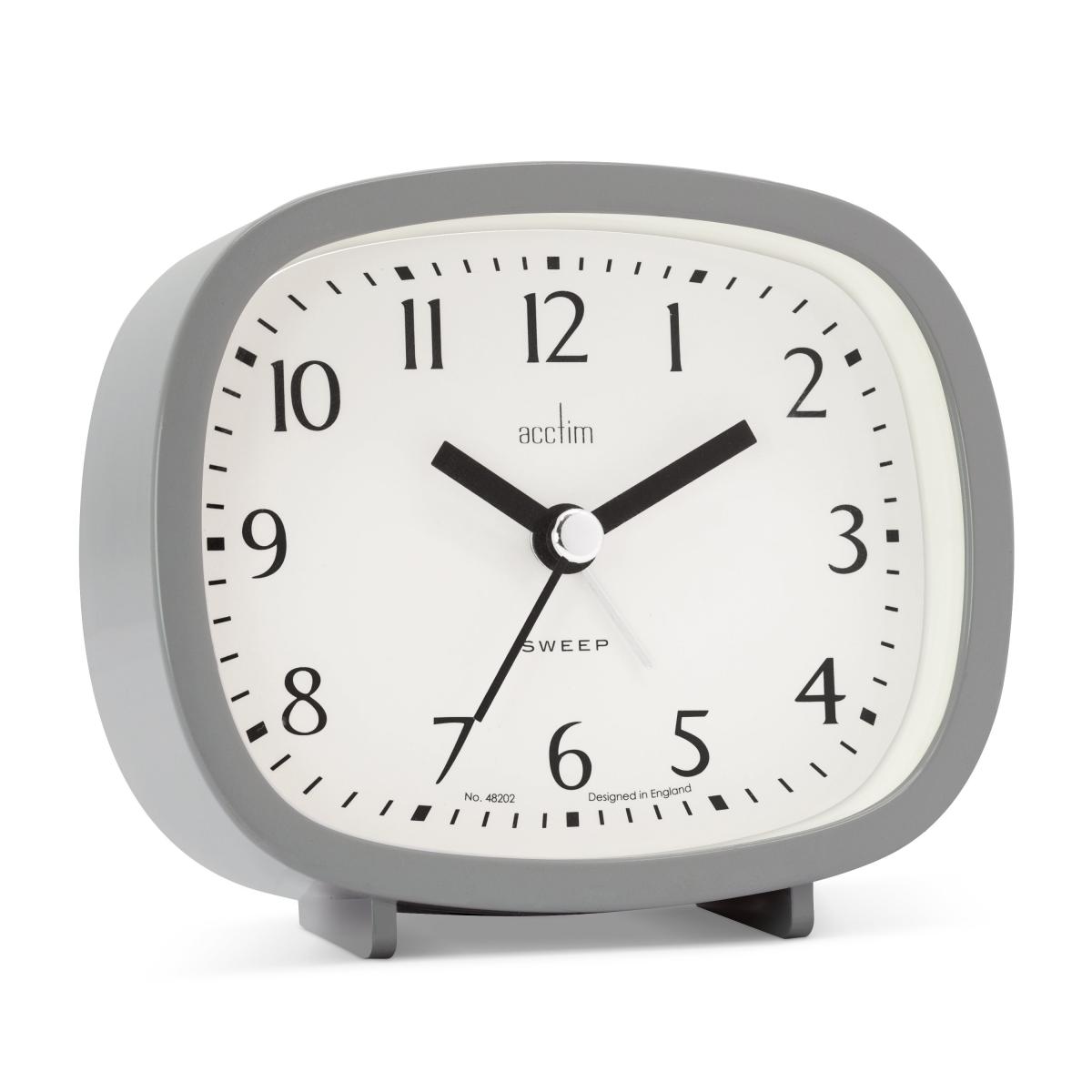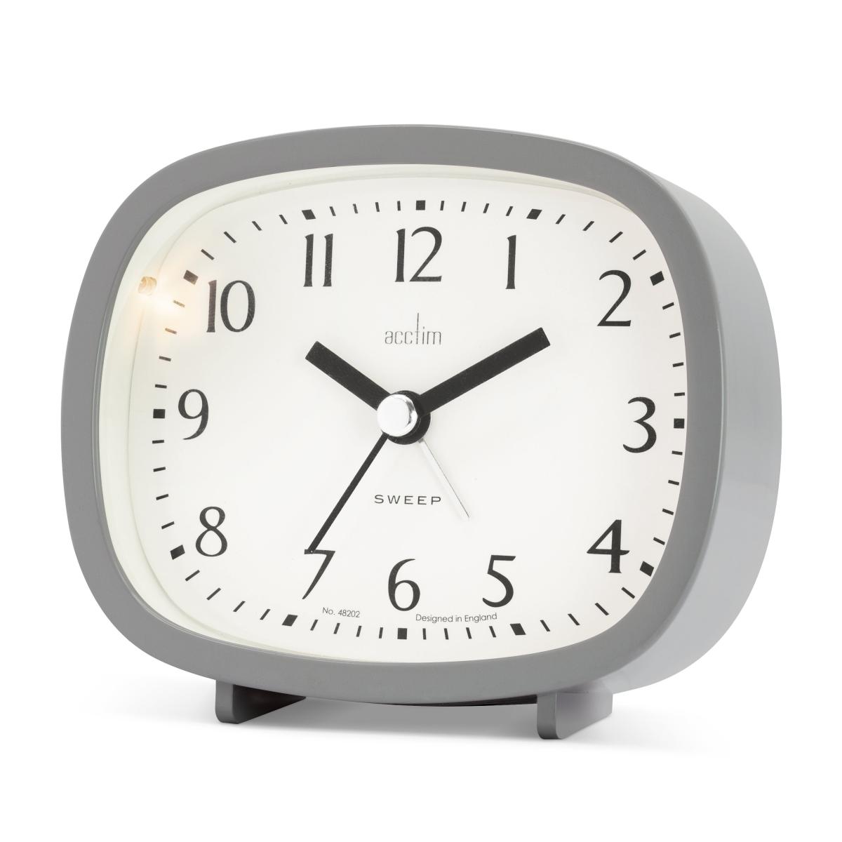 * Numbered analog display* Requires 1 x AA Battery (not included)* Non-ticking sweep second hand* Features an alarm function with a snooze and backlight Retro style alarm clock with a non-ticking sweep seconds hand, alarm with snooze and light.