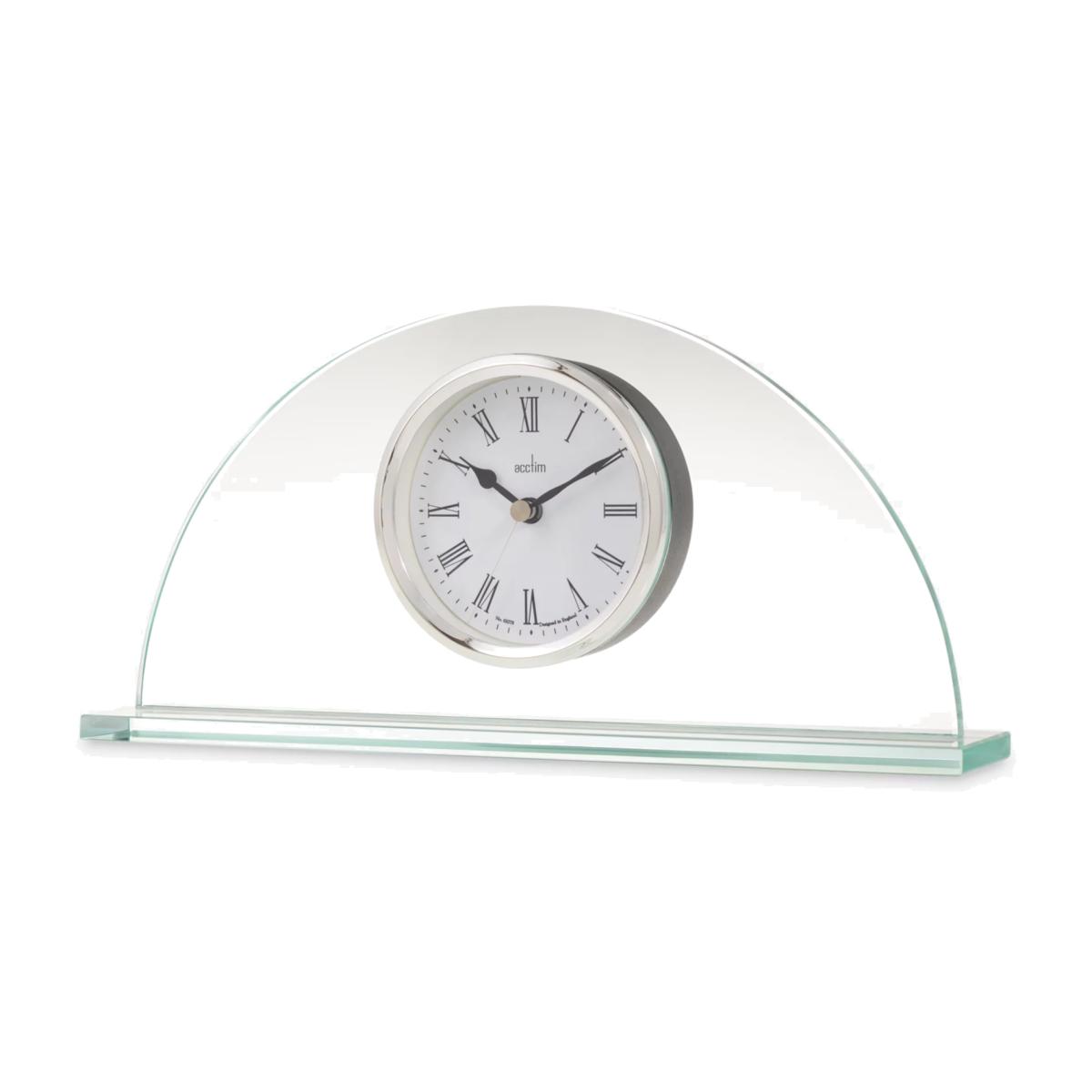 Acctim Milton Roman Numeral Quartz Analogue Half Moon Mantel Clock, 13cm, Clear