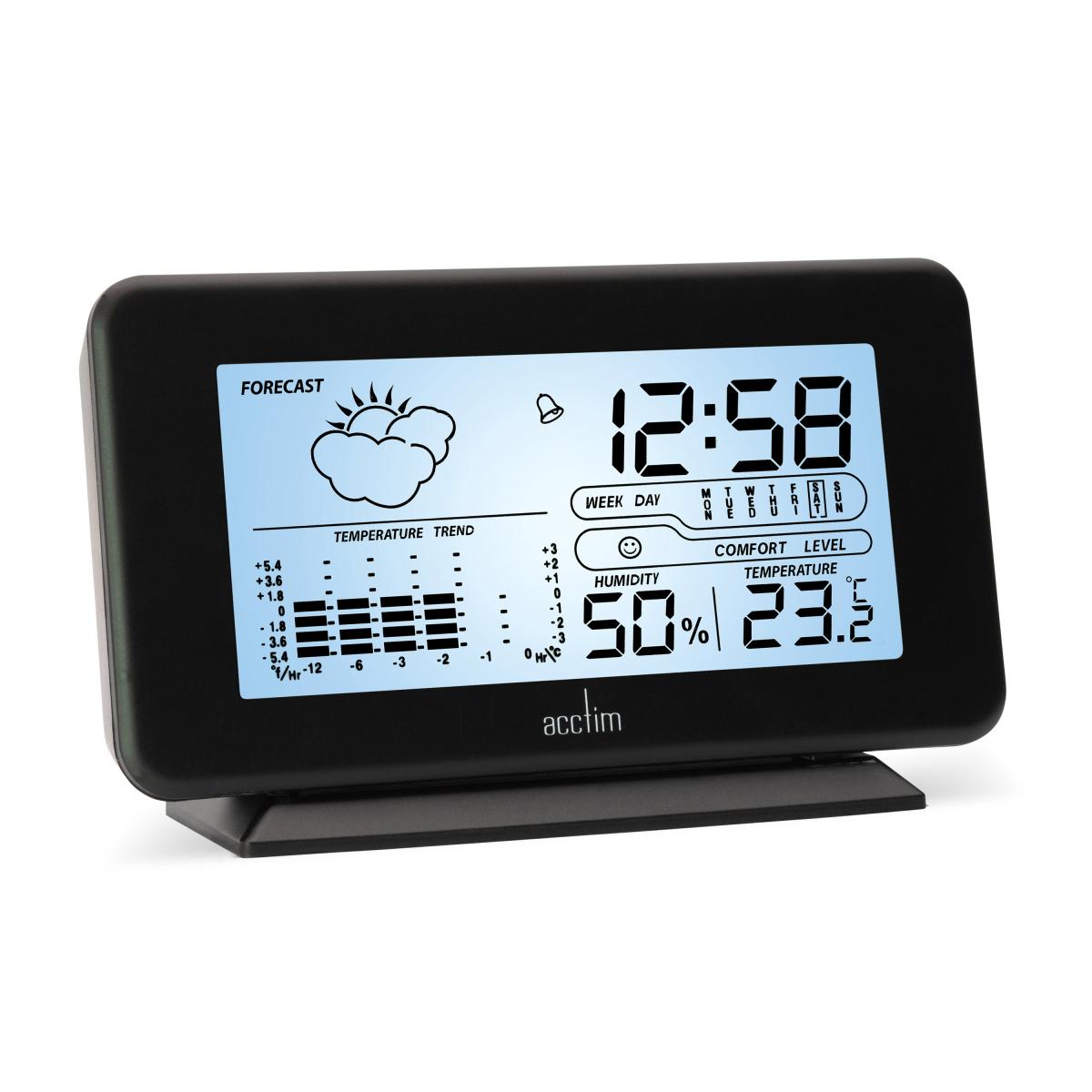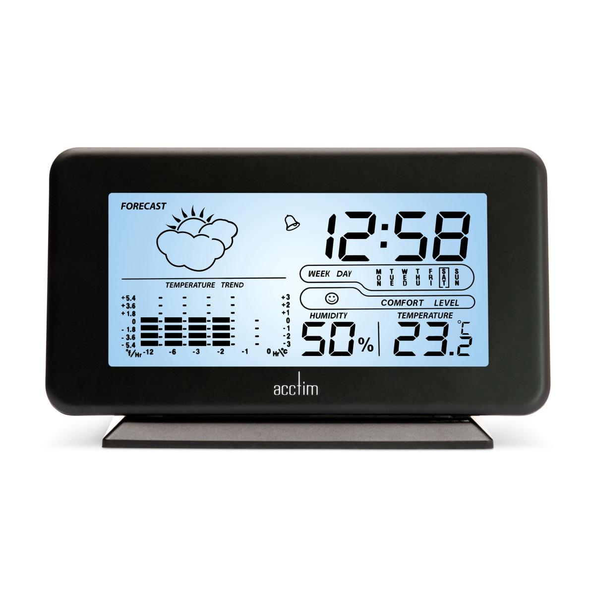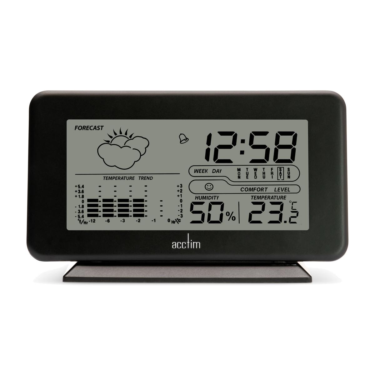 * AAA Battery operated* Weather display* 2 year guarantee Featuring a liquid crystal display (LCD) this Weather Station Alarm Clock includes multiple functions making it your best bedside companion. With a multi-function display, including the time, calendar, snooze, indoor temperature and a weather trend indicator.