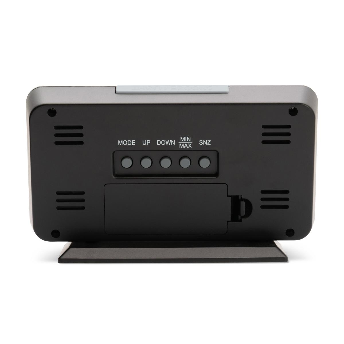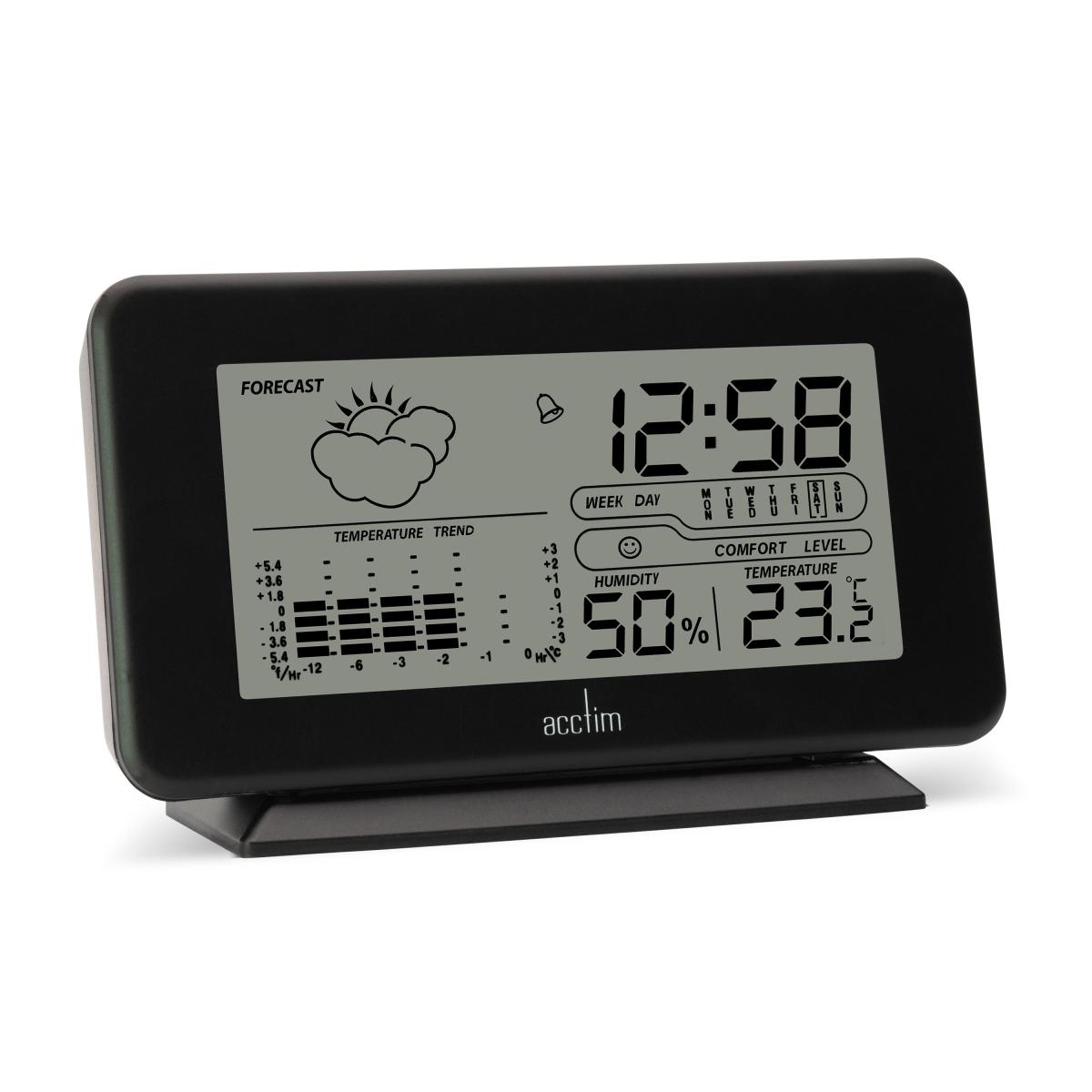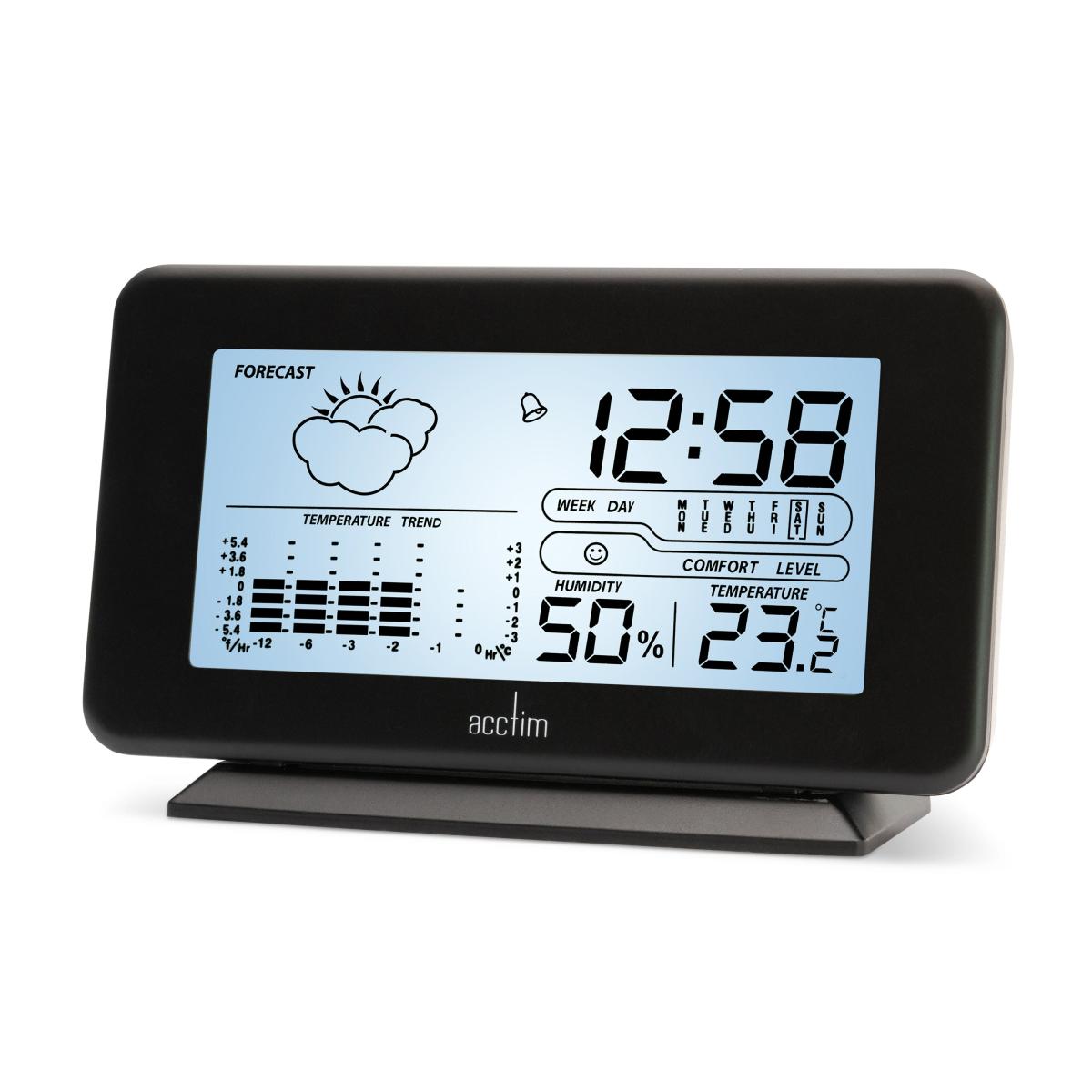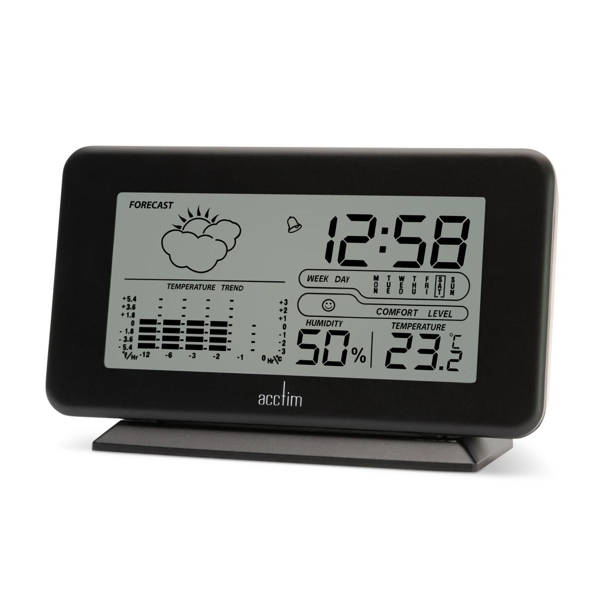 * AAA Battery operated* Weather display* 2 year guarantee Featuring a liquid crystal display (LCD) this Weather Station Alarm Clock includes multiple functions making it your best bedside companion. With a multi-function display, including the time, calendar, snooze, indoor temperature and a weather trend indicator.