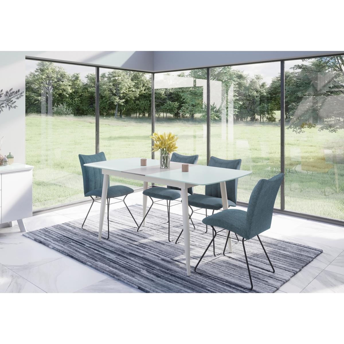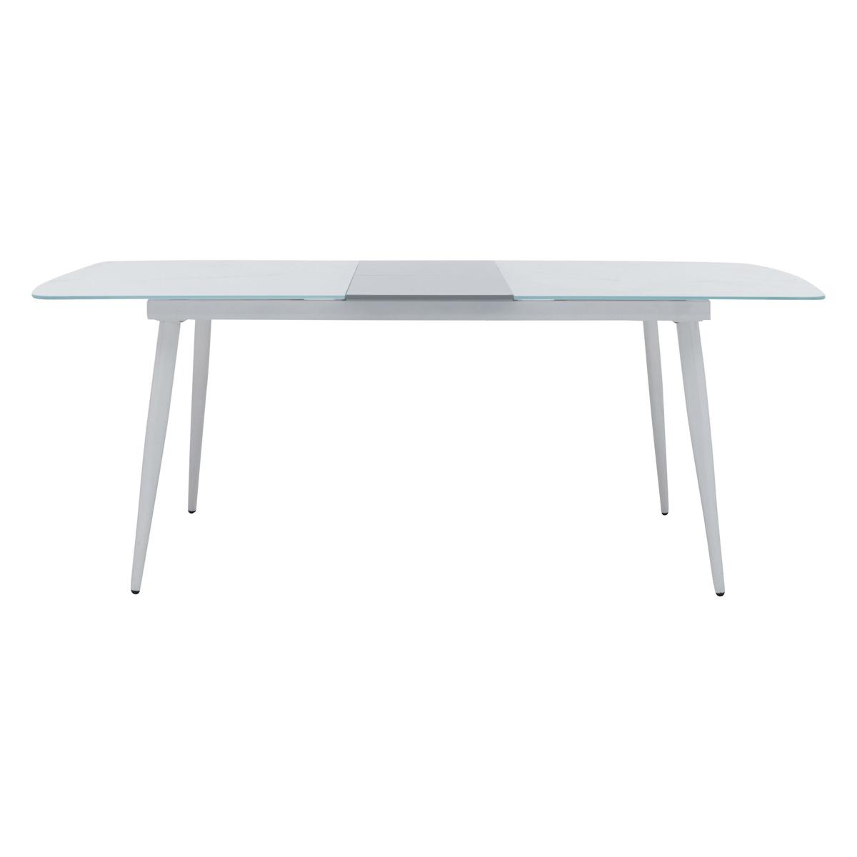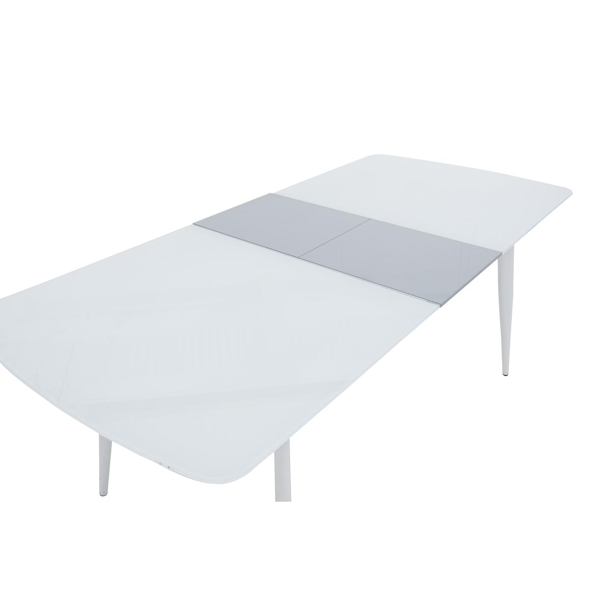 Contemporary dining style at a fabulous price. Sleek glass-topped extending table in grey or white. A Furniture Village online exclusive. Here’s the perfect dining table, especially if you’re just starting out. The Ace large extending dining table is cool, stylish, compact and great value. And thanks to its sleek durable finish, it's also the perfect multi-purpose table, great for quick breakfasts, working lunches and stylish dinner parties. The glass top, durable and easy to clean, rests on a sturdy steel frame. You’ll also appreciate its retro flair – the table corners are nicely rounded and the legs are slender. Choose bright white or fashionable grey. This six-seater table also usefully extends to seat eight with a smooth butterfly action. Simply pull the two ends apart and a hidden leaf slots into place. Exclusively available online, the Ace large extending dining table is part of the Ace collection which includes two sizes of dining table, dining chairs, bar stools and dining sets. Pair this table with the range’s dining chair, available in a choice of colours, or opt for a fabulous Ace dining set. Please note: Under direct light, glass surfaces may reveal the polishing process in the form of small scratches. We recommend using coasters and placemats at all times.