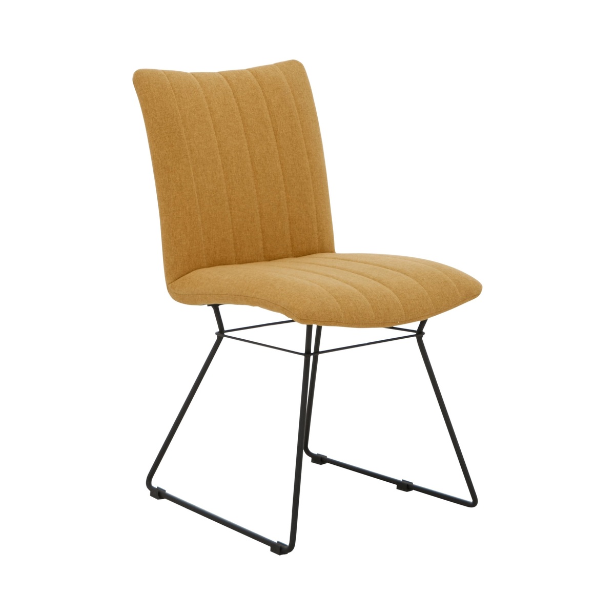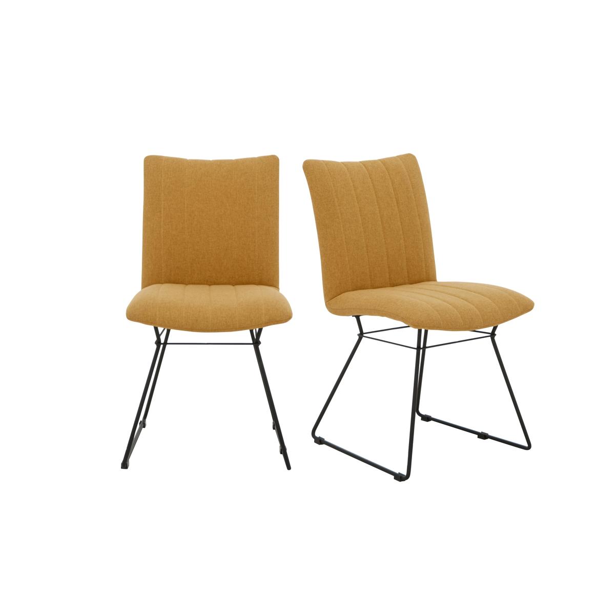 Contemporary dining style at a fabulous price. Upholstered dining chair in four cool colours. A Furniture Village online exclusive. The Ace pair of dining chairs is a cool and contemporary dining chair that brings more than style to the table – its great-value price makes it so easy to furnish your perfect dining room. With its cushioned seat and back, beautifully upholstered in fabric, this chair is both a stylish and a comfortable place for you and your dinner guests to linger. The upholstery is available in four fabulous colours – yellow, blue, grey and orange – and has an all-over fluted detail. On trend sleigh-style black metal legs complete the look. The Ace pair of dining chairs are part of the fantastic-value Ace dining collection at Furniture Village. The collection also includes two sizes of extending dining table in white and grey as well as a wide choice of very affordable dining sets. Love the look but need seating for a bar table? You’re in luck – the Ace bar stool offers the same contemporary flair and great-value as the Ace dining chair. Ace is only available online at Furniture Village.