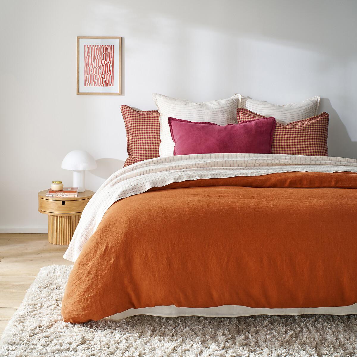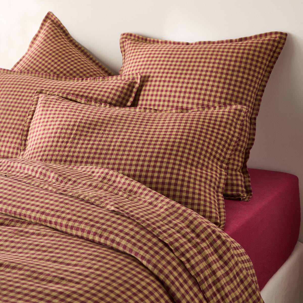 Gingham-style tiles and pure dyed woven linen, Acélie bed linen harks back to a traditional style revisited in very modern tones... A creation by our designers for La Redoute Intégrés. A fresh material in summer and comfortable in winter, washed linen becomes softer and more beautiful with every wash.. Slightly wrinkled, it does not require ironing. Product Details • 100% linen • Washed linen • Dyed woven gingham check, both sides • Colour: Bordeaux/Absinthe Match this item with the rest of the bedding in the range for a stylish bedroom. And you can mix and match it with different colours and styles from our other bedding ranges when you want to change things up and create your own unique look. Care Advice • Machine washable at 60°C • By washing your laundry at 40°C instead of 60°C, you limit energy consumption. Dimensions • 50 x 70cm: Rectangular pillowcase • 63 x 63cm: Square pillowcase Pillowcase sold individually. • MADE IN PORTUGAL. • Fibre grown in Europe. This product is labelled European Flax™. Guaranteed traceability for premium flax fibre grown in Western Europe for all its markets. A plant fibre produced using sustainable farming practices, without GMOs or irrigation (except in exceptional circumstances). • OEKO-TEX® Standard 100. Standard 100 certification by OEKO-TEX® tests textile products for harmful substances via an independent, international label.