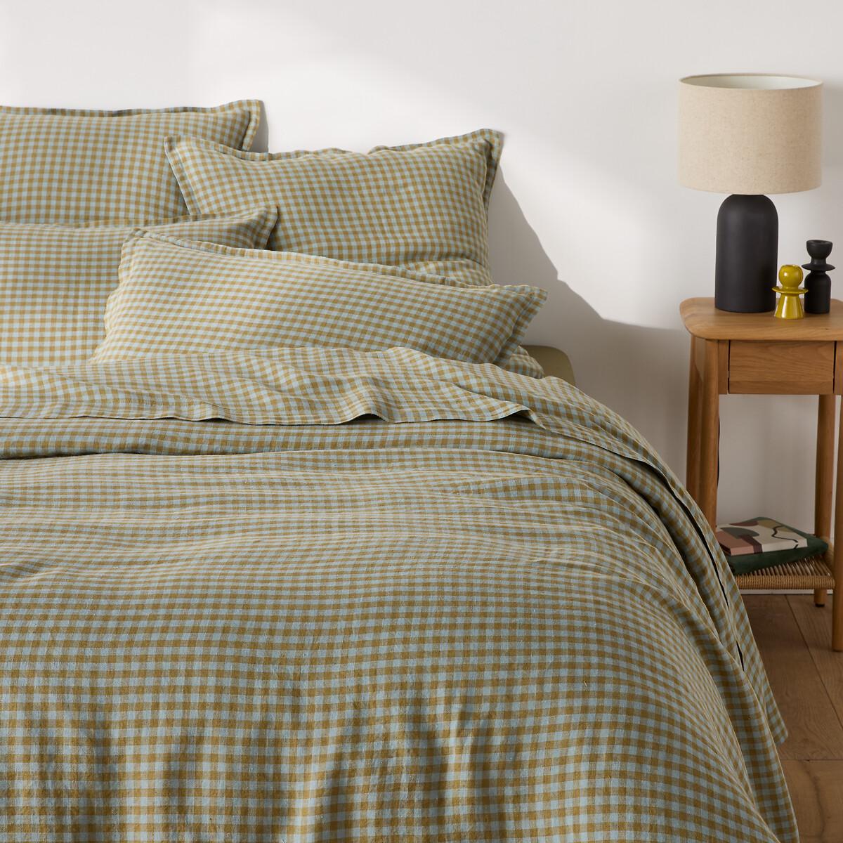 Gingham-style tiles and pure dyed woven linen, Acélie bed linen harks back to a traditional style revisited in very modern tones... A creation by our designers for La Redoute Intégrés. A fresh material in summer and comfortable in winter, washed linen becomes softer and more beautiful with every wash.. Slightly wrinkled, it does not require ironing. Product Details • 100% linen • Washed linen • Dyed woven gingham check, both sides • Straight buttoned hem Match this item with the rest of the bedding in the range for a stylish bedroom. And you can mix and match it with different colours and styles from our other bedding ranges when you want to change things up and create your own unique look. Care Advice • Machine washable at 60°C • By washing your laundry at 40°C instead of 60°C, you limit energy consumption. Dimensions • 140 x 200cm: Single • 200 x 200cm: Double • 240 x 220cm: King • 260 x 240cm: King • MADE IN PORTUGAL. • Fibre grown in Europe. This product is labelled European Flax™. Guaranteed traceability for premium flax fibre grown in Western Europe for all its markets. A plant fibre produced using sustainable farming practices, without GMOs or irrigation (except in exceptional circumstances). • OEKO-TEX® Standard 100. Standard 100 certification by OEKO-TEX® tests textile products for harmful substances via an independent, international label.
