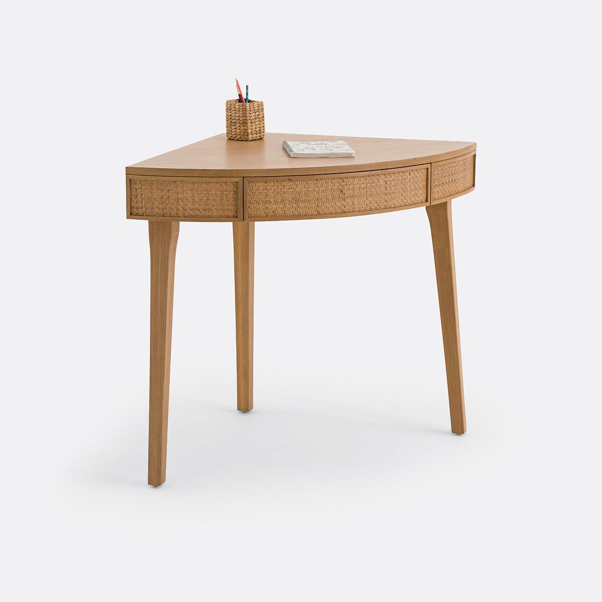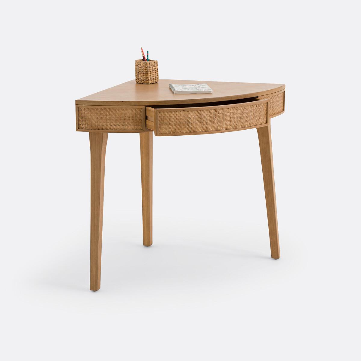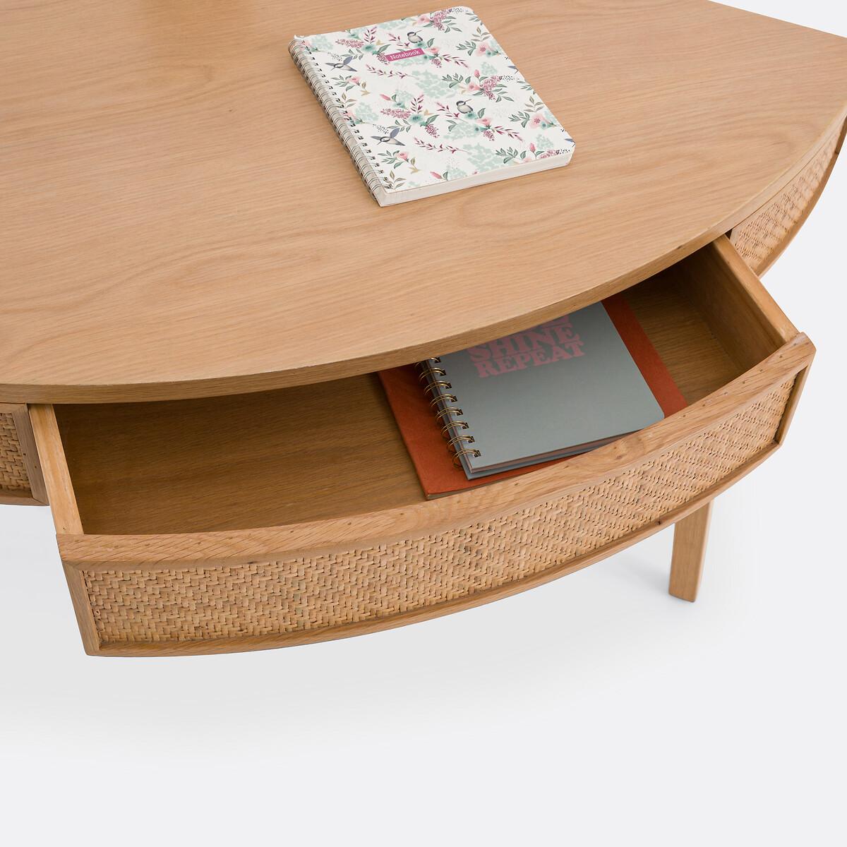 The Achilde agile desk is part of our Les Ingénieux collection. Creations full of ideas to make life simpler and everyday life more beautiful, imagined by our designers in France..Rattan fronts for a bohemian note and solid oak base: clever, Achilde allows you to create a work space in the lost corner of a room. Add your laptop, a small lamp and some accessories to complete the look. Why you'll love this product • For an office corner that rounds the corners • It slips into lost corners and saves space. Perfect for small spaces • A single piece of furniture with two functions: desk for teleworking or console to display books, decorative objects... the choice is yours • Its drawer, practical for storing small office equipment • Made from FSC® certified wood. Product Details • 1 drawer and space for cable management • FSC® oak and oak-veneered eucalyptus plywood with a nitrocellulose varnish finish • Woven rattan facades • FSC® solid oak legs with a nitrocellulose varnish finishDimensions. Overall • Width: 99cm • Height: 77cm • Depth: 66.5cm • Weight: 15kg. Usable space • Drawer: L48.5 x H7 x D34.5cm • Height of legs: 63cmDelivery:. Assembly required. Available for home delivery. Note! Please check that all access points are large enough to accommodate your delivery (doors, stairs, lifts). • WOOD FROM SUSTAINABLY MANAGED FORESTS. FSC® certified wood comes from forests that are environmentally, socially and economically well managed. Dimensions and weight of parcel1 parcel • L84 x H17.5 x D76cm. 17.2kg