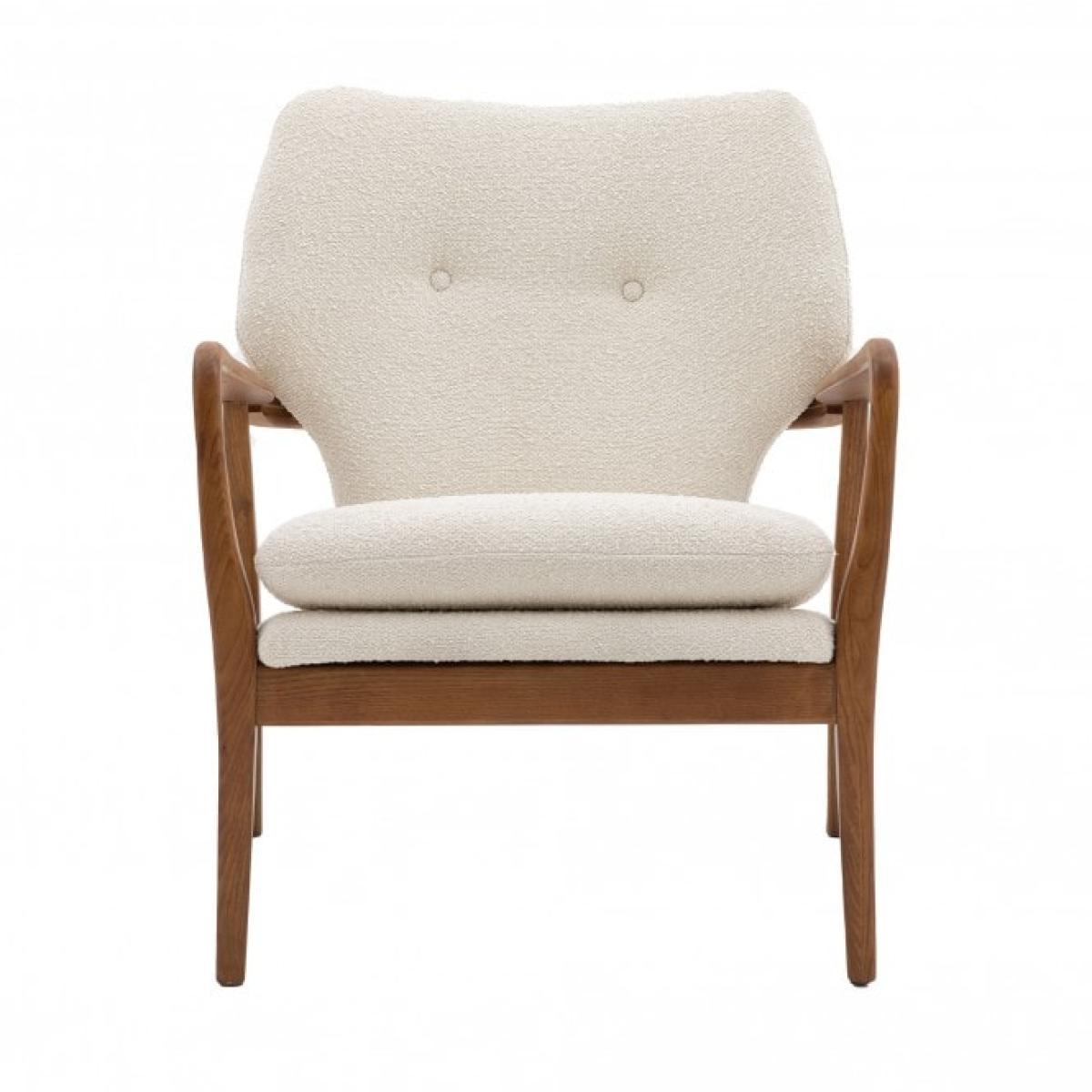 This remarkable Mid-Century style chair features an elegantly shaped solid ash wood frame which makes it a stand out piece in any interior. It is upholstered in cream natural linen with button details and a soft cushion for comfort. Material:Oak / Plywood. Colour: Cream.