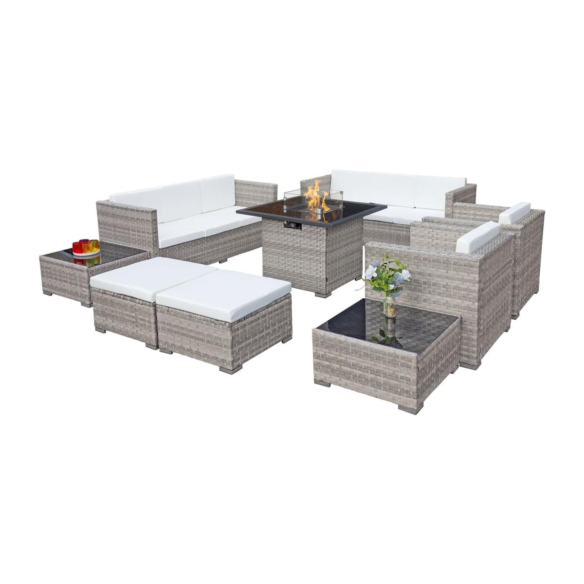 The Acorn Deluxe Rattan Collection is the perfect addition to your outdoor space, ideal for larger gardens and designed to create lasting memories with friends and family. This modular set can be arranged to your liking, allowing you to craft your own unique outdoor oasis. With seating for up to 10 people, it's perfect for both intimate gatherings and larger parties. The set includes an LPG Matching Dove Grey Rattan Firepit, complete with 5kg of Fire Glass Pebbles, a PVC firepit cover, and a Glass Wind Shield for protection. The gas tank fits neatly inside the table, with a recommendation for a 5kg Standard Propane Tank. Enjoy warmth, style, and versatility in your garden with the Acorn Deluxe Collection.