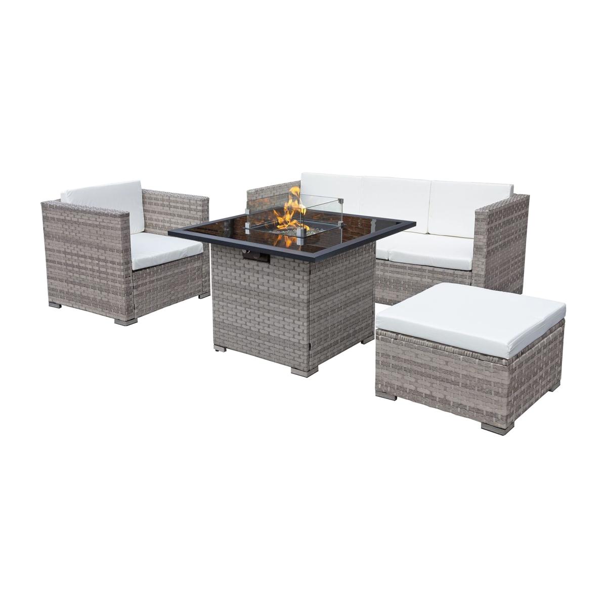 The Acorn Collection is crafted to enhance your outdoor space, making it the perfect setting for summer memories and enjoyable gatherings, whether for small or larger gardens. The Acorn 5 Seat Lounge Sofa Set offers a sleek, minimalist bistro-style experience in elegant Natural Grey tones. It comes with a Matching Dove Grey Rattan Firepit, which adds a cozy, warming touch to your space. This set includes 5kg of Fire Glass Pebbles, a PVC firepit cover, and a Glass Wind Shield. The Gas Tank conveniently fits inside the table, with a recommended size of no larger than a 5kg Standard Propane Tank, ensuring both functionality and style.
