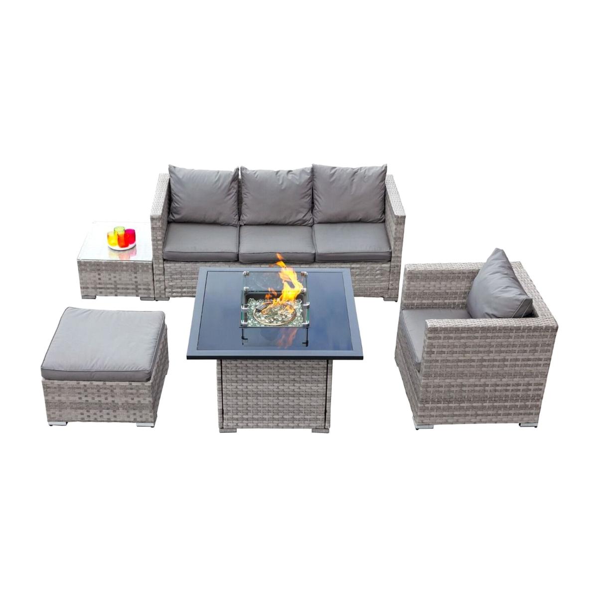 The Acorn Collection is crafted to enhance your outdoor space, making it the perfect setting for summer memories and enjoyable gatherings, whether for small or larger gardens. The Acorn 5 Seat Lounge Sofa Set offers a sleek, minimalist bistro-style experience in elegant Natural Grey tones. It comes with a Matching Dove Grey Rattan Firepit, which adds a cozy, warming touch to your space. This set includes 5kg of Fire Glass Pebbles, a PVC firepit cover, and a Glass Wind Shield. The Gas Tank conveniently fits inside the table, with a recommended size of no larger than a 5kg Standard Propane Tank, ensuring both functionality and style.