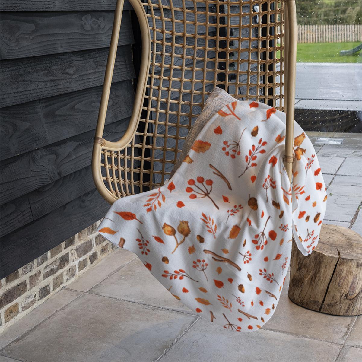 I love this little throw because of its vibrant orange hue and playful leaf pattern, which adds a warm, cheerful touch to any space. It works well in both contemporary and rustic interiors, especially when layered over neutral sofas or armchairs to create a cosy, inviting look. Practical styling tips include draping it casually over the arm of a chair or folding it neatly on a bed for a pop of colour. Its size makes it versatile for both lounging and decorative purposes, contributing instantly to a space’s warmth and personality.
