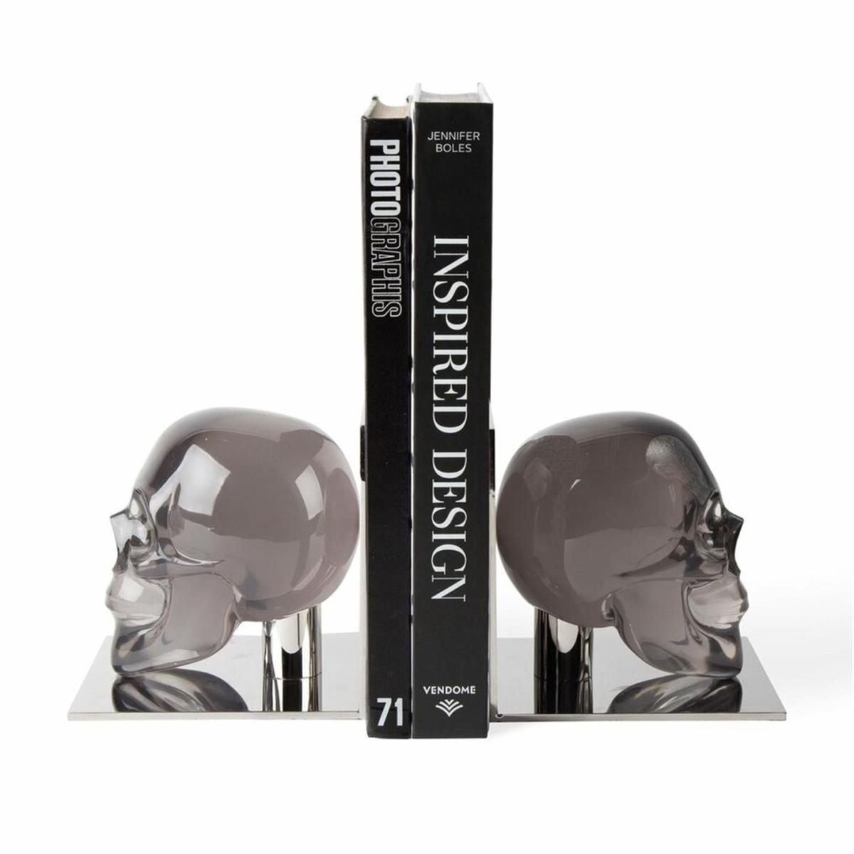 Give your shelfie a refreshing update with these skull bookends from Jonathan Adler. Featuring an L shaped nickel base with a chic grey acrylic skull, they make a striking statement wherever they’re placed.