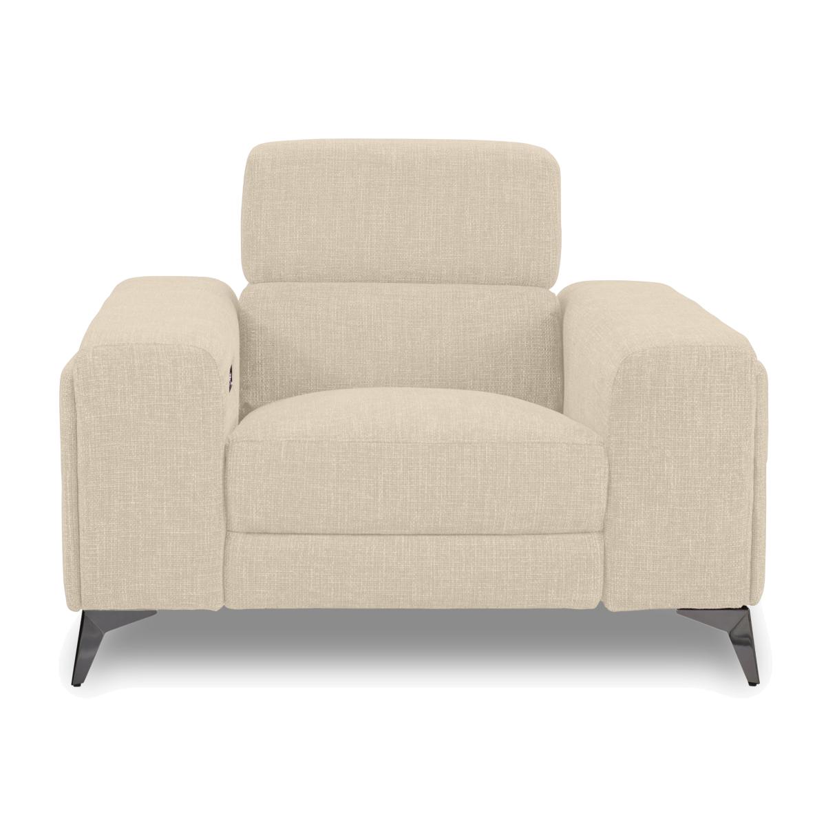 You’ll be wowed by the sofas, armchairs and footstools in our Action range – several times over. First, the look is beyond striking. With a bold modern silhouette, wide arms and metal legs with a black chrome-effect finish, these pieces are designed to stand out. And when you take a seat, you’ll be instantly impressed by the sprung seats, pocket spring seat cushioning and array of power features – power recliners, headrests and footrests and power-operated arm storage. Want more ways to relax? Bluetooth-connected media sofas have built-in speakers, massage units, wireless charging, USB ports and more. Available in 100% leather and fabric, the Action collection is handcrafted exclusively for Furniture Village. Our ultra-modern Action armchair lets you relax with a power recliner, power headrest and power footrest – and look very cool while doing so. Only at Furniture Village. Why you'll love it Bring home the wow factor. High-tech relaxation, superior comfort, striking style. Power up your comfort with a power recliner, power elevating footrest and power headrest. With easy USB device charging. Ultra-modern design with wide arms and black chrome-effect metal legs. Made for box-set bingeing with sprung seats and pocket spring cushioning. Upholstered in a choice of fabric styles and colours. Also available with 100% leather upholstery. Handcrafted exclusively for Furniture Village. This power recliner armchair is part of our Action range. What you need to know Medium comfort level. Seat suspension: zig zag springs. Seat cushioning: pocket spring and high-resilience foam. Seat cushioning is fixed. Back suspension: zig zag spring. Back cushioning: foam. Back cushioning is fixed. Arm cushioning: foam. Back is removable for ease of access. Please allow time for the recliner mechanism to ease. Minor gaps are necessary to ensure ease of motion and may be exaggerated depending on floor type. Some fabrics can show wear on areas of more use or in direct sunlight. Clean regularly using a soft brush or vacuum with the curtain attachment. Deal with any spills promptly. Professional cleaning advised for oil- and grease-based stains. Fixed seat and back cushions require smoothing and straightening regularly. To smooth and straighten fixed cushions, punch the back cushion’s top two corners and the seat cushion’s outer two corners, and pinch outwards. Please read our upholstery care guide for more advice.