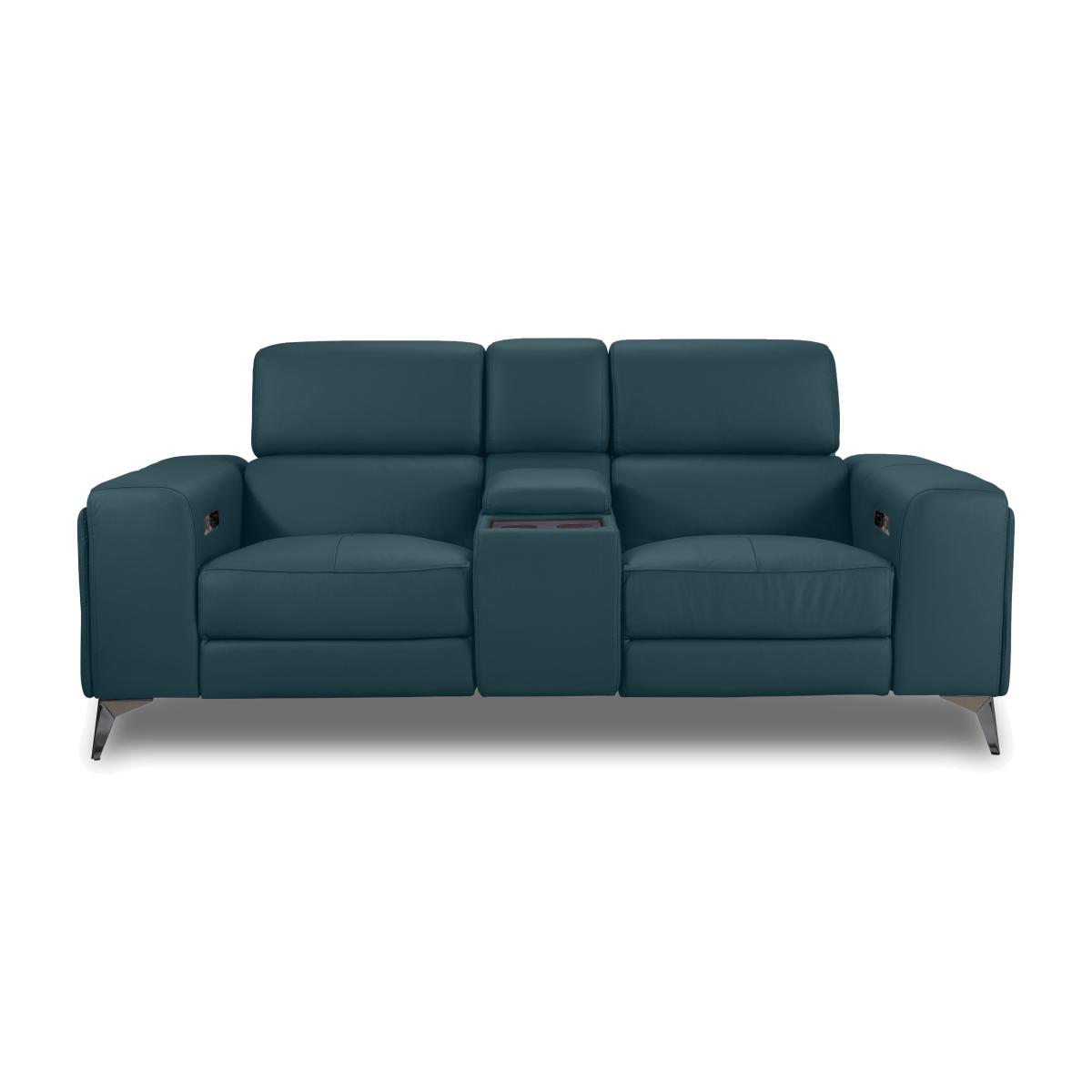 You’ll be wowed by the sofas, armchairs and footstools in our Action range – several times over. First, the look is beyond striking. With a bold modern silhouette, wide arms and metal legs with a black chrome-effect finish, these pieces are designed to stand out. And when you take a seat, you’ll be instantly impressed by the sprung seats, pocket spring seat cushioning and array of power features – power recliners, headrests and footrests and power-operated arm storage. Want more ways to relax? Bluetooth-connected media sofas have built-in speakers, massage units, wireless charging, USB ports and more. Available in 100% leather and fabric, the Action collection is handcrafted exclusively for Furniture Village. This fabulous 100% leather media sofa connects to your TV via Bluetooth and has built-in speakers for the full cinematic experience. You’ll love its power recliners, power headrests and power footrests. Why you'll love it Bring home the wow factor. High-tech relaxation, superior comfort, striking style. This media sofa connects via Bluetooth to your TV for a truly immersive experience. Built-in speakers let you play sound – with additional bass – and feel vibrations. Console includes wireless smartphone chargers that double as cup holders. Power up your comfort with power recliners, power elevating footrests and power headrests. With easy USB device charging. Ultra-modern design with wide arms and black chrome-effect metal legs. Made for box-set bingeing with sprung seats and pocket spring cushioning. Luxurious 100% leather upholstery in a choice of colours. Handcrafted exclusively for Furniture Village. This 2-seater leather power recliner media sofa is part of our Action range. What you need to know Medium comfort level. Seat suspension: zig zag springs. Seat cushioning: pocket spring and high-resilience foam. Seat cushioning is fixed. Back suspension: zig zag spring. Back cushioning: foam. Back cushioning is fixed. Arm cushioning: foam. Back is removable for ease of access. Please allow time for the recliner mechanism to ease. Minor gaps are necessary to ensure ease of motion and may be exaggerated depending on floor type. Leather has unique marks and characteristics with variance in colour and texture. Leather softens with use. Fixed seat and back cushions require smoothing and straightening regularly. To smooth and straighten fixed cushions, punch the back cushion’s top two corners and the seat cushion’s outer two corners, and pinch outwards. Please read our upholstery care guide for more advice.