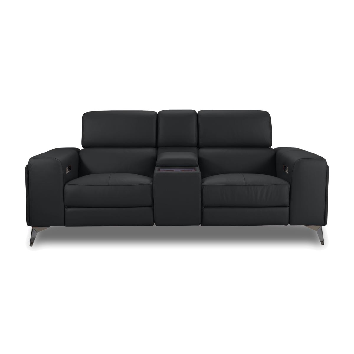 You’ll be wowed by the sofas, armchairs and footstools in our Action range – several times over. First, the look is beyond striking. With a bold modern silhouette, wide arms and metal legs with a black chrome-effect finish, these pieces are designed to stand out. And when you take a seat, you’ll be instantly impressed by the sprung seats, pocket spring seat cushioning and array of power features – power recliners, headrests and footrests and power-operated arm storage. Want more ways to relax? Bluetooth-connected media sofas have built-in speakers, massage units, wireless charging, USB ports and more. Available in 100% leather and fabric, the Action collection is handcrafted exclusively for Furniture Village. This fabulous 100% leather media sofa connects to your TV via Bluetooth and has built-in speakers for the full cinematic experience. You’ll love its power recliners, power headrests and power footrests. Why you'll love it Bring home the wow factor. High-tech relaxation, superior comfort, striking style. This media sofa connects via Bluetooth to your TV for a truly immersive experience. Built-in speakers let you play sound – with additional bass – and feel vibrations. Console includes wireless smartphone chargers that double as cup holders. Power up your comfort with power recliners, power elevating footrests and power headrests. With easy USB device charging. Ultra-modern design with wide arms and black chrome-effect metal legs. Made for box-set bingeing with sprung seats and pocket spring cushioning. Luxurious 100% leather upholstery in a choice of colours. Handcrafted exclusively for Furniture Village. This 2-seater leather power recliner media sofa is part of our Action range. What you need to know Medium comfort level. Seat suspension: zig zag springs. Seat cushioning: pocket spring and high-resilience foam. Seat cushioning is fixed. Back suspension: zig zag spring. Back cushioning: foam. Back cushioning is fixed. Arm cushioning: foam. Back is removable for ease of access. Please allow time for the recliner mechanism to ease. Minor gaps are necessary to ensure ease of motion and may be exaggerated depending on floor type. Leather has unique marks and characteristics with variance in colour and texture. Leather softens with use. Fixed seat and back cushions require smoothing and straightening regularly. To smooth and straighten fixed cushions, punch the back cushion’s top two corners and the seat cushion’s outer two corners, and pinch outwards. Please read our upholstery care guide for more advice.