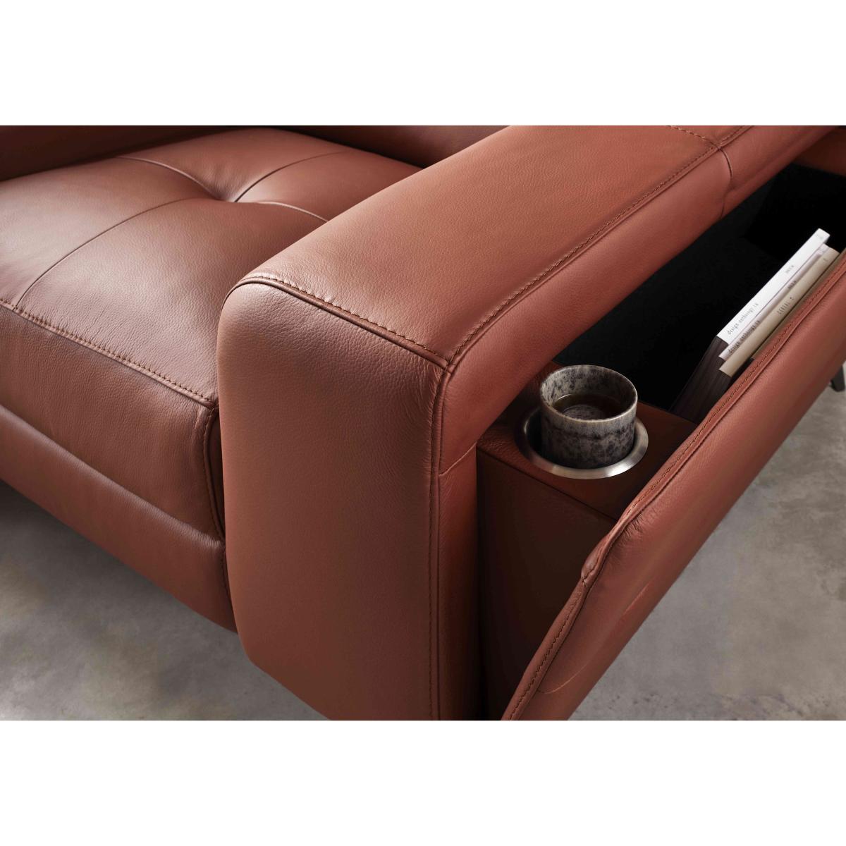 You’ll be wowed by the sofas, armchairs and footstools in our Action range – several times over. First, the look is beyond striking. With a bold modern silhouette, wide arms and metal legs with a black chrome-effect finish, these pieces are designed to stand out. And when you take a seat, you’ll be instantly impressed by the sprung seats, pocket spring seat cushioning and array of power features – power recliners, headrests and footrests and power-operated arm storage. Want more ways to relax? Bluetooth-connected media sofas have built-in speakers, massage units, wireless charging, USB ports and more. Available in 100% leather and fabric, the Action collection is handcrafted exclusively for Furniture Village. Relax and recline with this all-power 100% leather armchair. You’ll love its cool modern style, pocket spring comfort and the handy power storage arm. Why you'll love it Bring home the wow factor. High-tech relaxation, superior comfort, striking style. Power up your comfort with a power recliner, power elevating footrest and power headrest. Unique power-operated arm opens outwards to reveal a handy storage space. With easy USB device charging. Ultra-modern design with wide arms and black chrome-effect metal legs. Made for box-set bingeing with sprung seats and pocket spring cushioning. Luxurious 100% leather upholstery in a choice of colours. Handcrafted exclusively for Furniture Village. This leather power recliner armchair with power storage arm is part of our Action range. What you need to know Medium comfort level. Seat suspension: zig zag springs. Seat cushioning: pocket spring and high-resilience foam. Seat cushioning is fixed. Back suspension: zig zag spring. Back cushioning: foam. Back cushioning is fixed. Arm cushioning: foam. Back is removable for ease of access. Please allow time for the recliner mechanism to ease. Minor gaps are necessary to ensure ease of motion and may be exaggerated depending on floor type. Leather has unique marks and characteristics with variance in colour and texture. Leather softens with use. Fixed seat and back cushions require smoothing and straightening regularly. To smooth and straighten fixed cushions, punch the back cushion’s top two corners and the seat cushion’s outer two corners, and pinch outwards. Please read our upholstery care guide for more advice.