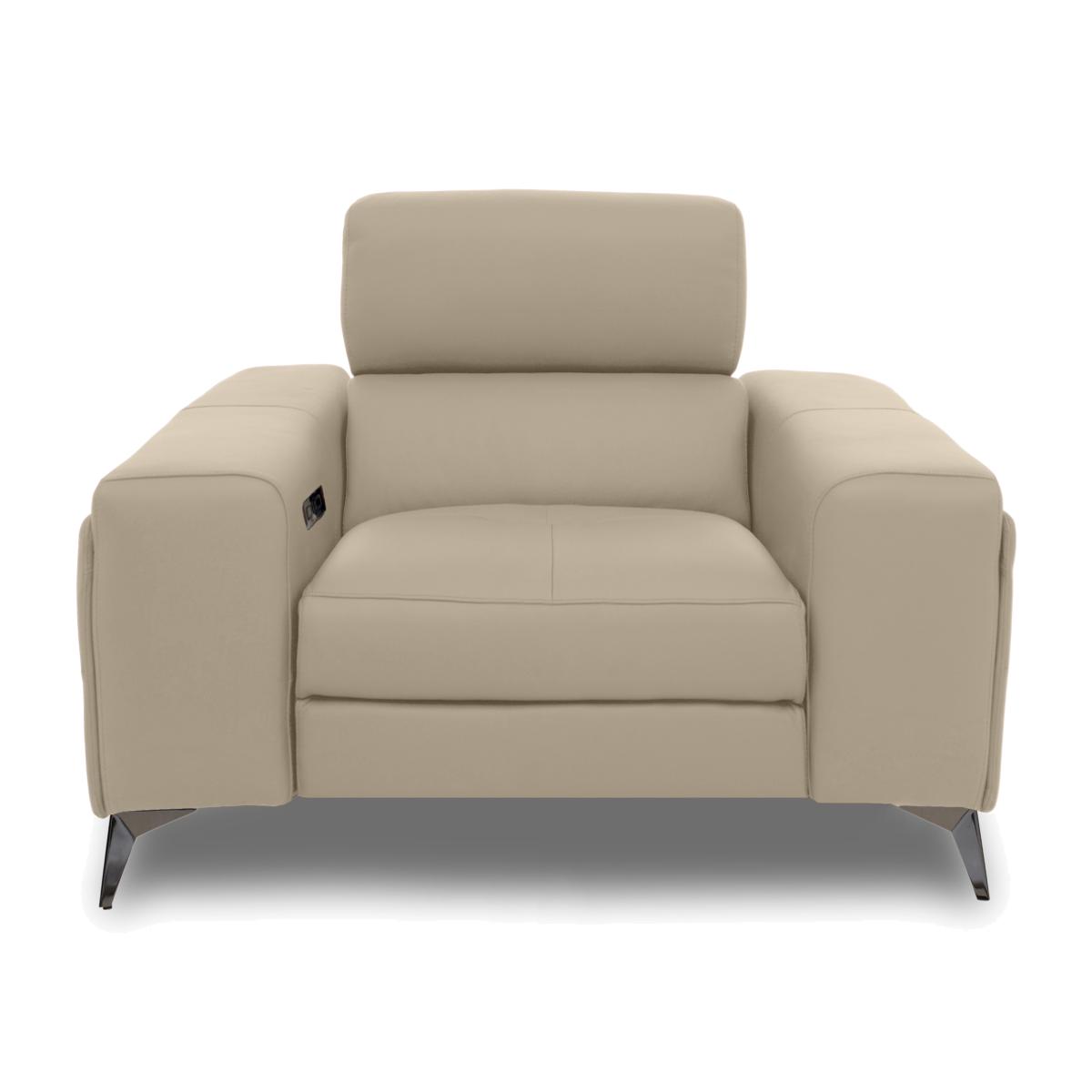 You’ll be wowed by the sofas, armchairs and footstools in our Action range – several times over. First, the look is beyond striking. With a bold modern silhouette, wide arms and metal legs with a black chrome-effect finish, these pieces are designed to stand out. And when you take a seat, you’ll be instantly impressed by the sprung seats, pocket spring seat cushioning and array of power features – power recliners, headrests and footrests and power-operated arm storage. Want more ways to relax? Bluetooth-connected media sofas have built-in speakers, massage units, wireless charging, USB ports and more. Available in 100% leather and fabric, the Action collection is handcrafted exclusively for Furniture Village. Enjoy every power comfort feature – power recliner, power headrest and power footrest – with this ultra-stylish modern leather armchair. Only at Furniture Village. Why you'll love it Bring home the wow factor. High-tech relaxation, superior comfort, striking style. Power up your comfort with a power recliner, power elevating footrest and power headrest. With easy USB device charging. Ultra-modern design with wide arms and black chrome-effect metal legs. Made for box-set bingeing with sprung seats and pocket spring cushioning. Luxurious 100% leather upholstery in a choice of colours. Handcrafted exclusively for Furniture Village. This leather power recliner armchair is part of our Action range. What you need to know Medium comfort level. Seat suspension: zig zag springs. Seat cushioning: pocket spring and high-resilience foam. Seat cushioning is fixed. Back suspension: zig zag spring. Back cushioning: foam. Back cushioning is fixed. Arm cushioning: foam. Back is removable for ease of access. Please allow time for the recliner mechanism to ease. Minor gaps are necessary to ensure ease of motion and may be exaggerated depending on floor type. Leather has unique marks and characteristics with variance in colour and texture. Leather softens with use. Fixed seat and back cushions require smoothing and straightening regularly. To smooth and straighten fixed cushions, punch the back cushion’s top two corners and the seat cushion’s outer two corners, and pinch outwards. Please read our upholstery care guide for more advice.