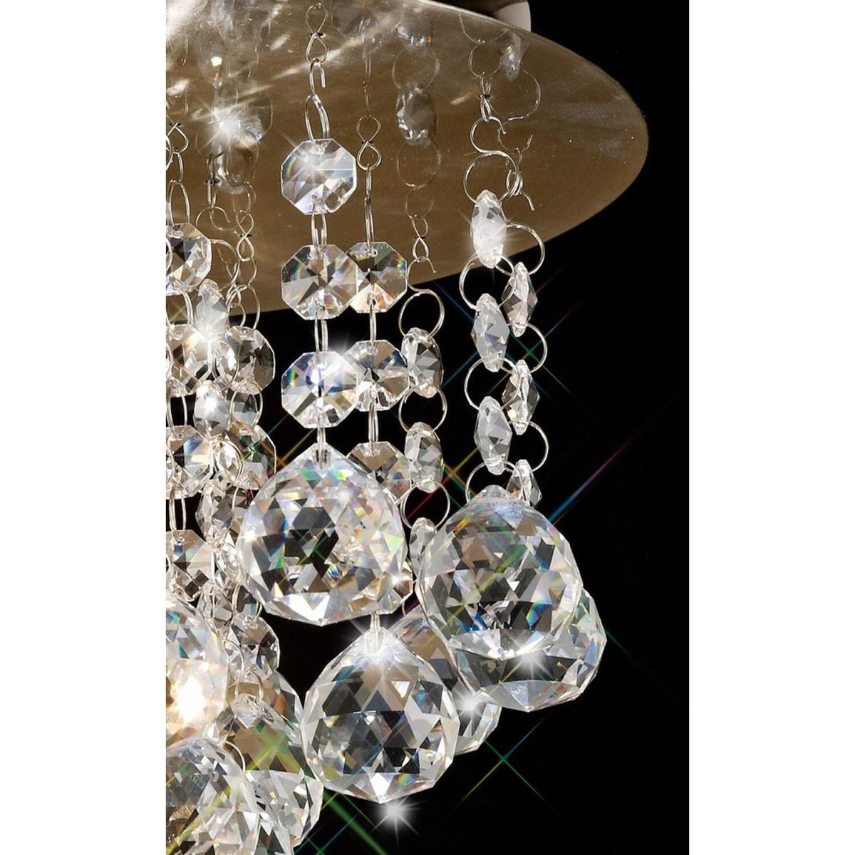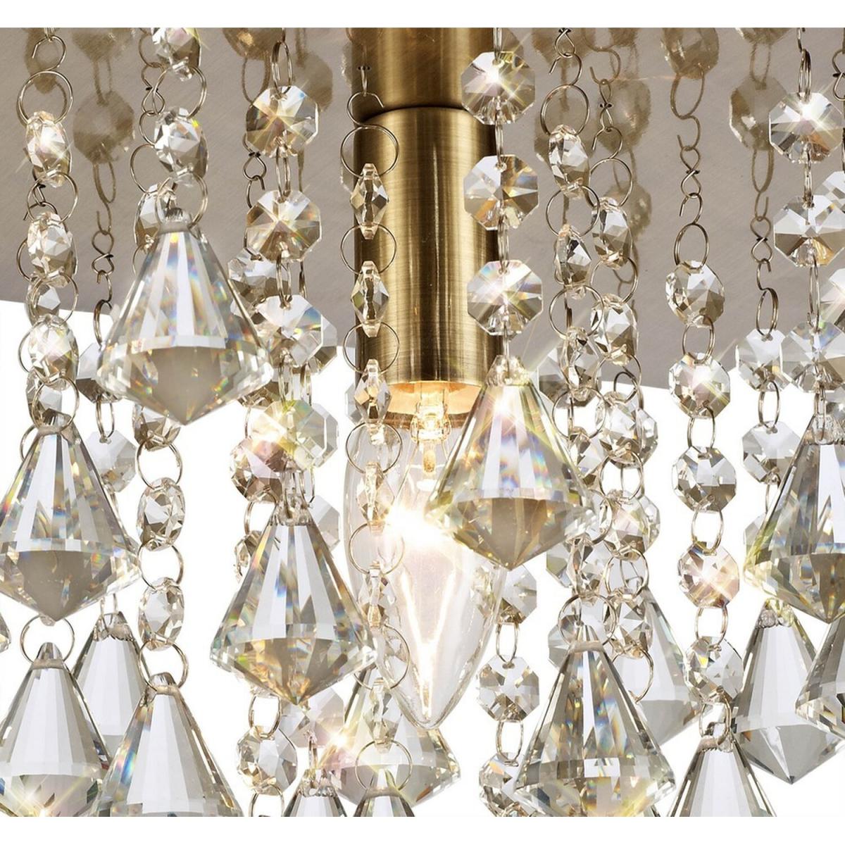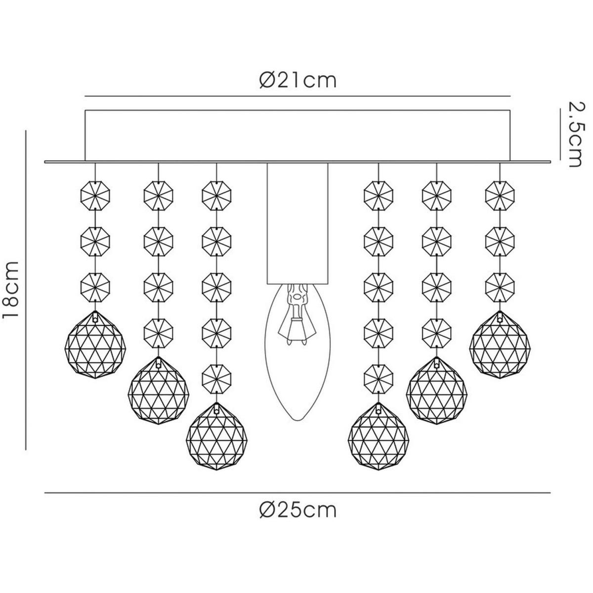 This is a classically stunning range of flush ceiling lights and complementary wall lamps, enabling the consumer to add sparkle and class to any low ceiling room. The round and square polished chrome frames are each available in 3 different sizes and use crystal components to compliment the shape of the ceiling plate. The round frame hangs strands of clear crystal buttons with a crystal sphere drop whilst the square frames swap the spheres for the more appopriate clear crystal prisms. Both designs are available in a 1, 4 and 5 light using E14 lampholders that take maximum 60W lamps.