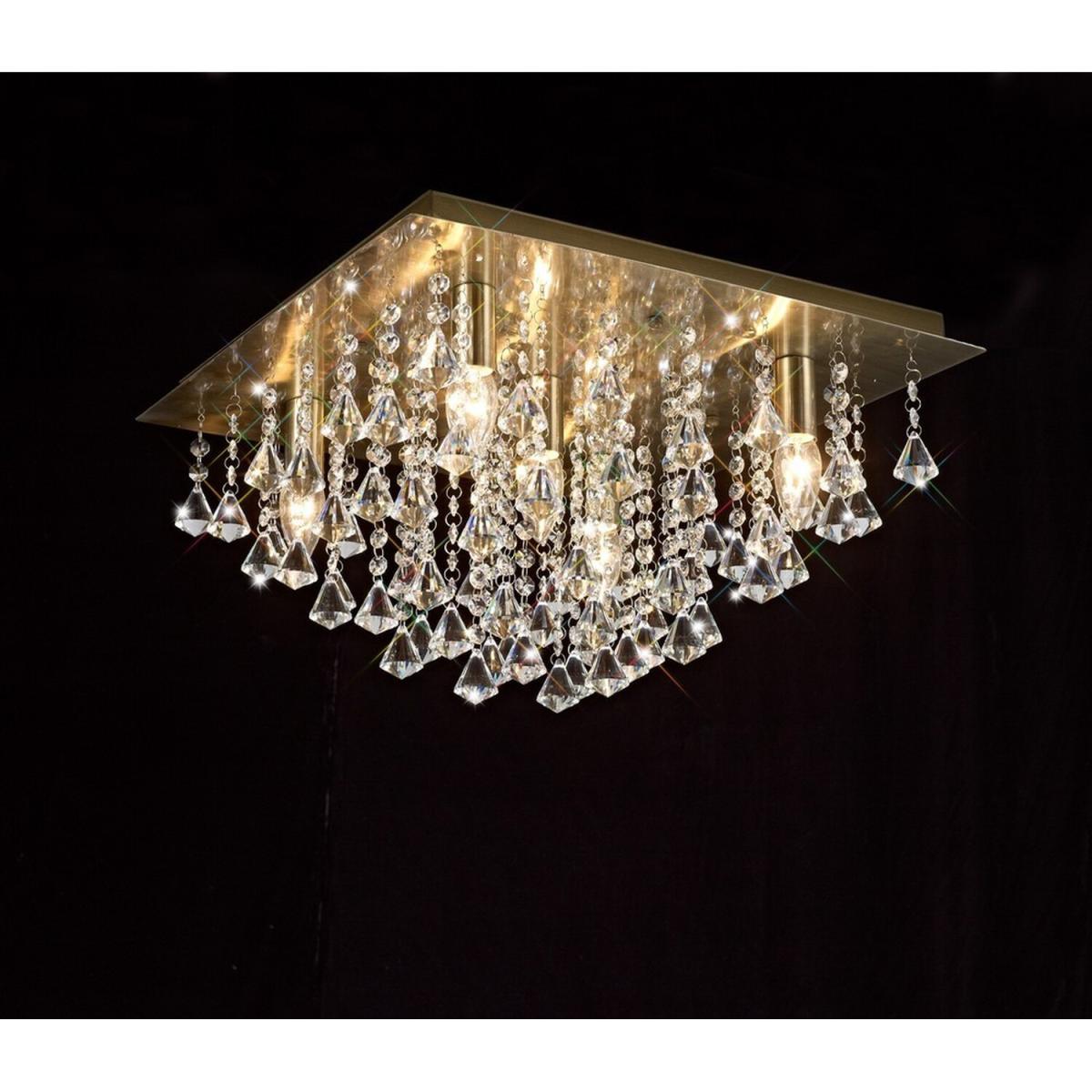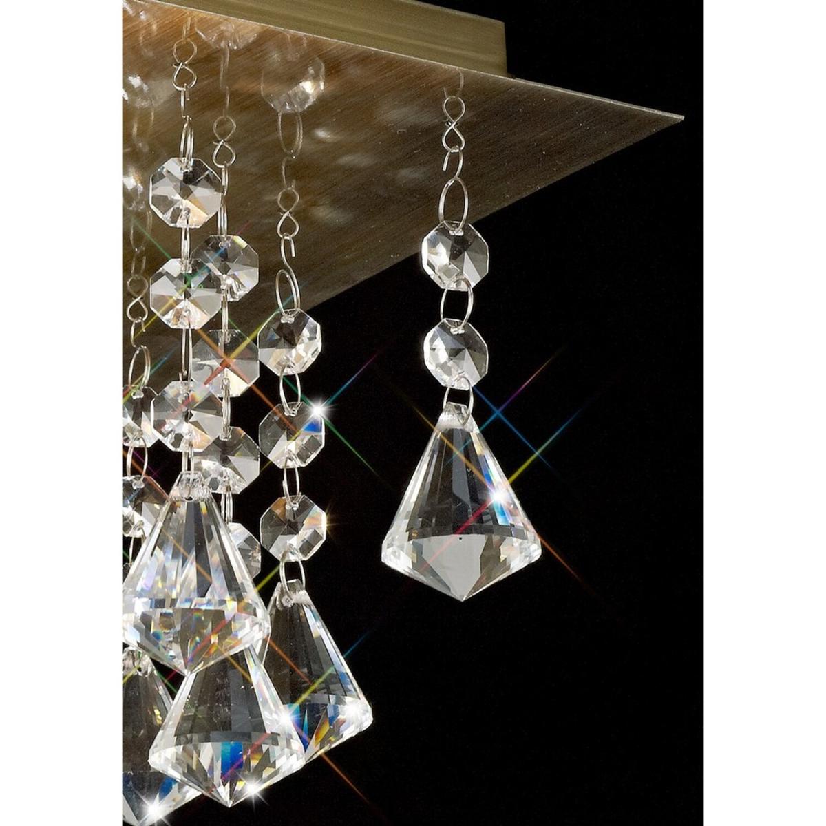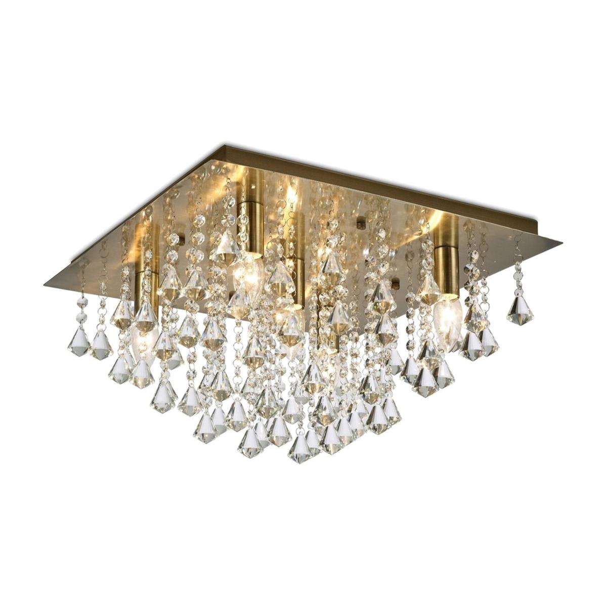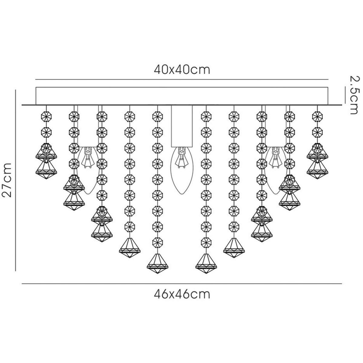 This is a classically stunning range of flush ceiling lights and complementary wall lamps, enabling the consumer to add sparkle and class to any low ceiling room. The round and square polished chrome frames are each available in 3 different sizes and use crystal components to compliment the shape of the ceiling plate. The round frame hangs strands of clear crystal buttons with a crystal sphere drop whilst the square frames swap the spheres for the more appopriate clear crystal prisms. Both designs are available in a 1, 4 and 5 light using E14 lampholders that take maximum 60W lamps.