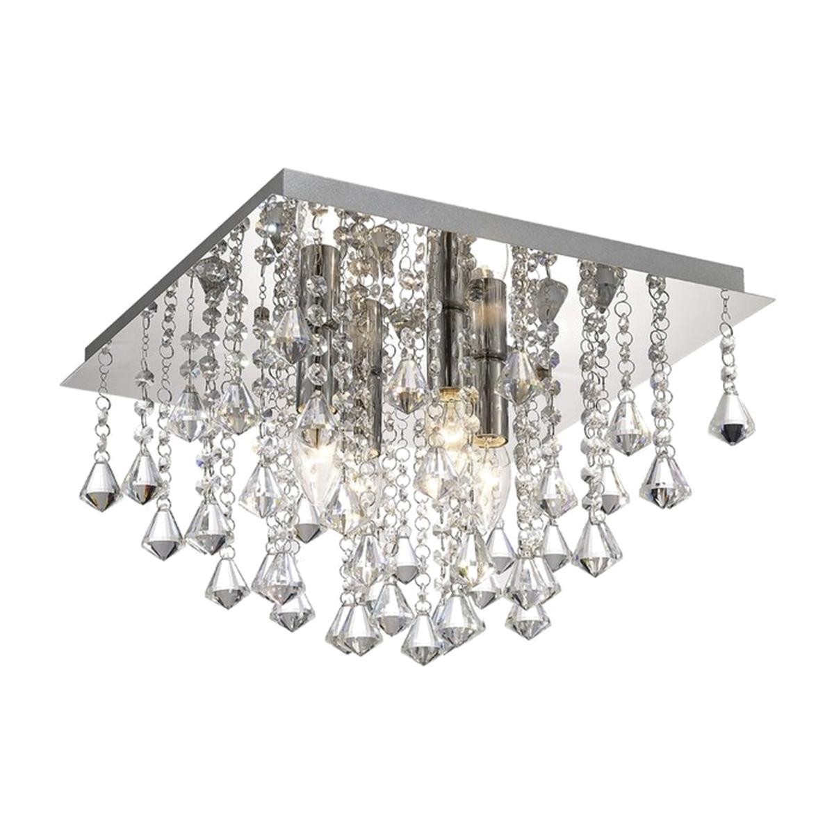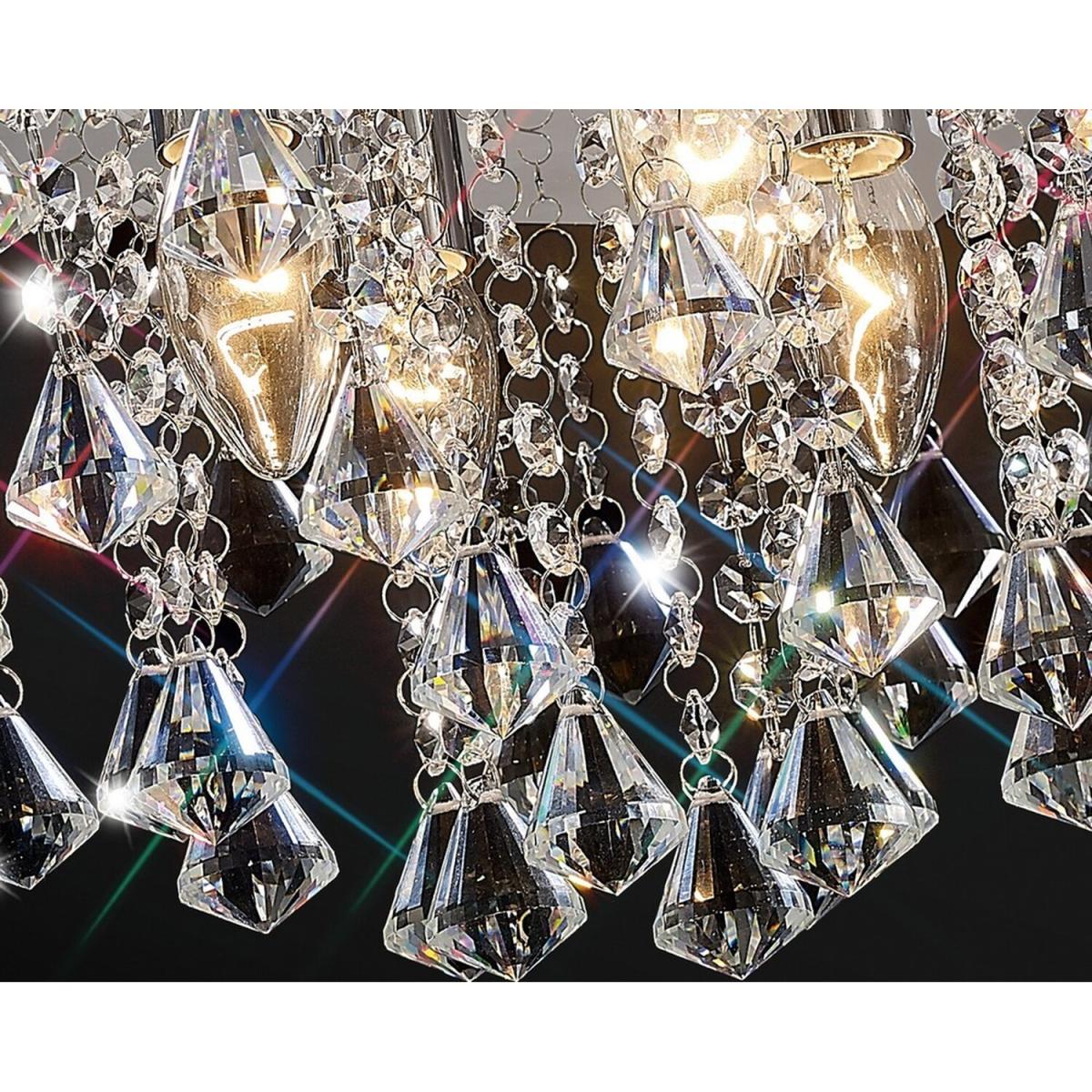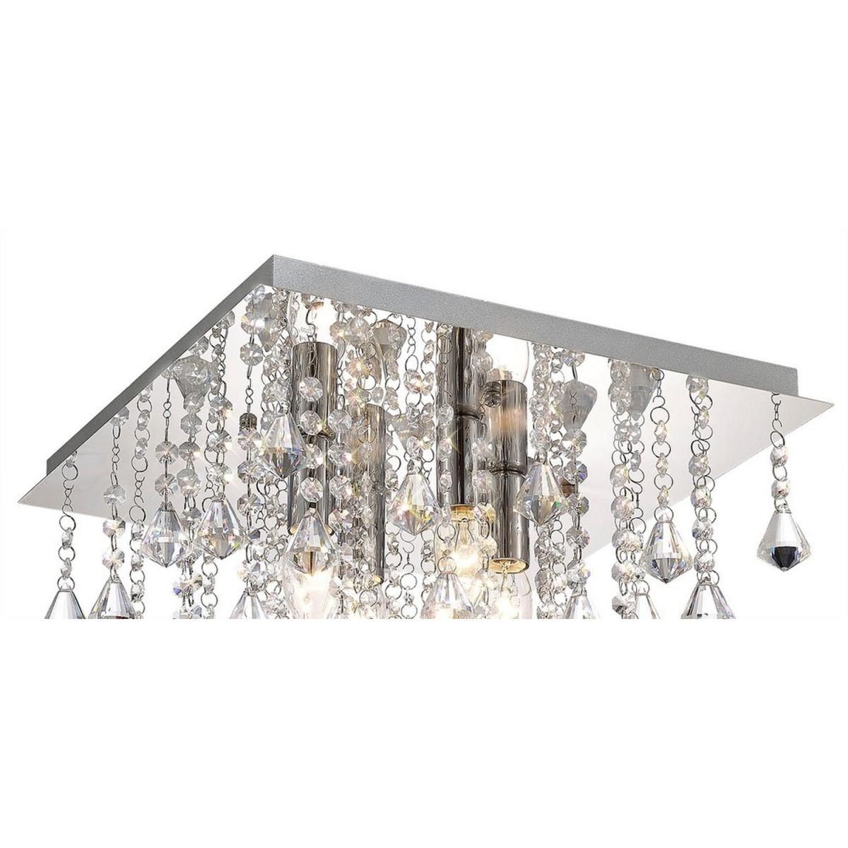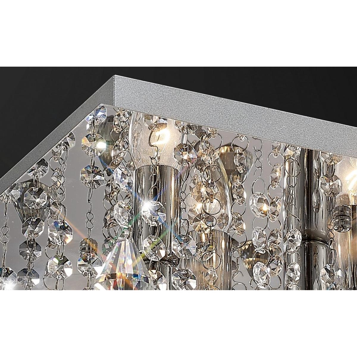 This is a classically stunning range of flush ceiling lights and complementary wall lamps, enabling the consumer to add sparkle and class to any low ceiling room. The round and square polished chrome frames are each available in 3 different sizes and use crystal components to compliment the shape of the ceiling plate. The round frame hangs strands of clear crystal buttons with a crystal sphere drop whilst the square frames swap the spheres for the more appropriate clear crystal prisms. Both designs are available in a 1, 4 and 5 light using E14 lamp holders that take maximum 60W lamps.