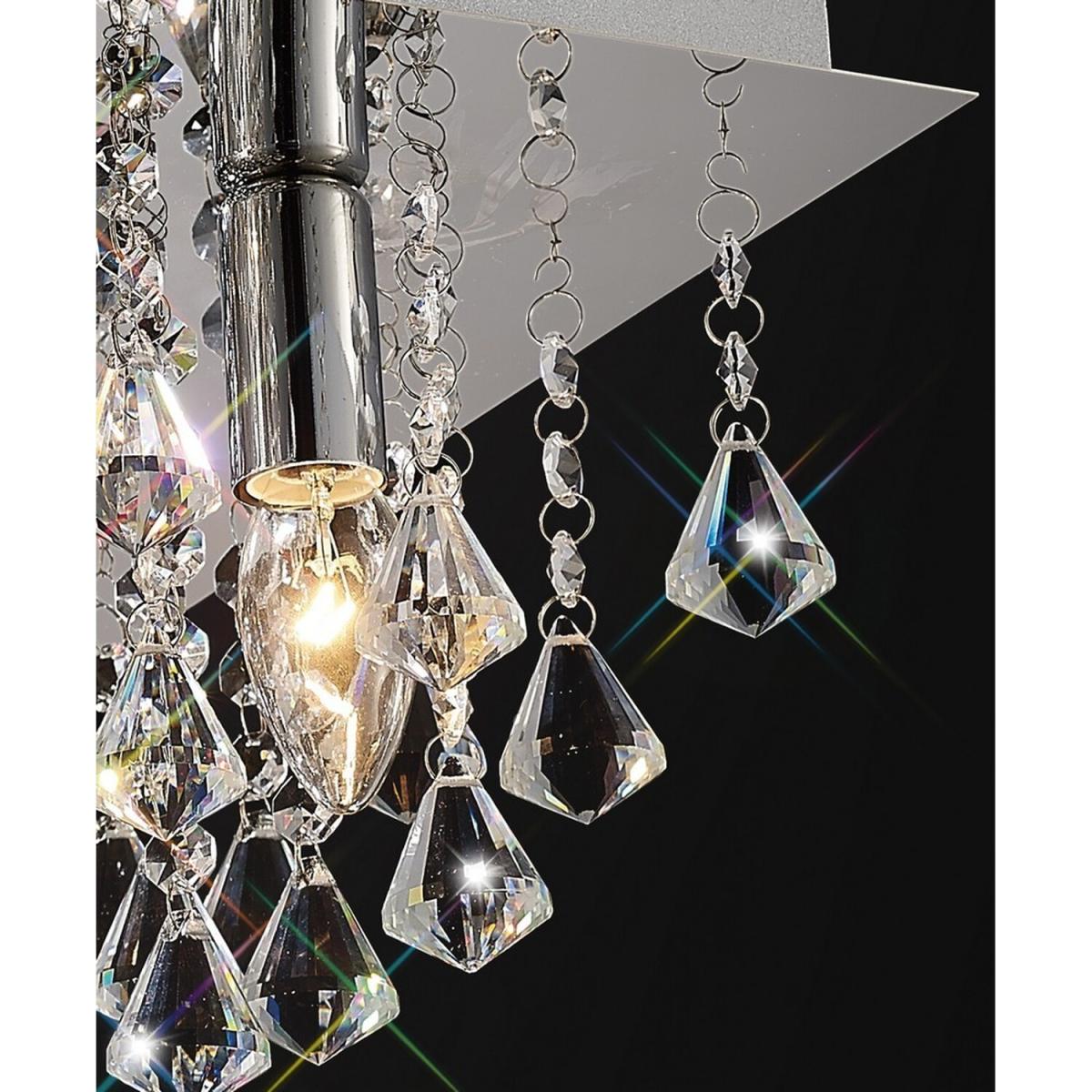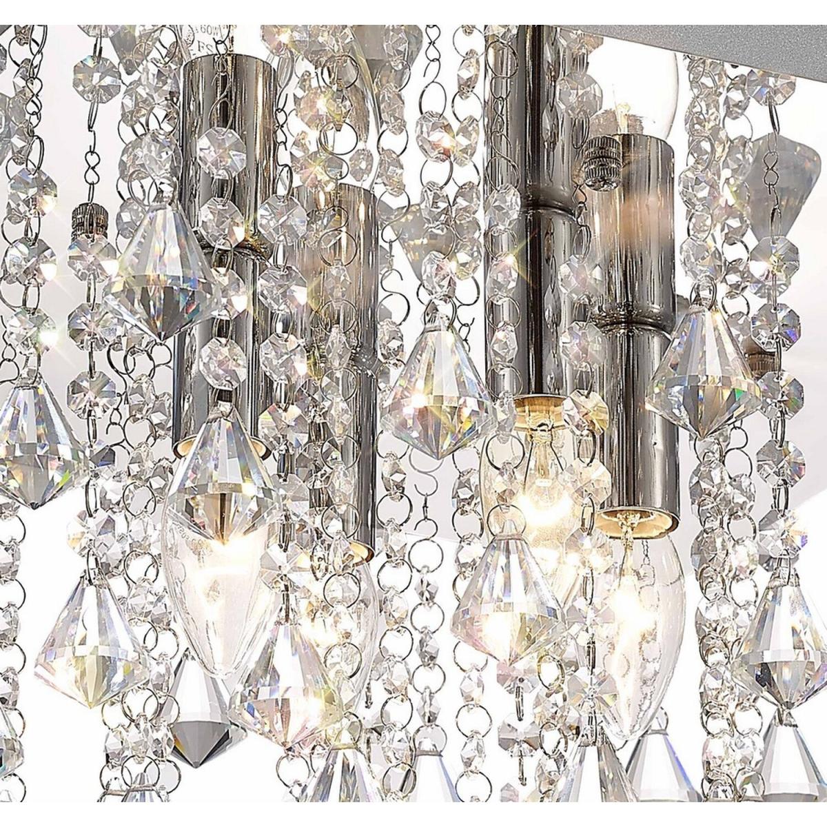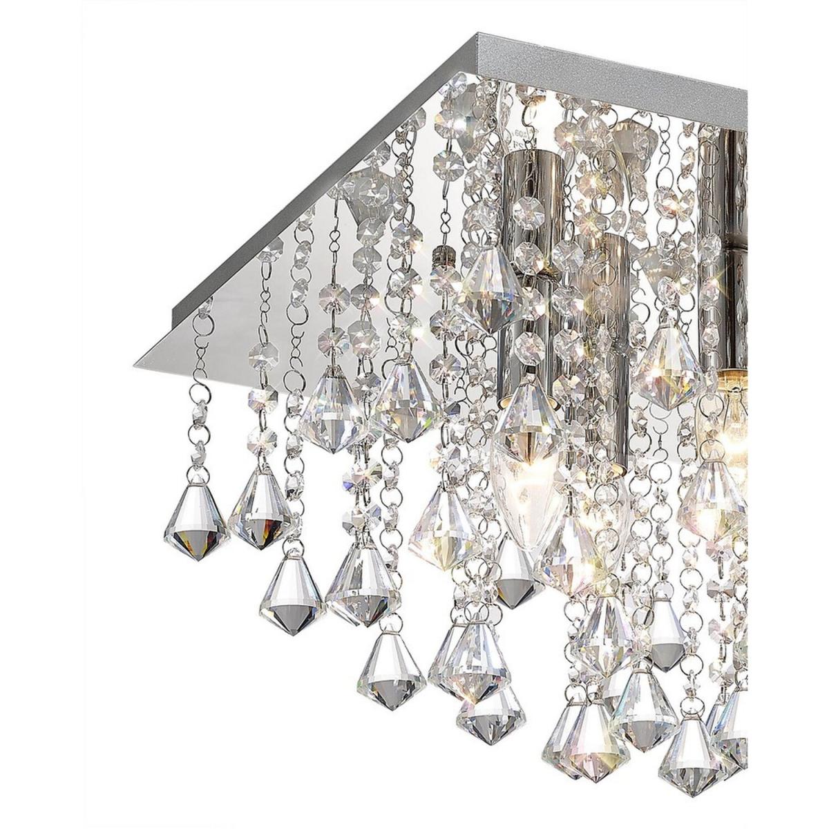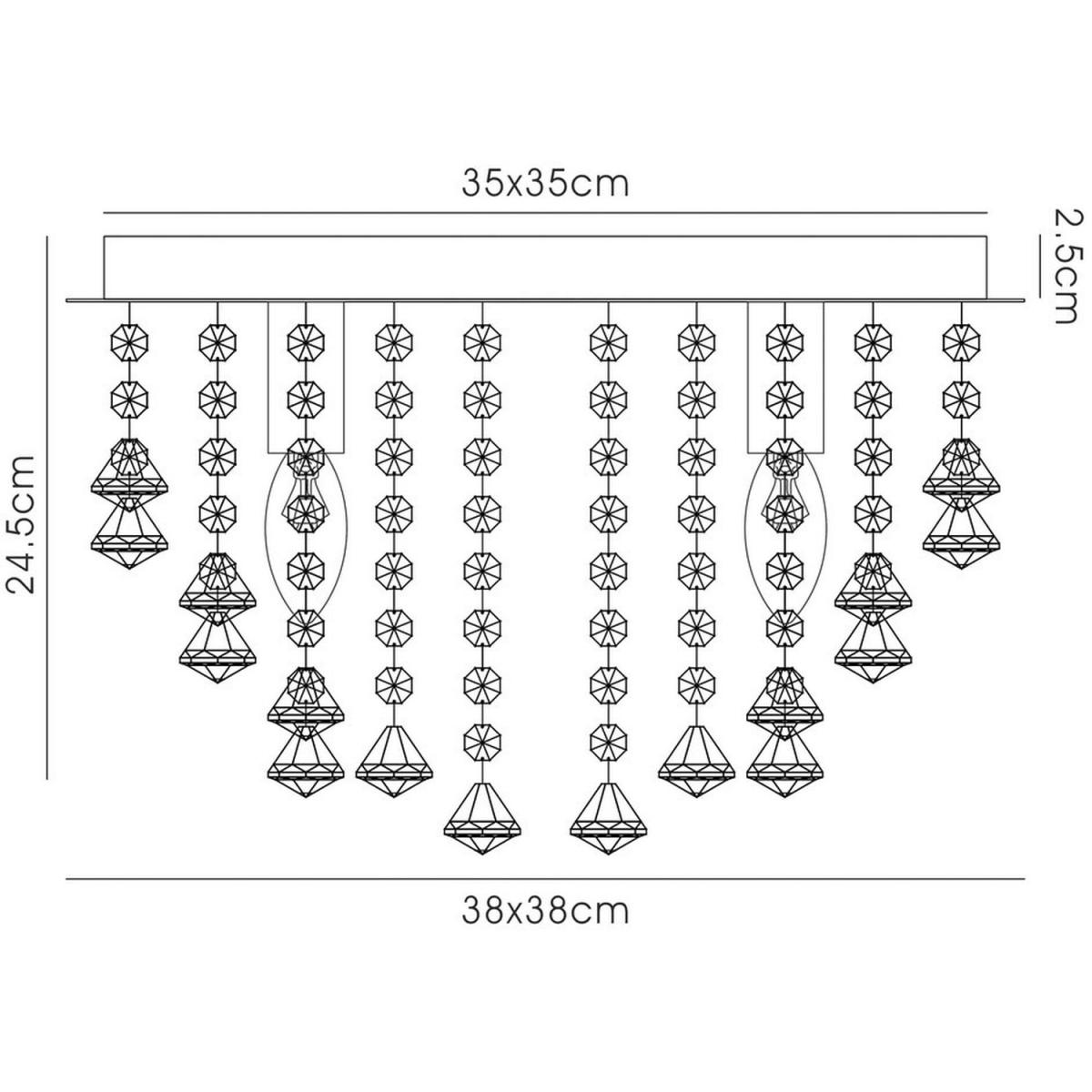 This is a classically stunning range of flush ceiling lights and complementary wall lamps, enabling the consumer to add sparkle and class to any low ceiling room. The round and square polished chrome frames are each available in 3 different sizes and use crystal components to compliment the shape of the ceiling plate. The round frame hangs strands of clear crystal buttons with a crystal sphere drop whilst the square frames swap the spheres for the more appropriate clear crystal prisms. Both designs are available in a 1, 4 and 5 light using E14 lamp holders that take maximum 60W lamps.
