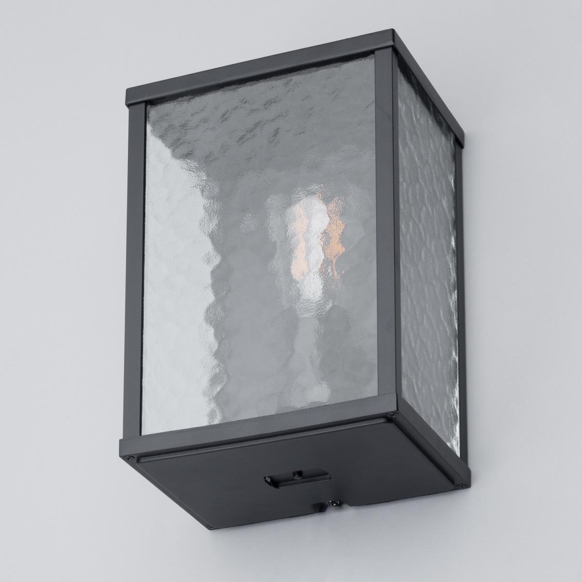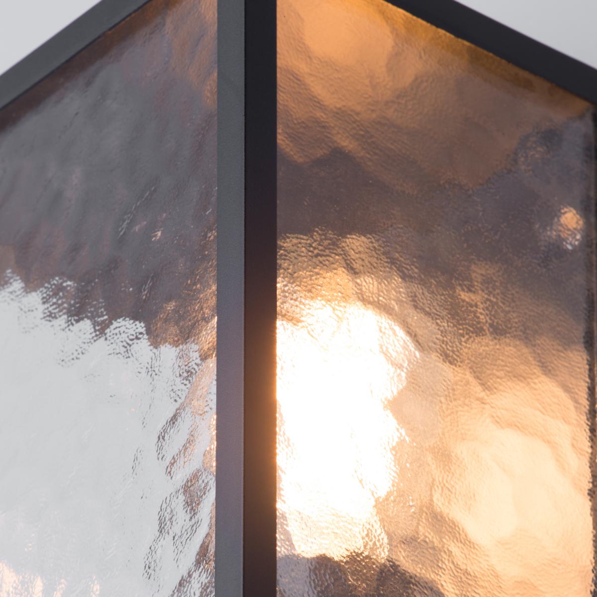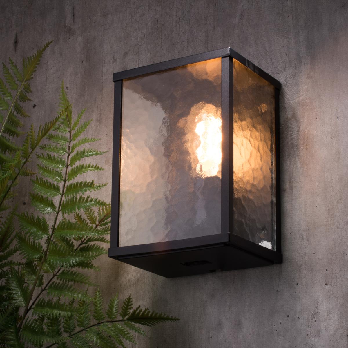 Add some industrial flair to the front of your home with the Acton Outdoor Wall Light with Frosted Glass Panels in Black. The frosted glass panels of this IP44 rated light diffuses a gentle glow of light. The black finish of this wall lantern is a modern accent for any patio area.