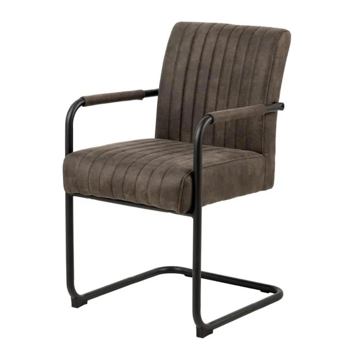 Bringing retro vibes to the table, this dining chair with armrests will be a cool addition to any home. The sturdy black swing metal base is matched with an anthracite microfiber fabric with a special coating for that raw look. As the seat is made with pocket springs you will also stay comfortable for the after-dinner talk. Sturdy, comfortable and cool - what more could you ask for? Sold Individually. Dimensions: Height: 84.5cm Width: 50.5cm Depth: 64.5cm All screens vary in colour reproduction and whilst every effort has been made to display the colour as accurately as possible it is for guidance only.