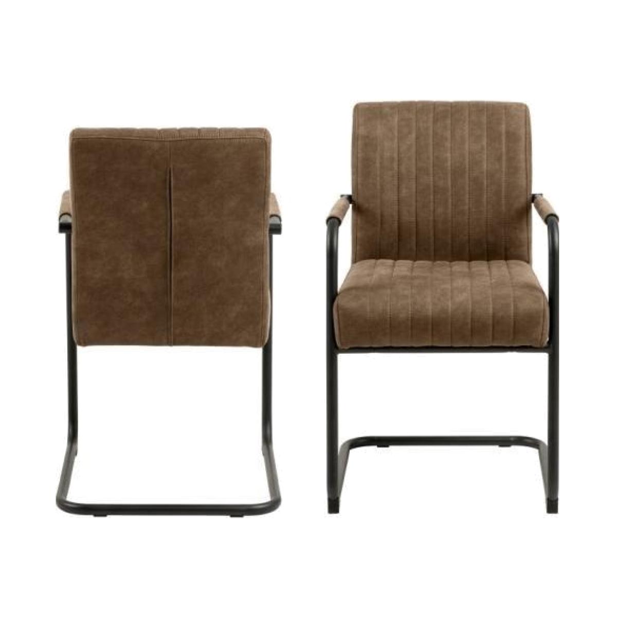 Bringing retro vibes to the table, this dining chair with armrests will be a cool addition to any home. The sturdy black swing metal base is matched with a light brown microfiber fabric with a special coating for that raw look. As the seat is made with pocket springs you will also stay comfortable for the after-dinner talk. Sturdy, comfortable and cool what more could you ask for? Width: 50.5 cm Depth: 64.5 cm Height: 84.5 cm All screens vary in colour reproduction and whilst every effort has been made to display the colour as accurately as possible it is for guidance only.