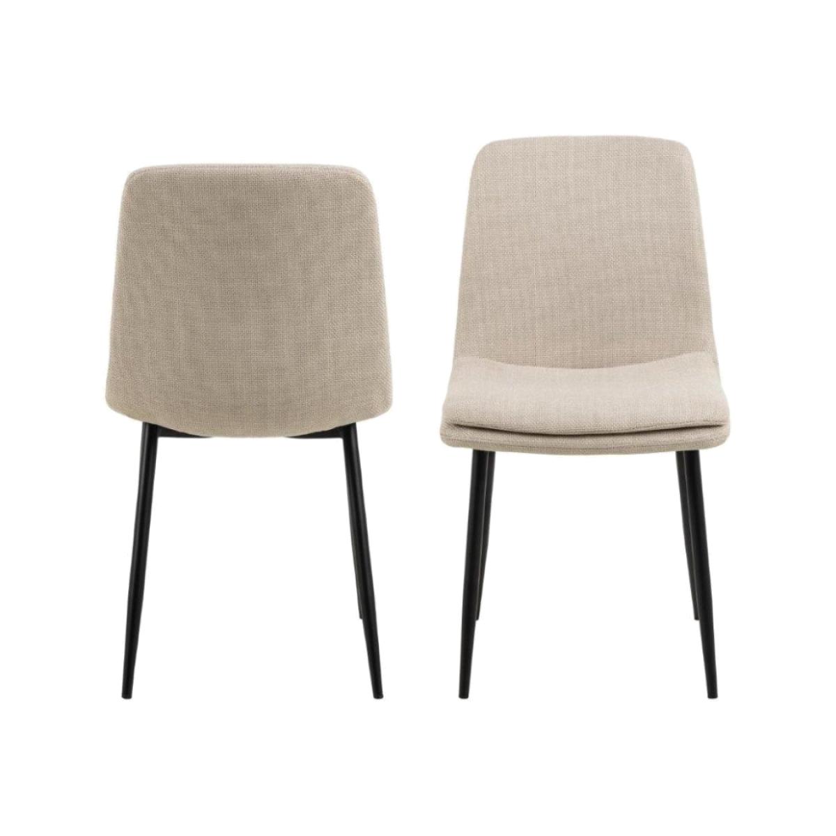 A simple silhouette speaks for itself but wrap it in beige fabric and you get a modern take on such a classic. The two-tone effect of the cover increases the depth of the design. Supported by slim black metal legs, this modern chair is just as versatile as it is elegant. So, are you ready to sit down and get comfortable? Width: 46 cm Depth: 55 cm Height: 85.5 cm All screens vary in colour reproduction and whilst every effort has been made to display the colour as accurately as possible it is for guidance only.