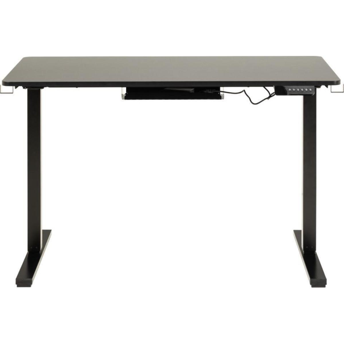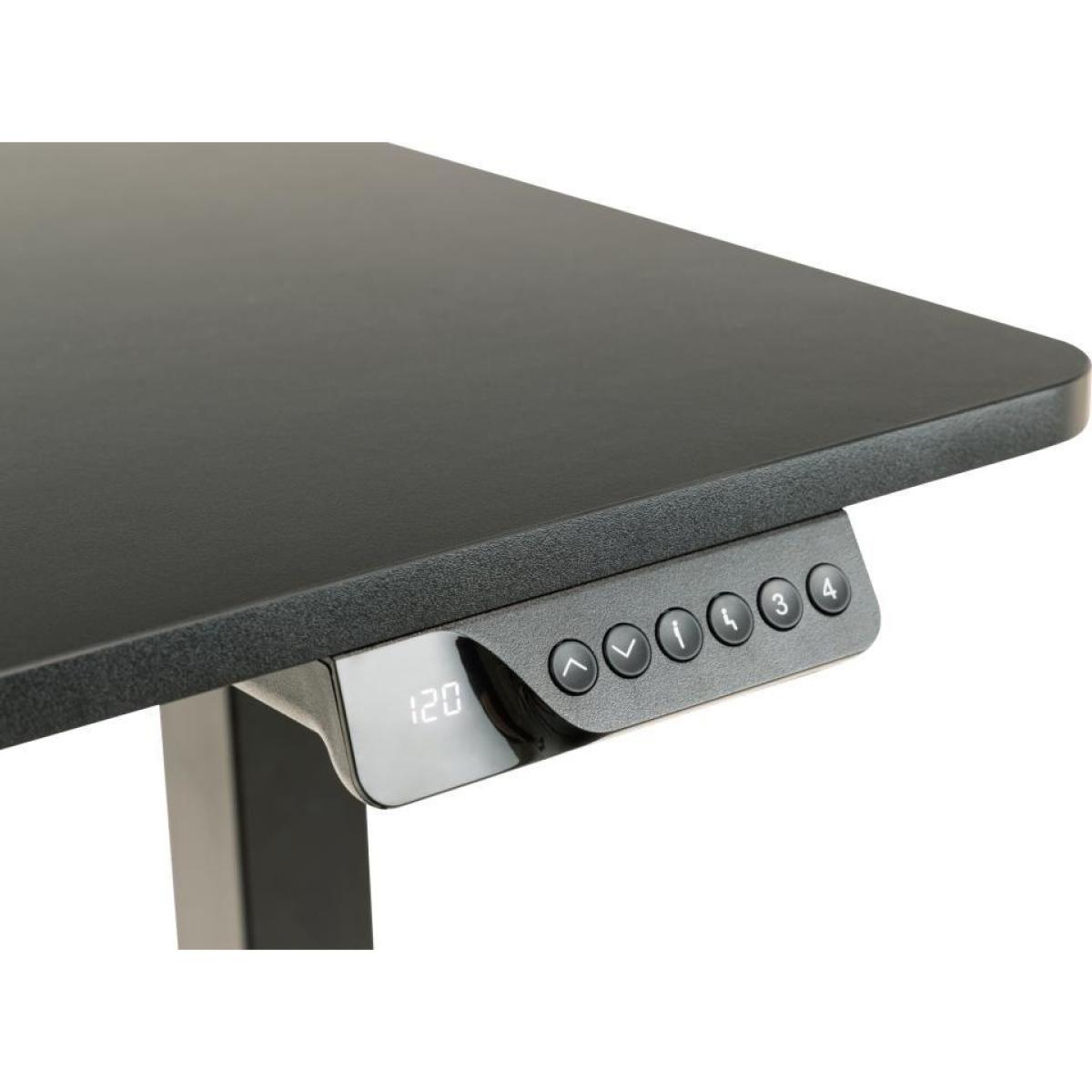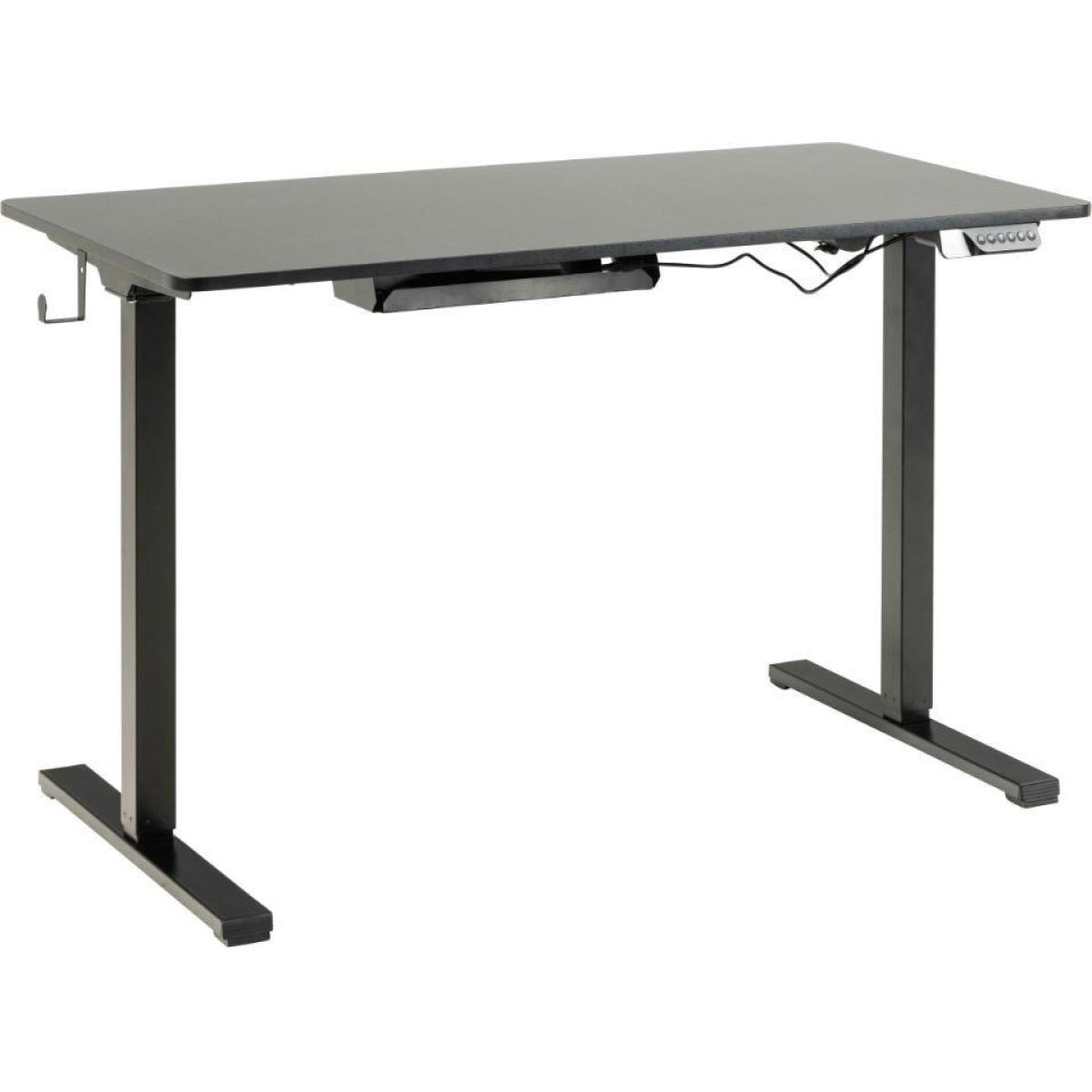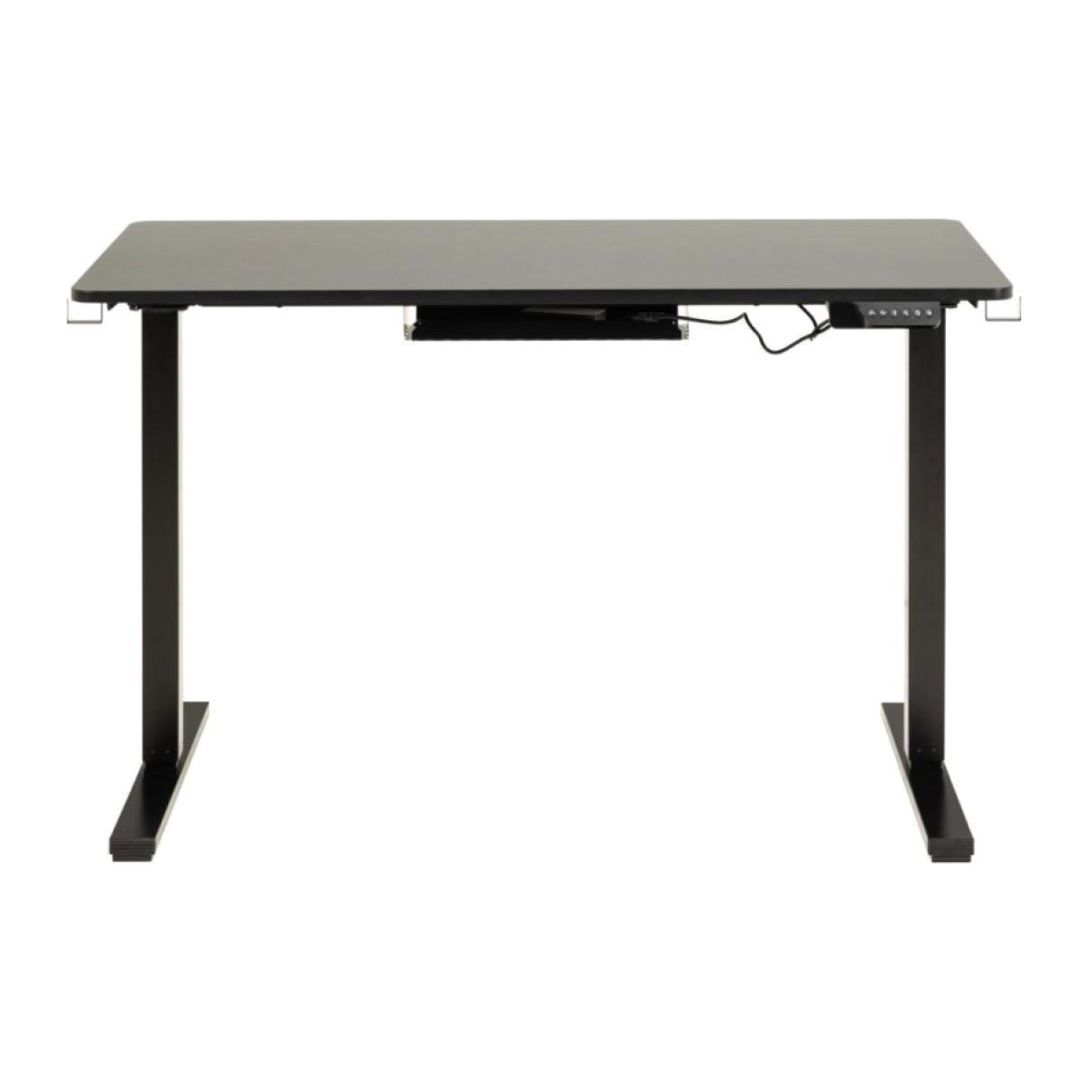 This black desk features electric adjustment so you can stand up, sit down or everything in between. With 4 preset levels, the desk can remember your favourite heights. A little screen on side of the desk shows the exact height of the desk. This desk has everything you need with USB-C, wire management, headset hangers, C and G plugs and safety precautions to stop the table from going up or down if something is in the way. Width: 120 cm Depth: 60 cm Height: 73 cm All screens vary in colour reproduction and whilst every effort has been made to display the colour as accurately as possible it is for guidance only.