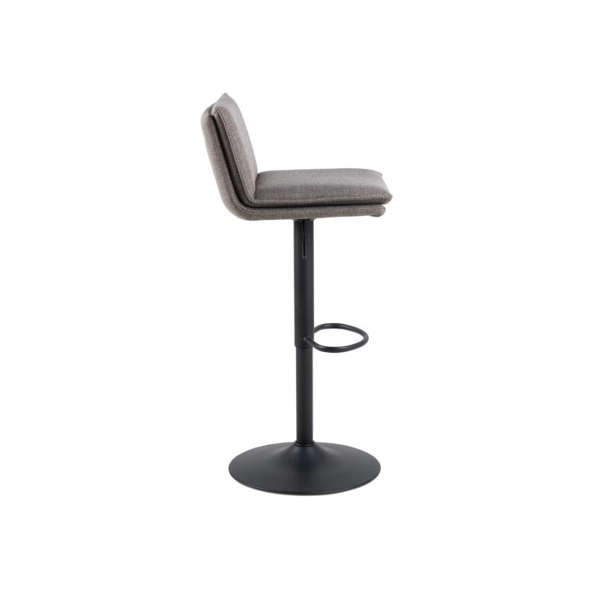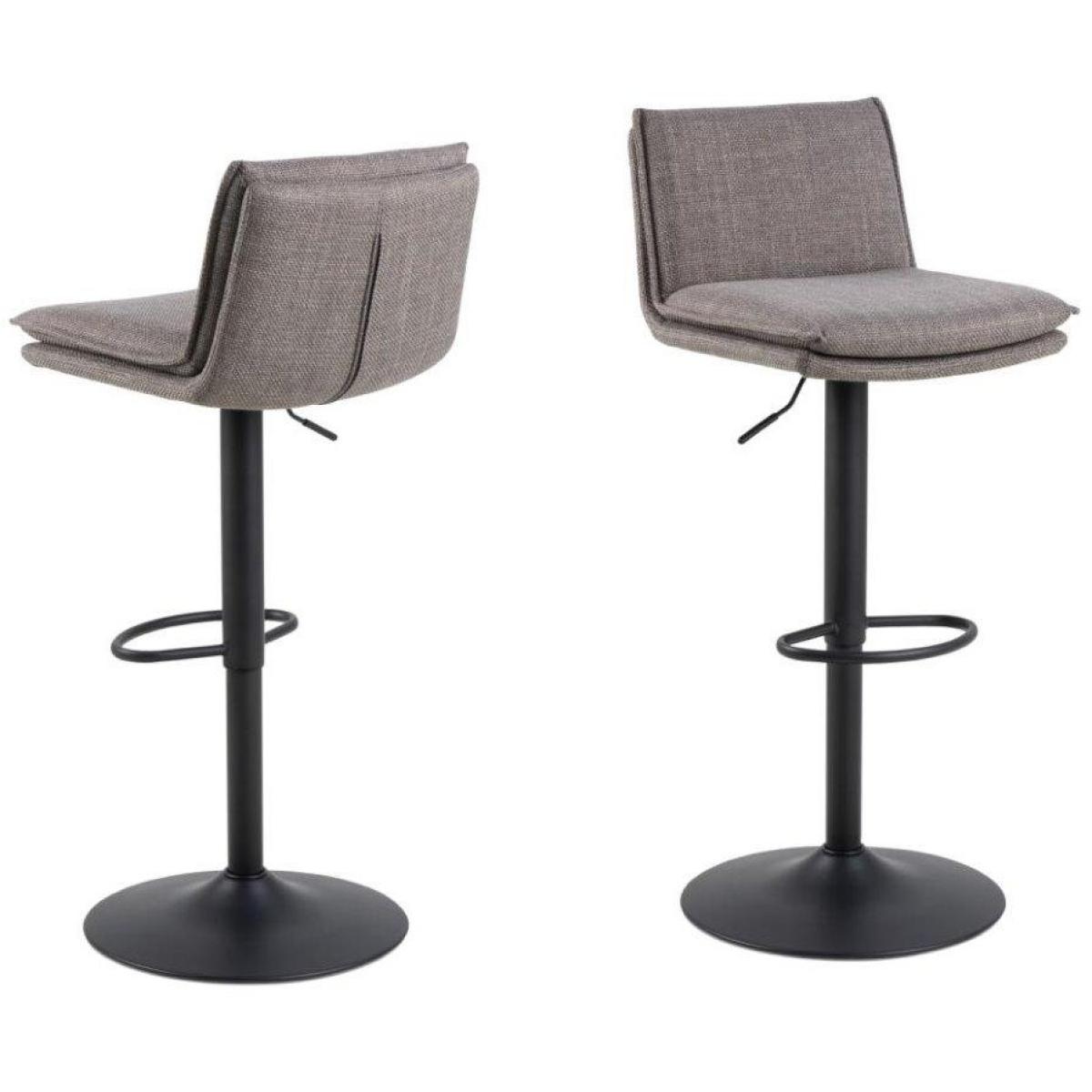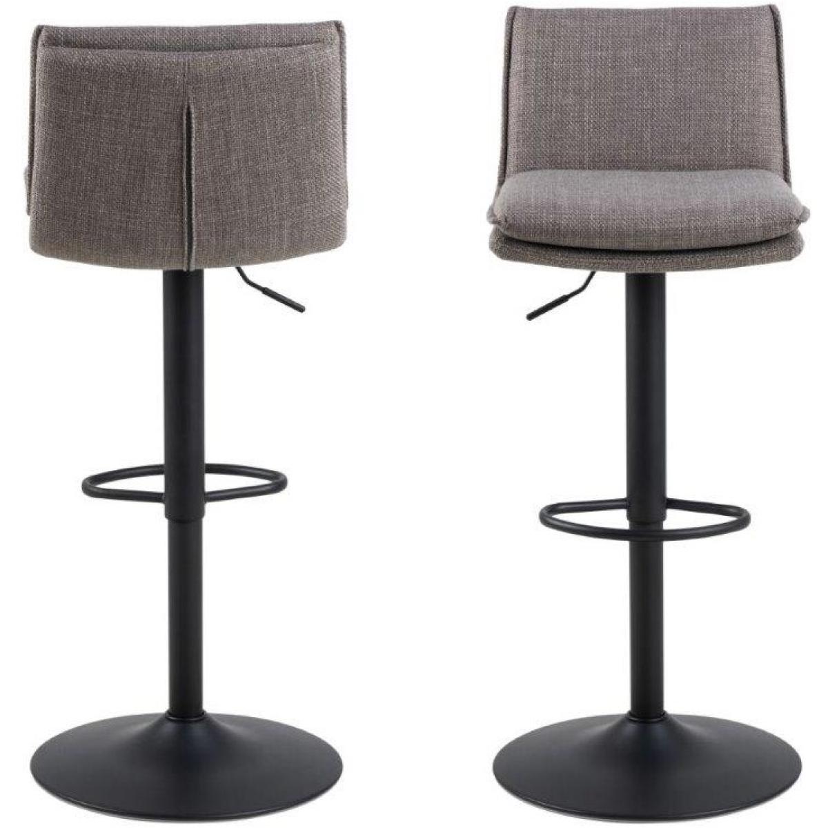With a classic silhouette, this bar stool is perfect for morning coffee or evening drinks. You get an elegant bar stool with some nice details just notice the French stitching. The seat, which is almost shaped in one piece, is upholstered in a light grey-brown fabric with a two-tone effect. The rough powder coated metal trumpet base can be adjusted to fit your preferred height. Width: 44 cm Depth: 53 cm Height: 107 cm All screens vary in colour reproduction and whilst every effort has been made to display the colour as accurately as possible it is for guidance only.