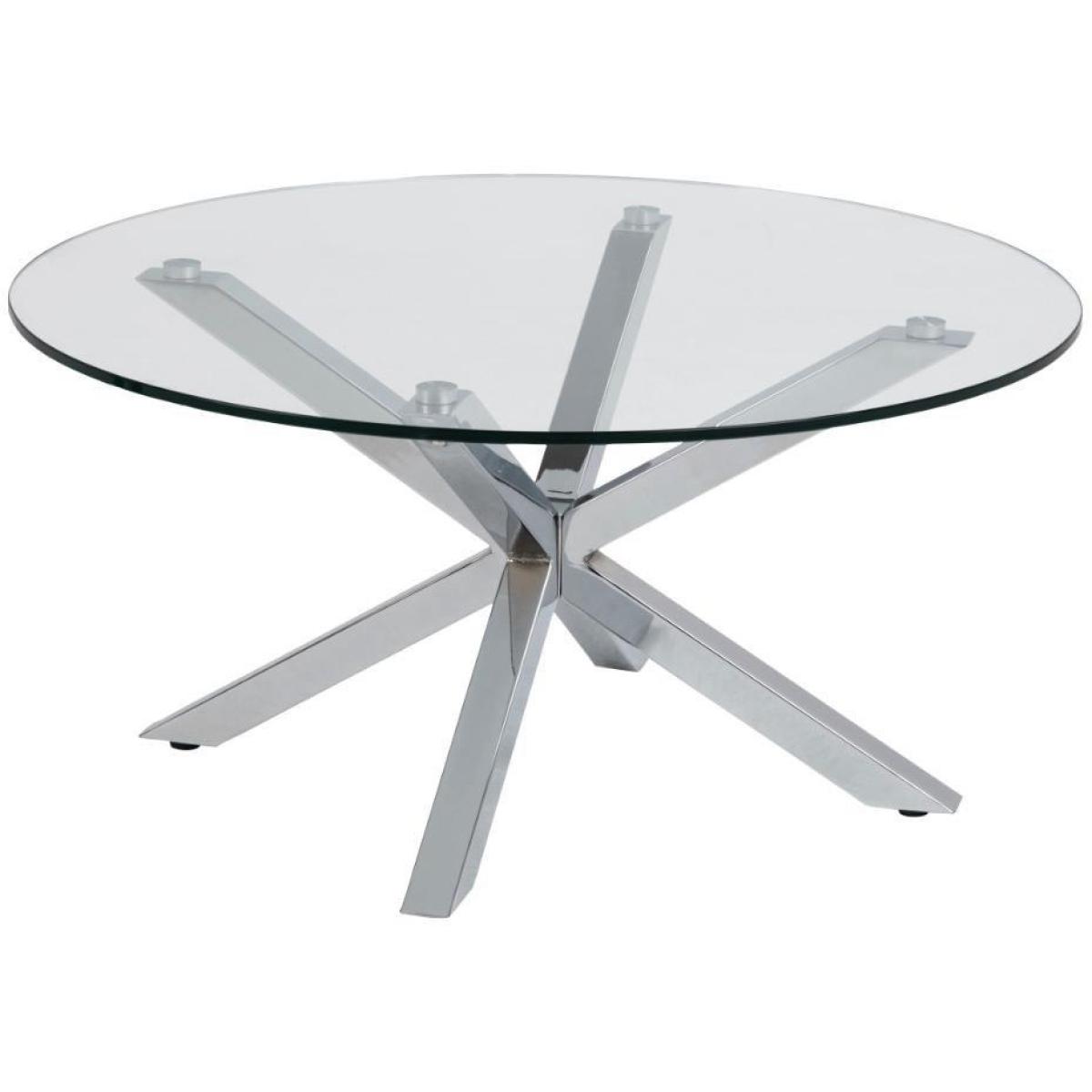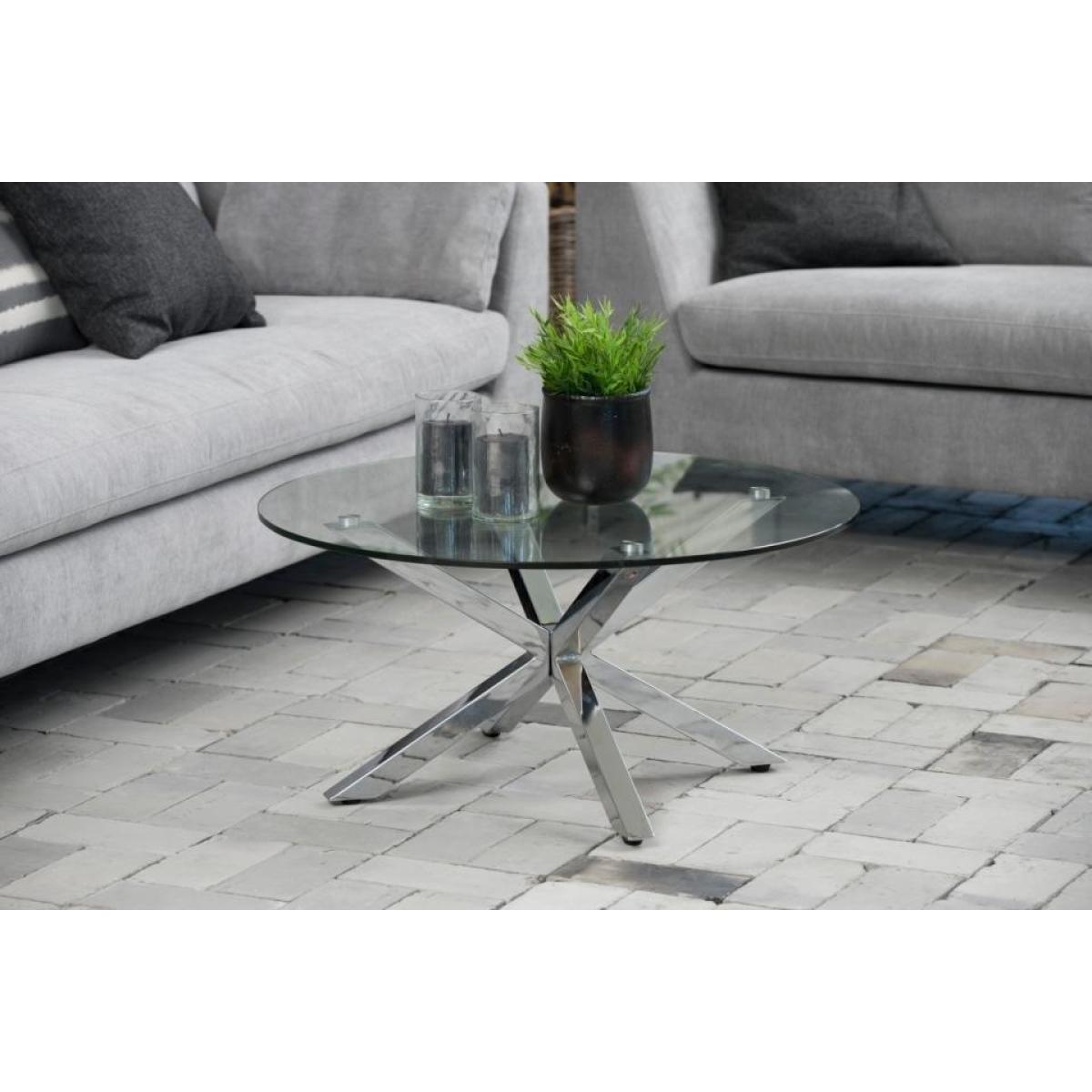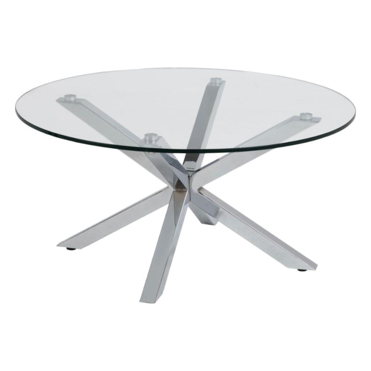 What better way to show your peculiar taste than with this coffee table? Its distinctive look is based on the round tabletop made of clear glass and the sculptural cross base in chrome. Both elements do not only flatter each other but are also easy to maintain. Whether surrounded by muted or lively colours, this coffee table adapts easily. To highlight the unique personality of your home, even more, decorate the table with a few decor objects. Width: 82 cm Depth: 82 cm Height: 40 cm