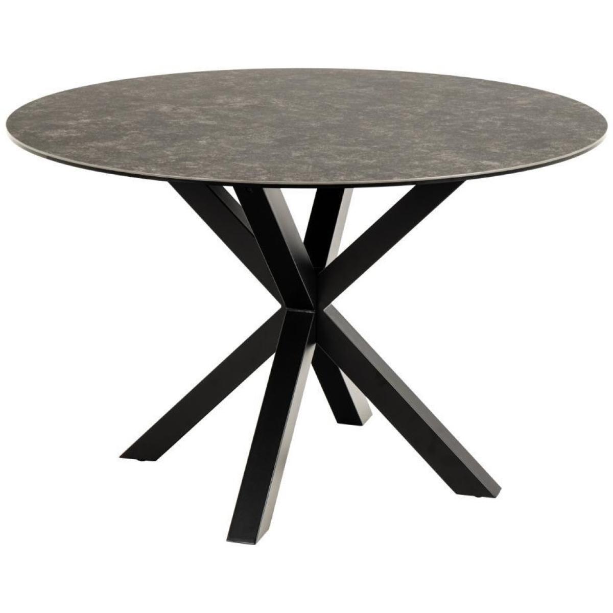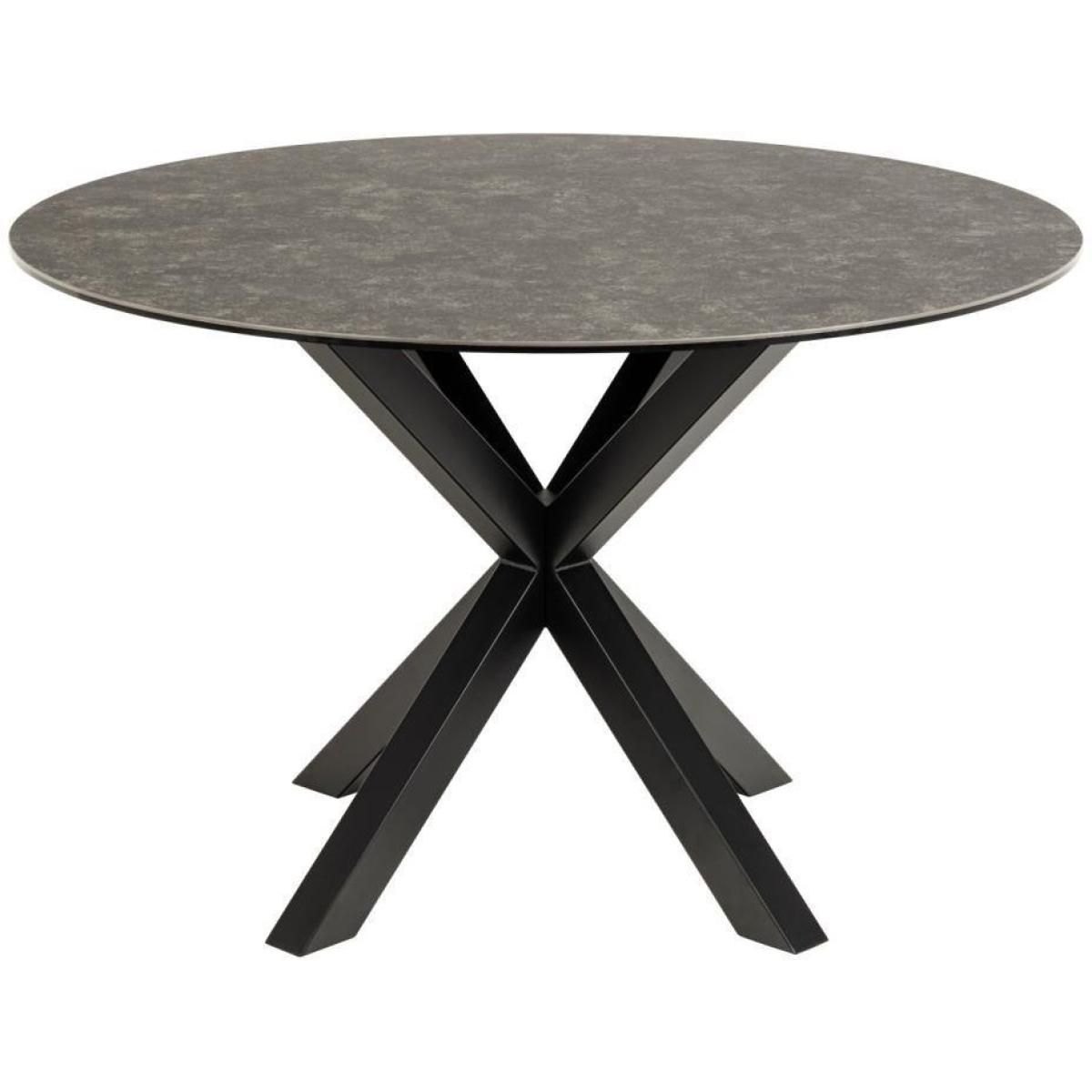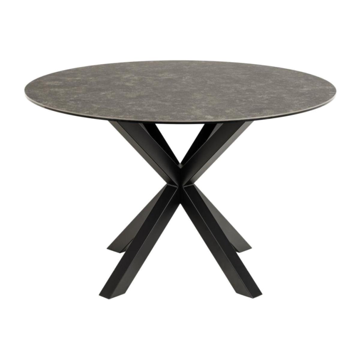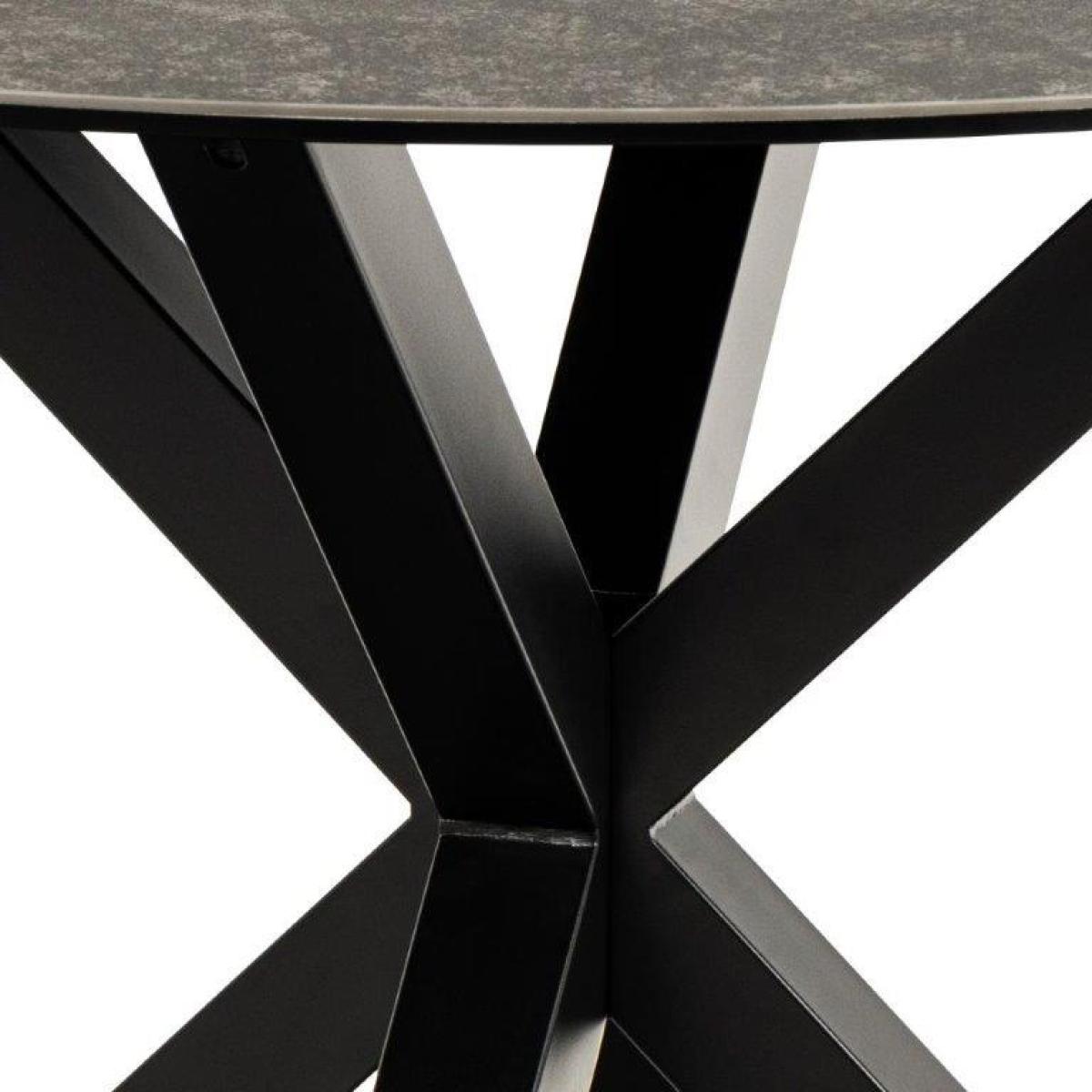 Look at this sophisticated dining table. Wouldnt it be a great centrepiece? The ceramic tabletop has a distinct black marble look that is paired with the black open-frame pedestal metal base, such a combination gives the table a timeless elegant look. It offers generous space for pleasant dining. Since both materials are easy to maintain, the black dining table is a preferred addition to any home. A modern and powerful design what is not to like? Width: 119 cm Depth: 119 cm Height: 75.5 cm